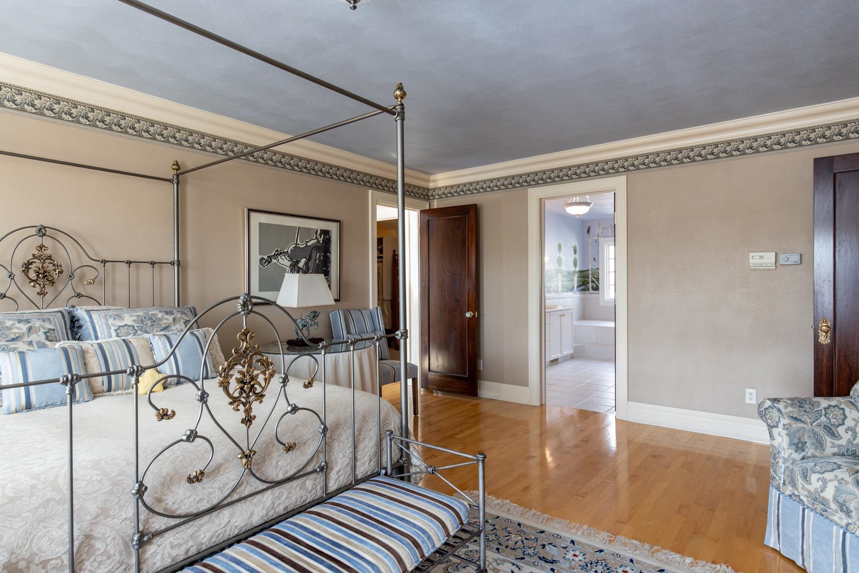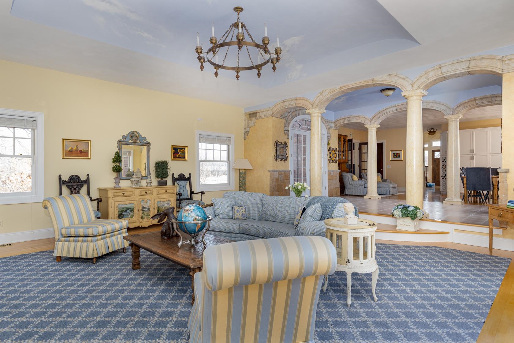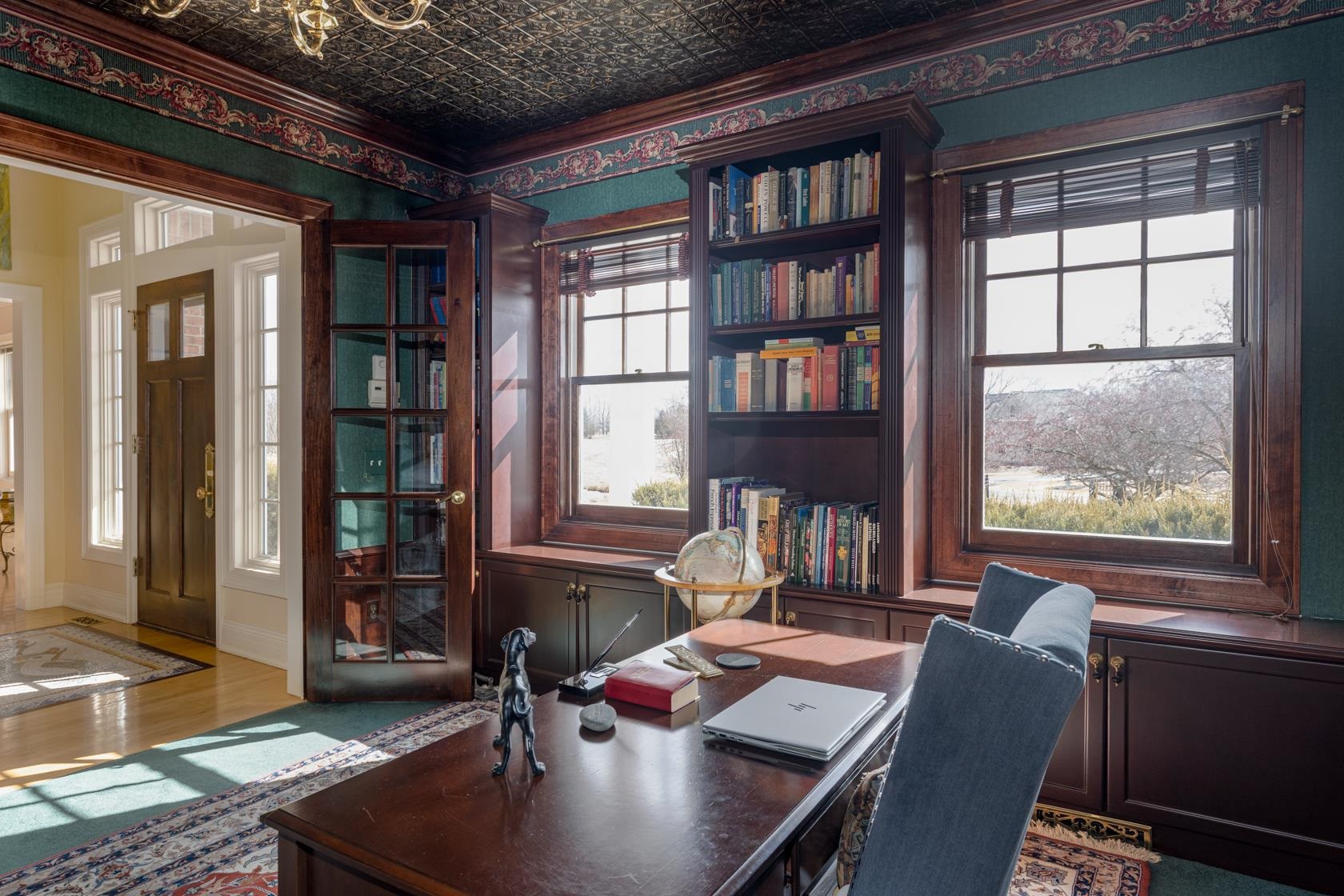 Crafted by a distinguished Chicago-area architect, this European-inspired masterpiece is a must-see! Luxury is not just a feature here, it is a way of life. Coffered tinceilings, rich wood and solid brass details, majestic pillars, captivating terraces overlook lush gardens and tranquil pond. Dive into the 24x40 in-ground pool featuring a fountain andautomatic cover along with charming guest house for additional entertainment space. Bespoke finishes adorn the walls and ceilings; 3 wood-burning fireplaces. Theatre and game roomoffering endless fun. Home gym and craft room. Custom sanctuary harmonizes elegance and modern indulgences. Even the details you don't see every day, like the cedar-lined closetreflect the thoughtfulness put into this home. Additional Tax ID #060124700