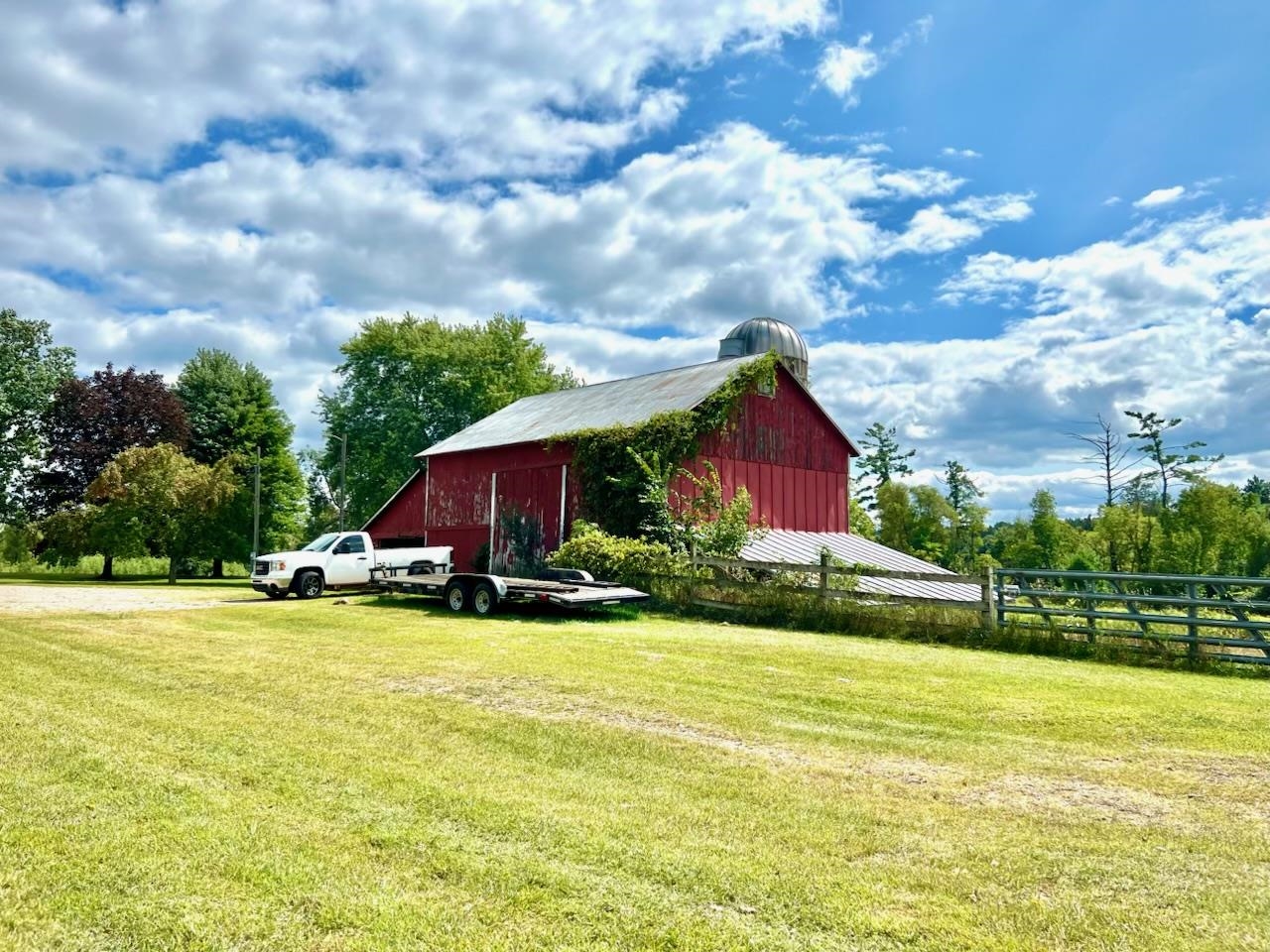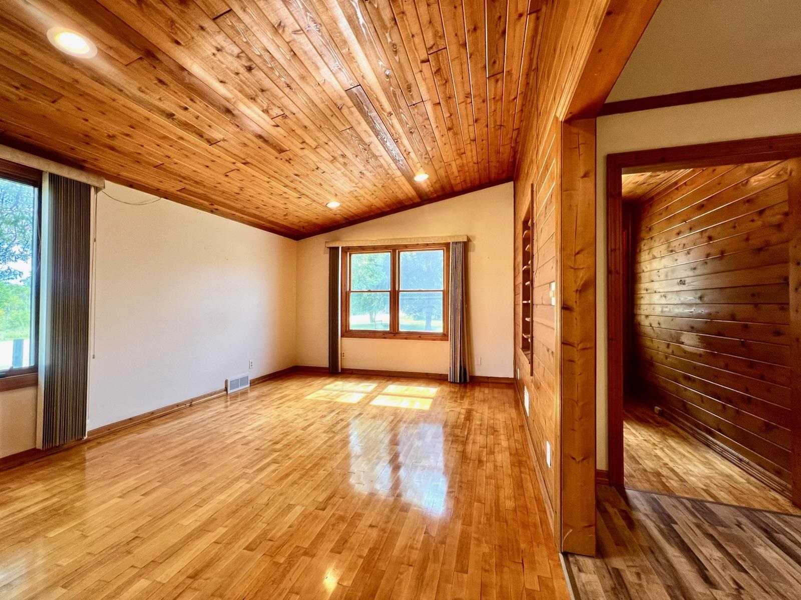 Set on over 3 acres, this 3-bedroom, 1-bath home is full of character and space both inside and out. Vaulted ceilings, beautiful wood floors, and a wood-burning fireplace create a warm living area. The spacious kitchen features ample cabinet space with appliances included. Added bonuses to the home include main-floor laundry/mudroom, an enclosed breezeway, an expansive deck in the backyard, and attached 2-car garage. Outside this property shines — featuring a 45x72 pole shed with electric, an outdoor wood stove that can heat the home and garage, plus a barn with a fenced-in area. This property has so much to offer and endless opportunities.