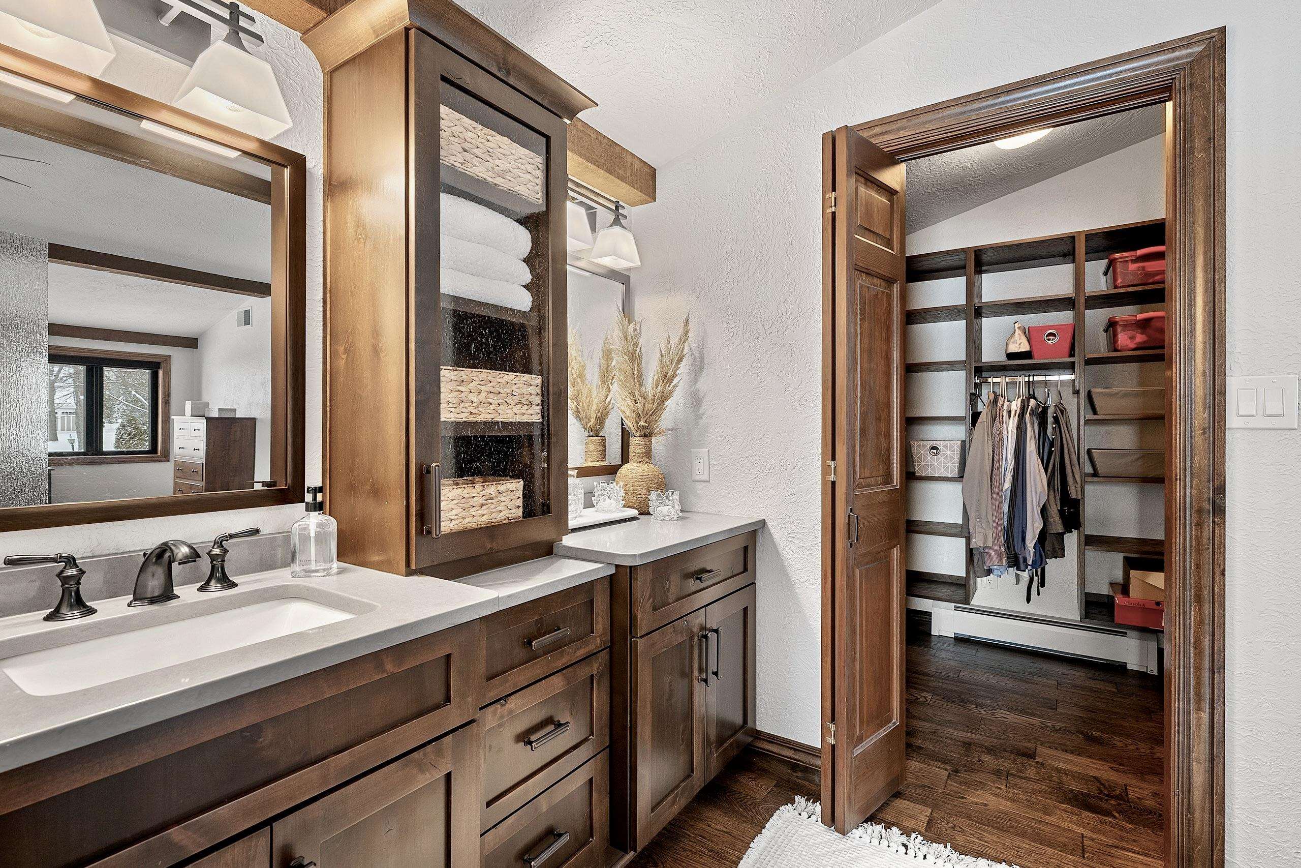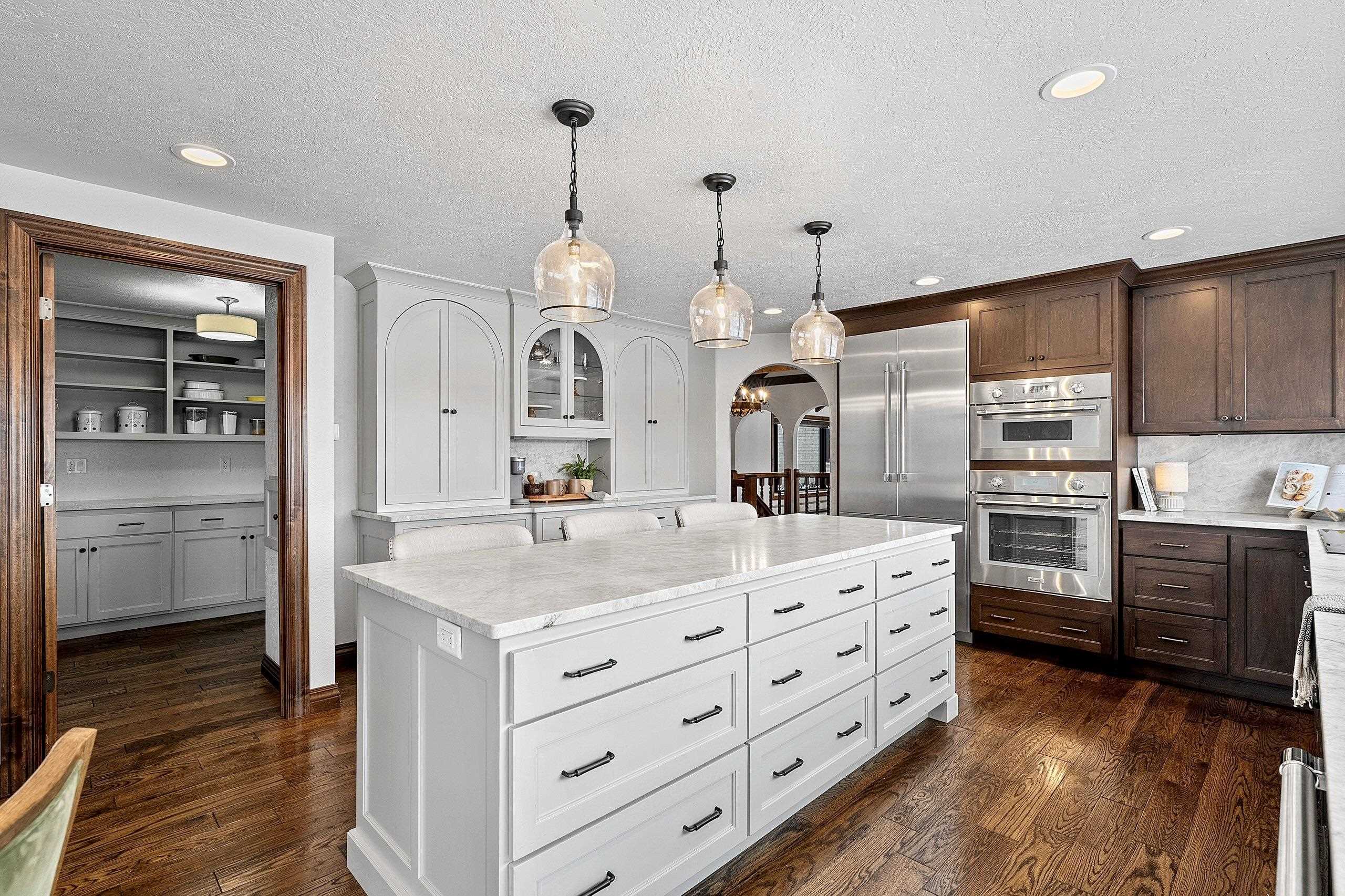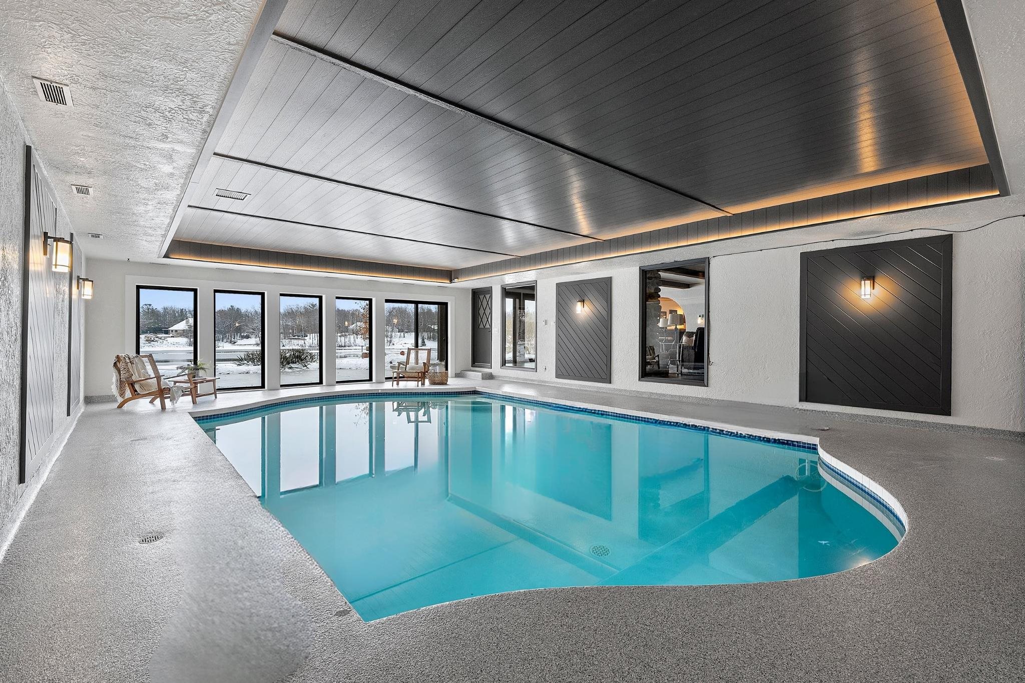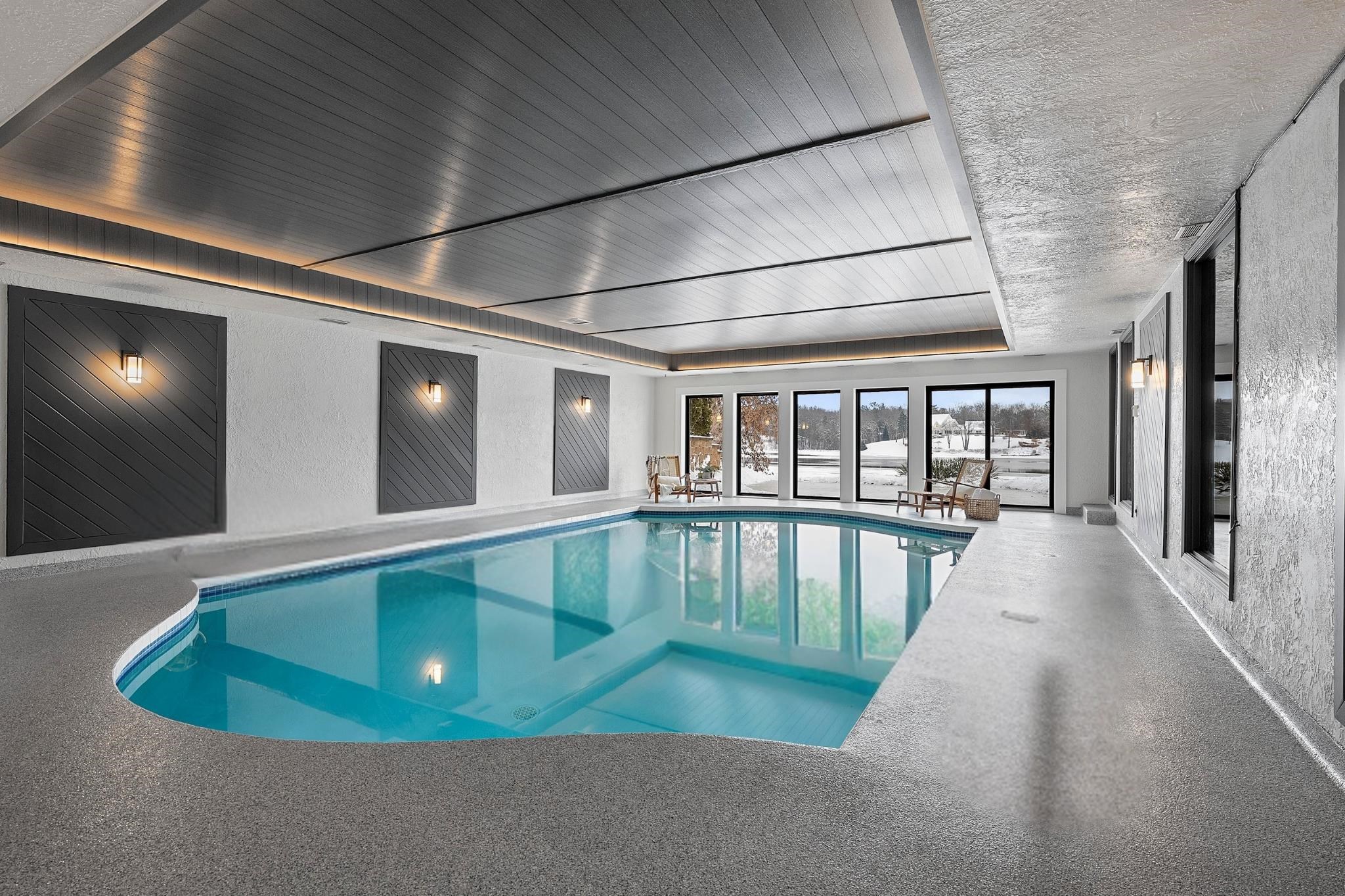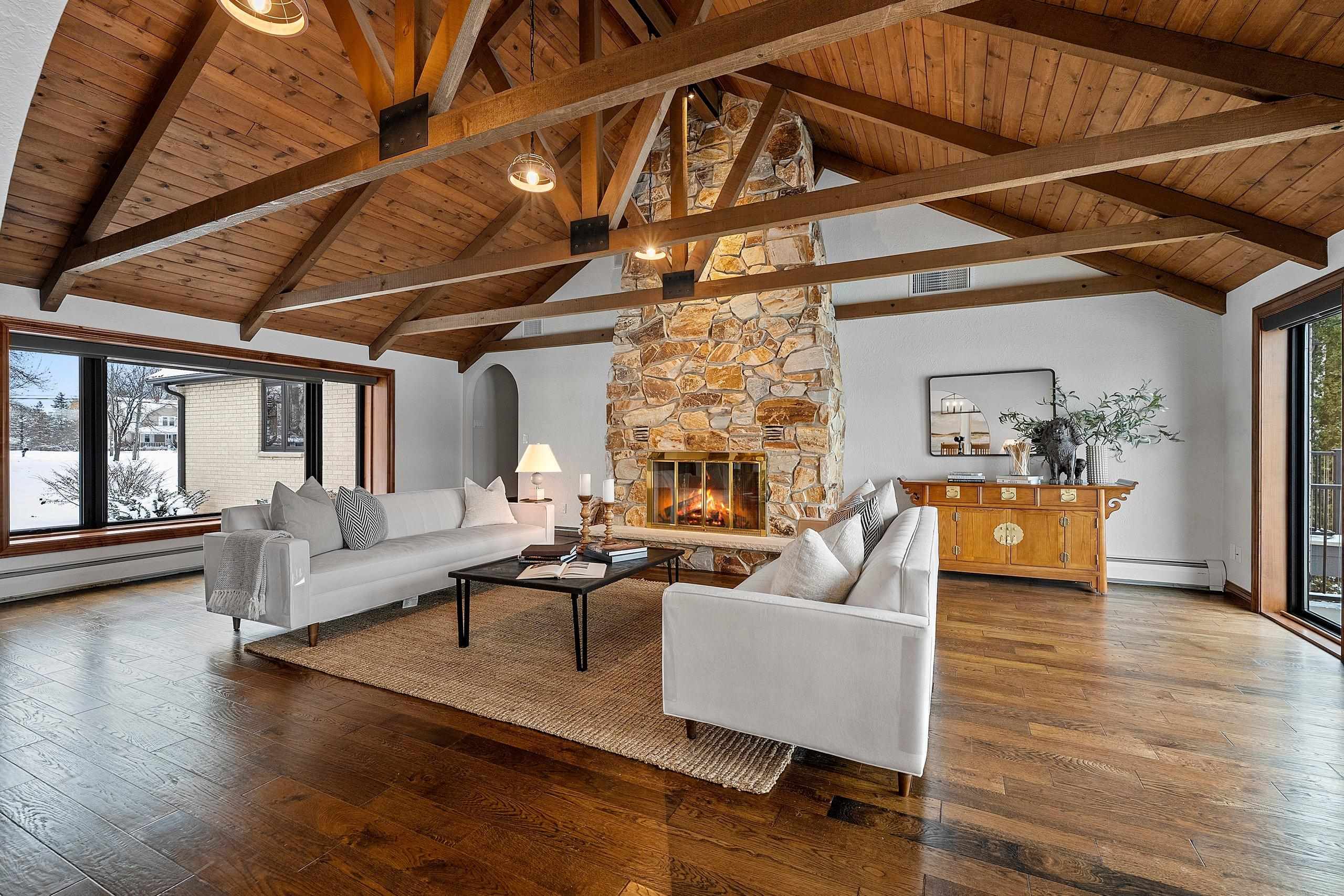Stunning Spanish Mediterranean 5 bdrm w/o brick ranch featuring panoramic river views (140 ' frontage/1 acre) & smart functional floor plan. Completely renovated (Designs of the Interior) w/ all new Anderson windows, gorgeous new kitchen w/ Taj Mahal counters/huge walk-in pantry/expansive river views, updated baths, white oak real HW flooring from Ralph's HW Flooring, relaxing primary suite w/ private balcony, full interior painted, fantastic back hall, radiant heat in all new interior 3 stall garage, hvac updated '18. Exterior upgrades include all new cement flatwork, new aluminum upper deck, epoxy patio, refurbished rip-rap, new composite dock w/ boat lift, new soffits/downspouts, new landscaping/uplighting. Refurbished indoor pool area w/ sauna.