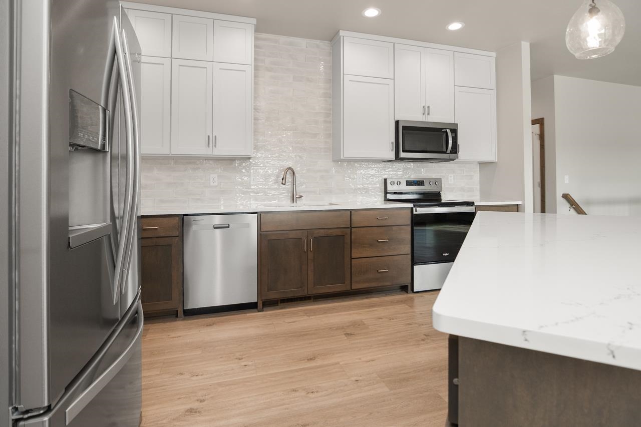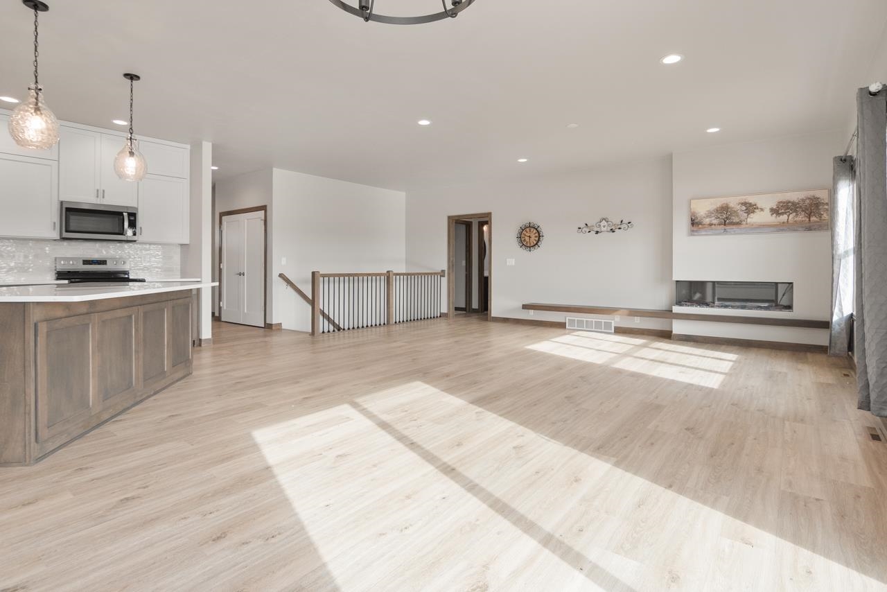 Like new & beautifully designed, this 2024 built home offers effortless living with modern style & thoughtful details throughout. Located in a homeowners association with lawn care & snow removal included for $175/month, you'll enjoy low maintenance living year round. Step inside the zero-entry design & be welcomed by a bright, open concept floor plan. Stunning kitchen is the heart of the home with large island, quartz ctops, tile backsplash & stained lower cabinets with crisp white upper cabinets. Inviting sunroom off dining area offers a peaceful retreat with pond views. Spacious primary suite with w/i closet & private bath with dual sinks, quartz ctops & w/i shower. Convenient 1st flr laundry. Unfinished LL provides future living space already stubbed for full bath & egress window.