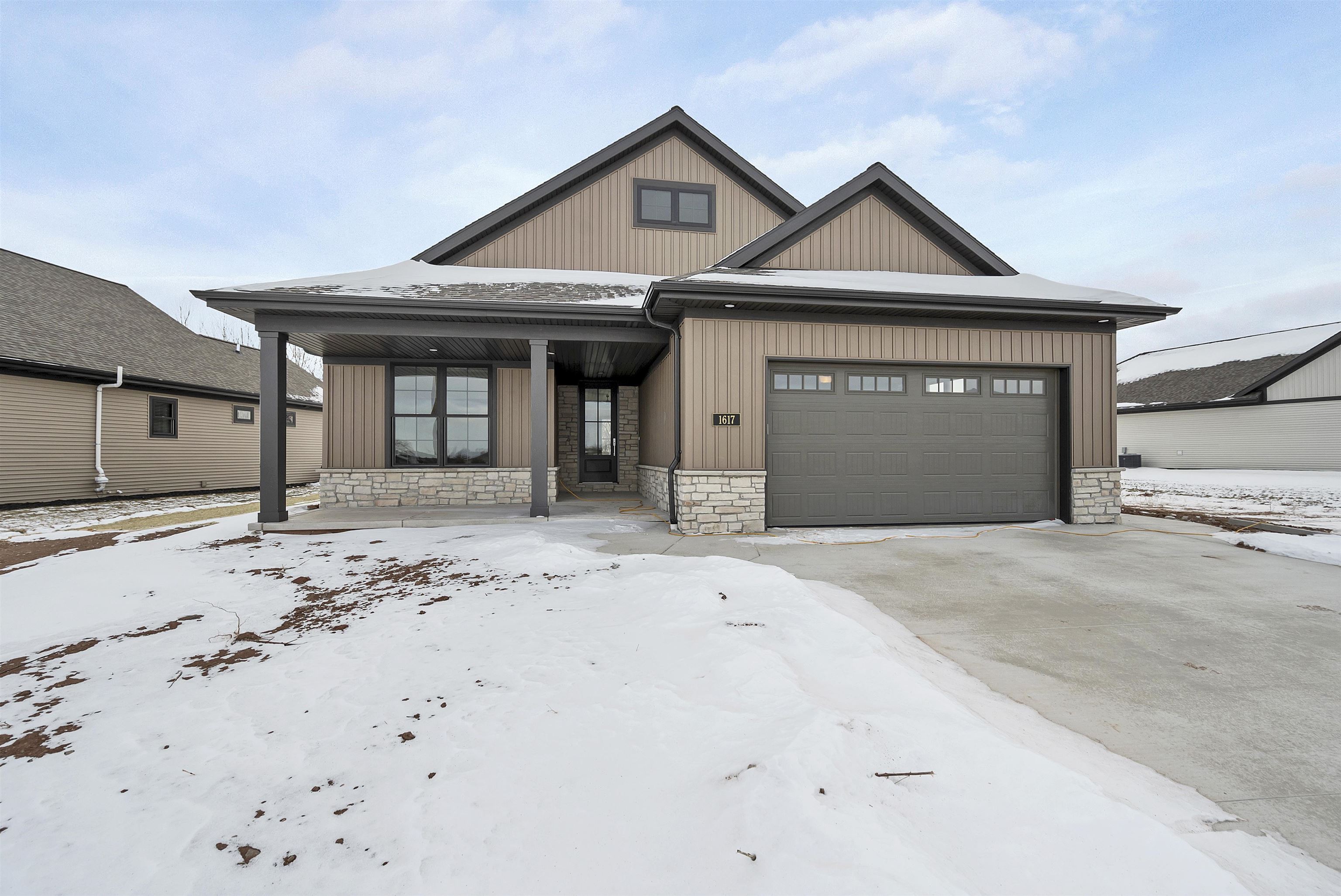 The Salerno is a thoughtfully designed home with functional space and an open floor plan with generous storage space. Features like the 9 foot ceilings highlight the elegance and quality of the open, efficient design. The home offers an open dinette, large eat in kitchen and great room with access to the private outdoor living space. This home is in the Bungalows of De Pere HOA community which offers services and amenities that include: lawn care, snow removal, clubhouse with fitness center, outdoor heated pool and pickle ball court. $1,000 reserve contribution to HOA due upon closing.
