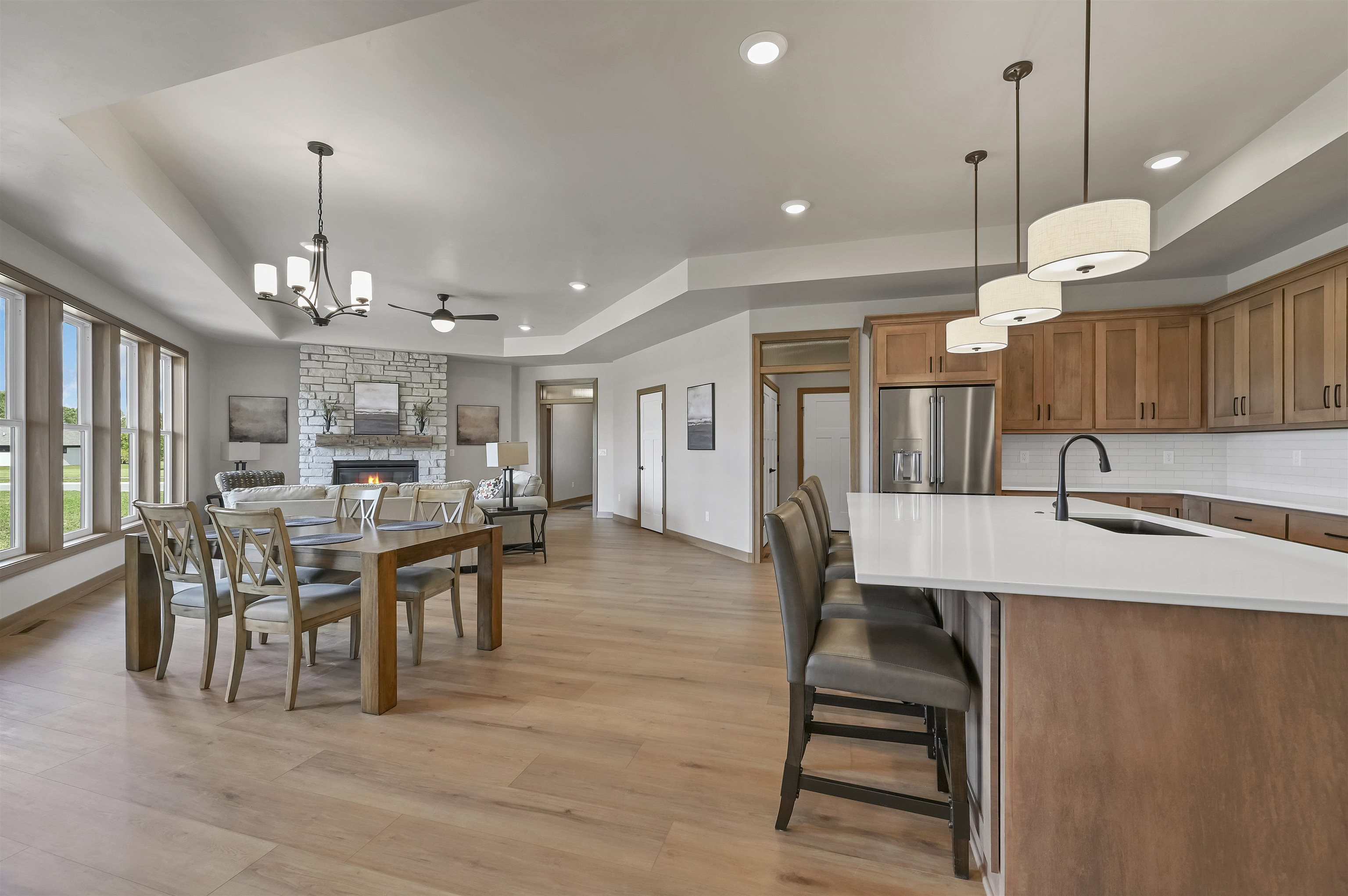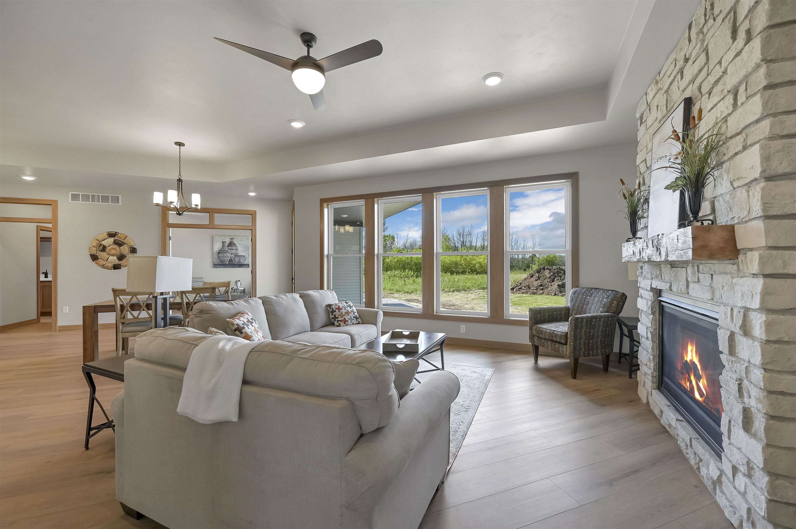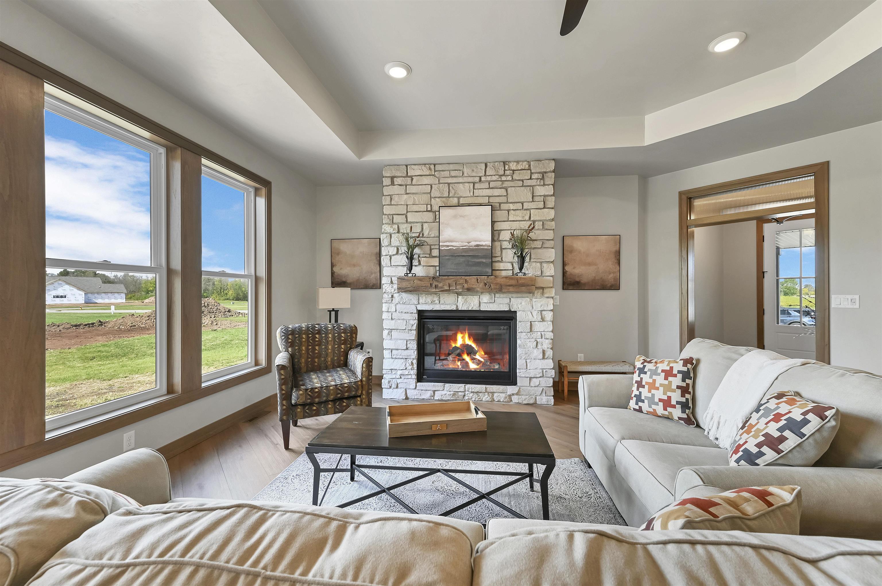The Prommenade model features a gourmet kitchen with center island and walk in pantry that overlooks a private courtyard. This home features many attractive design elements that include a spacious primary suite with walk in closet and custom tile shower. The open floor plan also allows for oversized furniture in the living room and dining room. This home is in the Bungalows of De Pere HOA community which offers services and amenities that include: lawn care, snow removal, clubhouse with fitness center, outdoor heated pool and pickle ball court. Enjoy The clubhouse with fitness center, pool and pickle ball courts. $1,000 reserve contribution to HOA due upon closing.