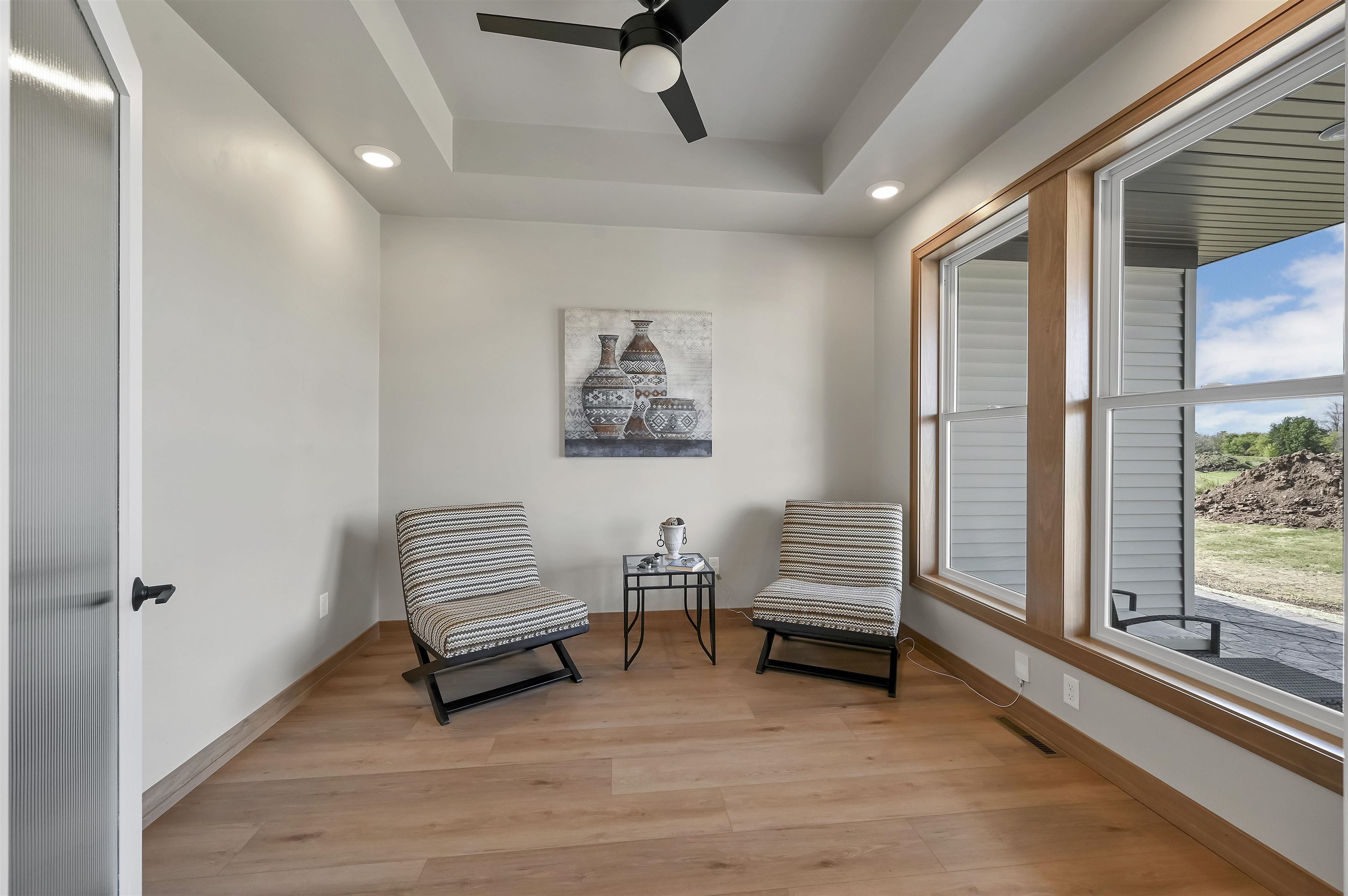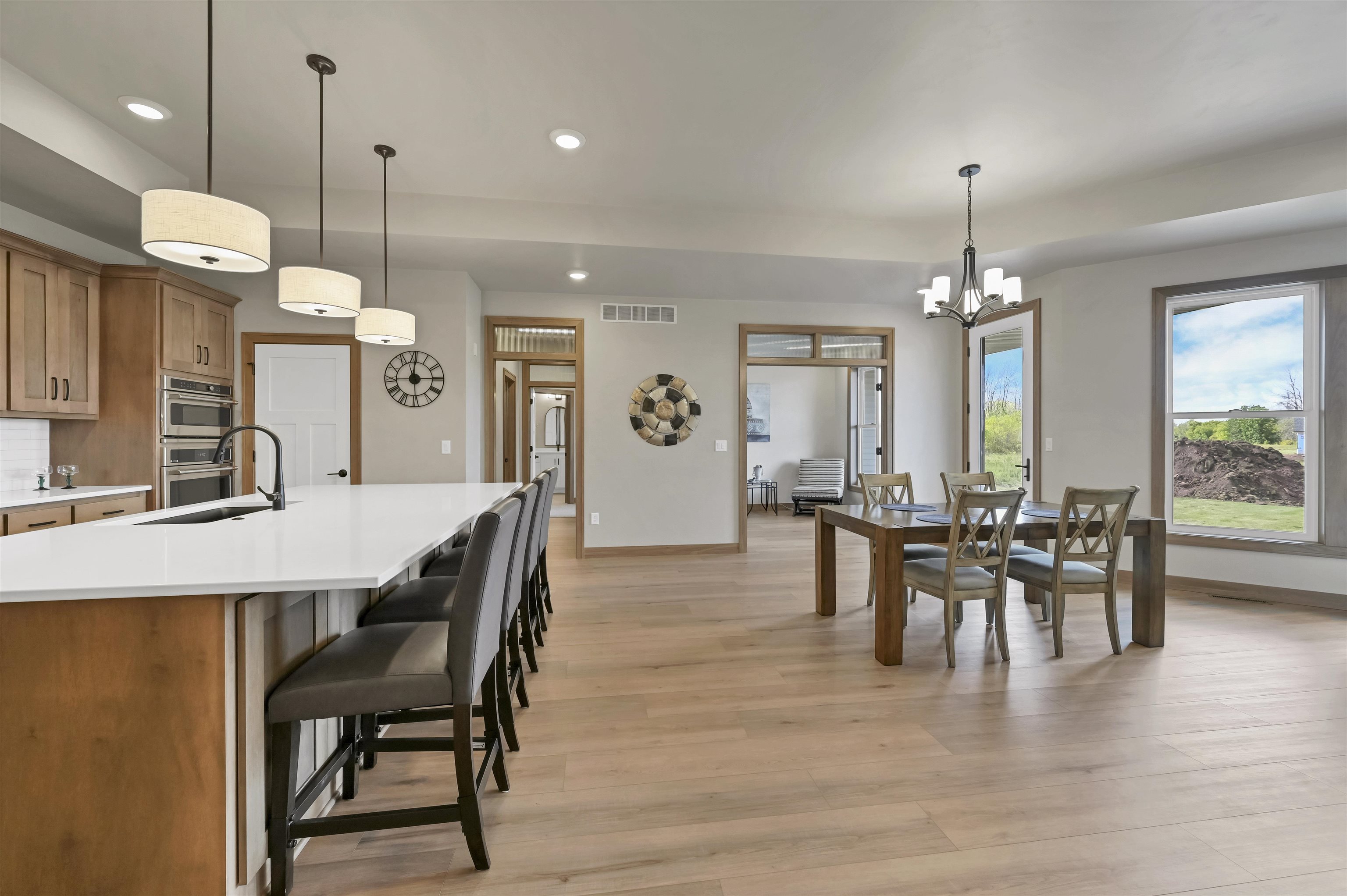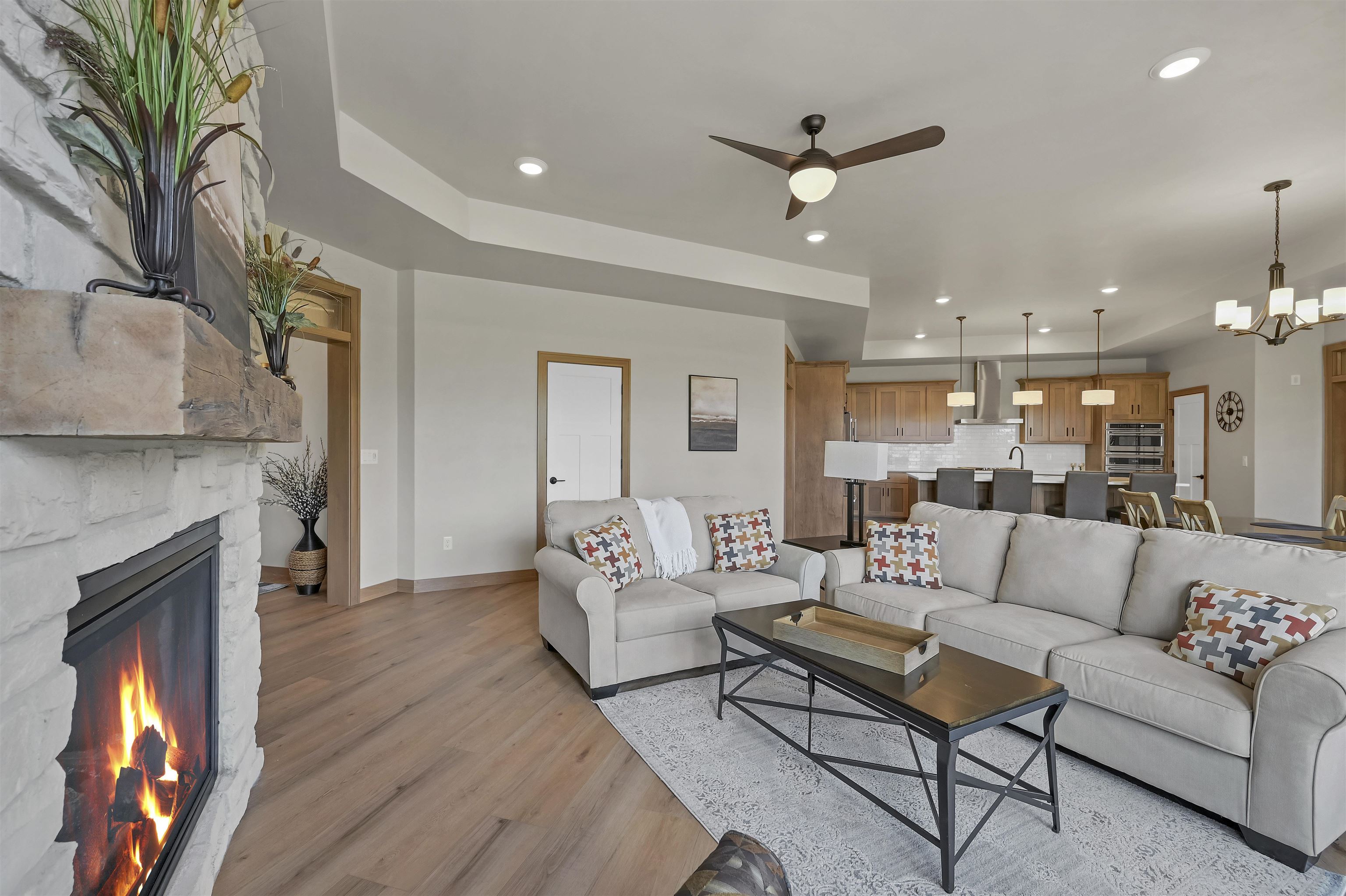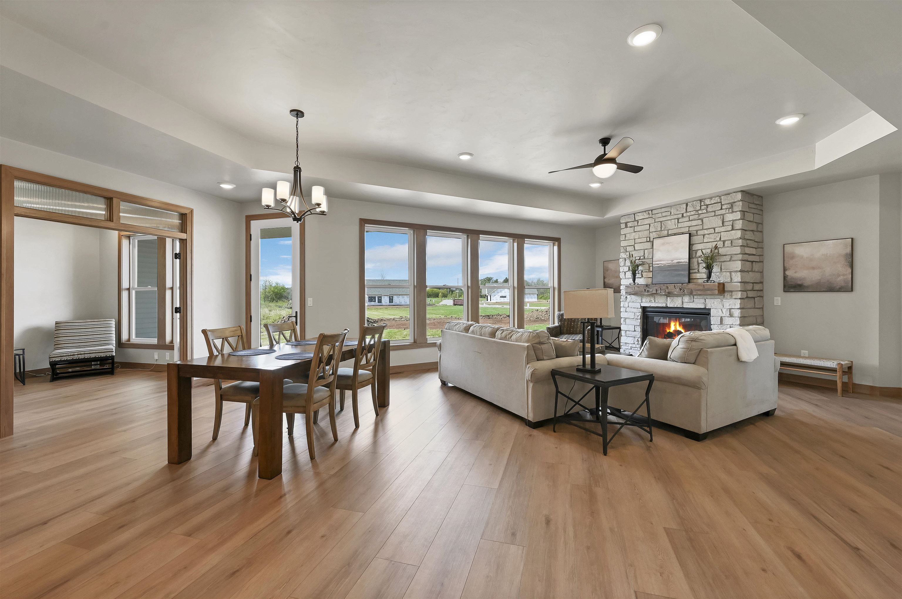 The Prommenade model features a gourmet kitchen with center island and walk in pantry that overlooks a private courtyard. This home features many attractive design elements that include a spacious primary suite with walk in closet and custom tile shower. The open floor plan also allows for oversized furniture in the living room and dining room. This home is in the Bungalows of De Pere HOA community which offers services and amenities that include: lawn care, snow removal, clubhouse with fitness center, outdoor heated pool and pickle ball court. Enjoy The clubhouse with fitness center, pool and pickle ball courts. $1,000 reserve contribution to HOA due upon closing.