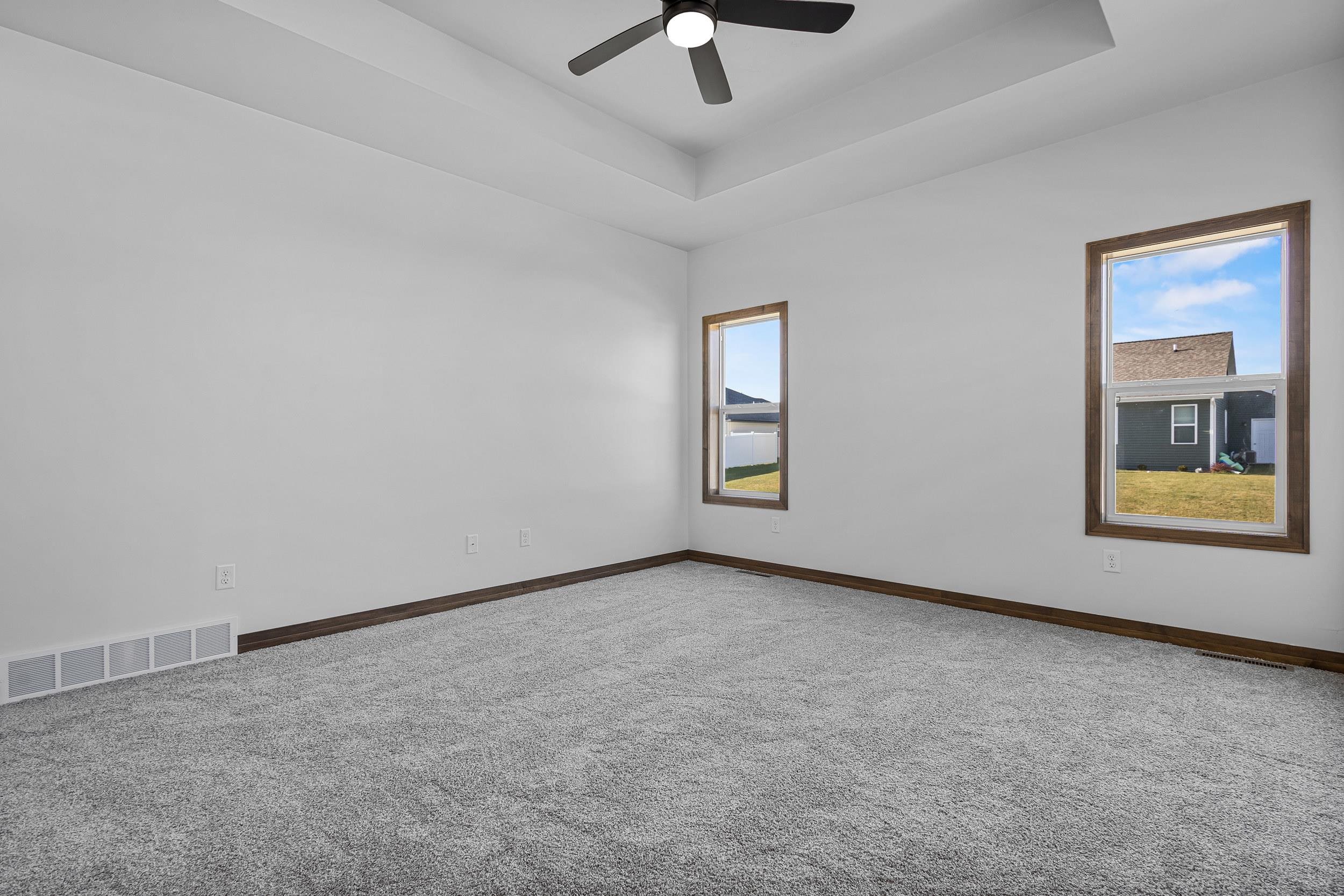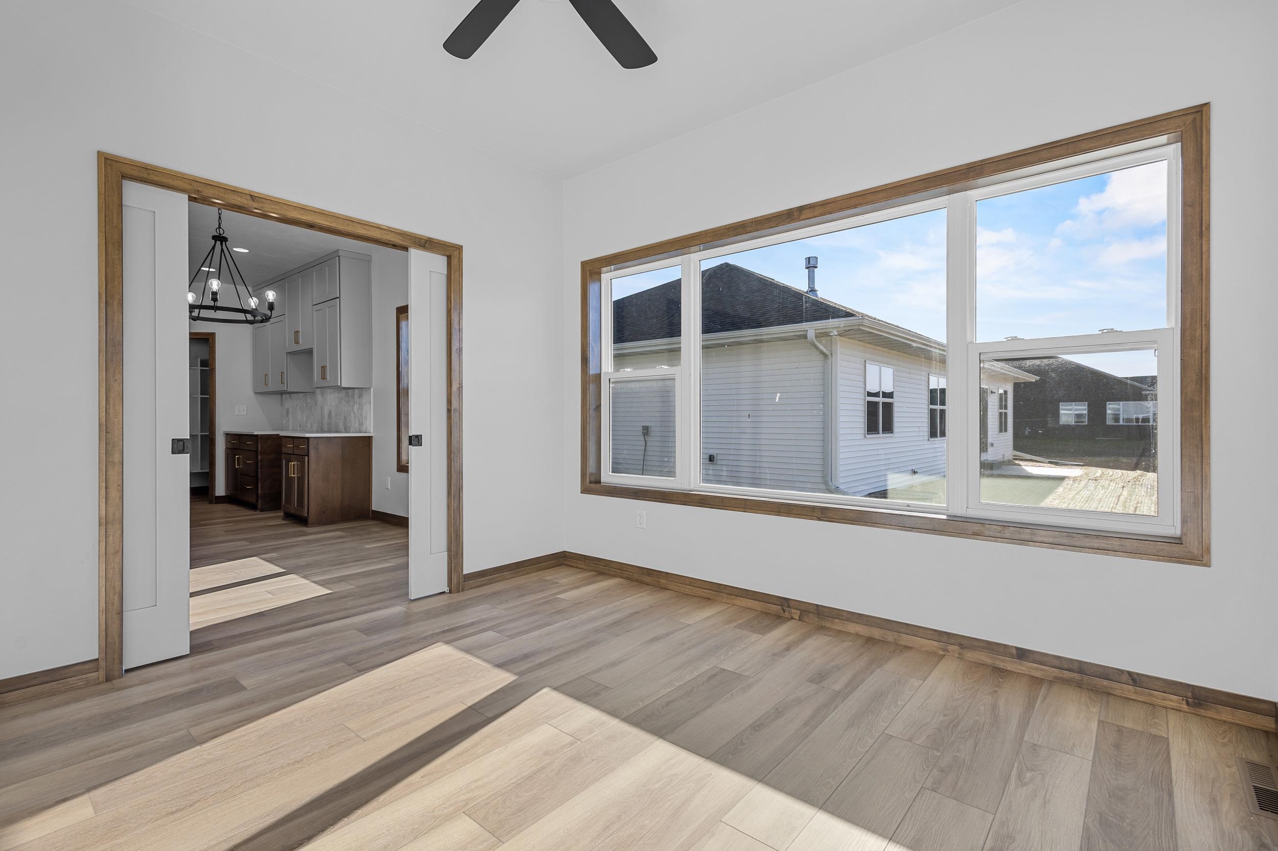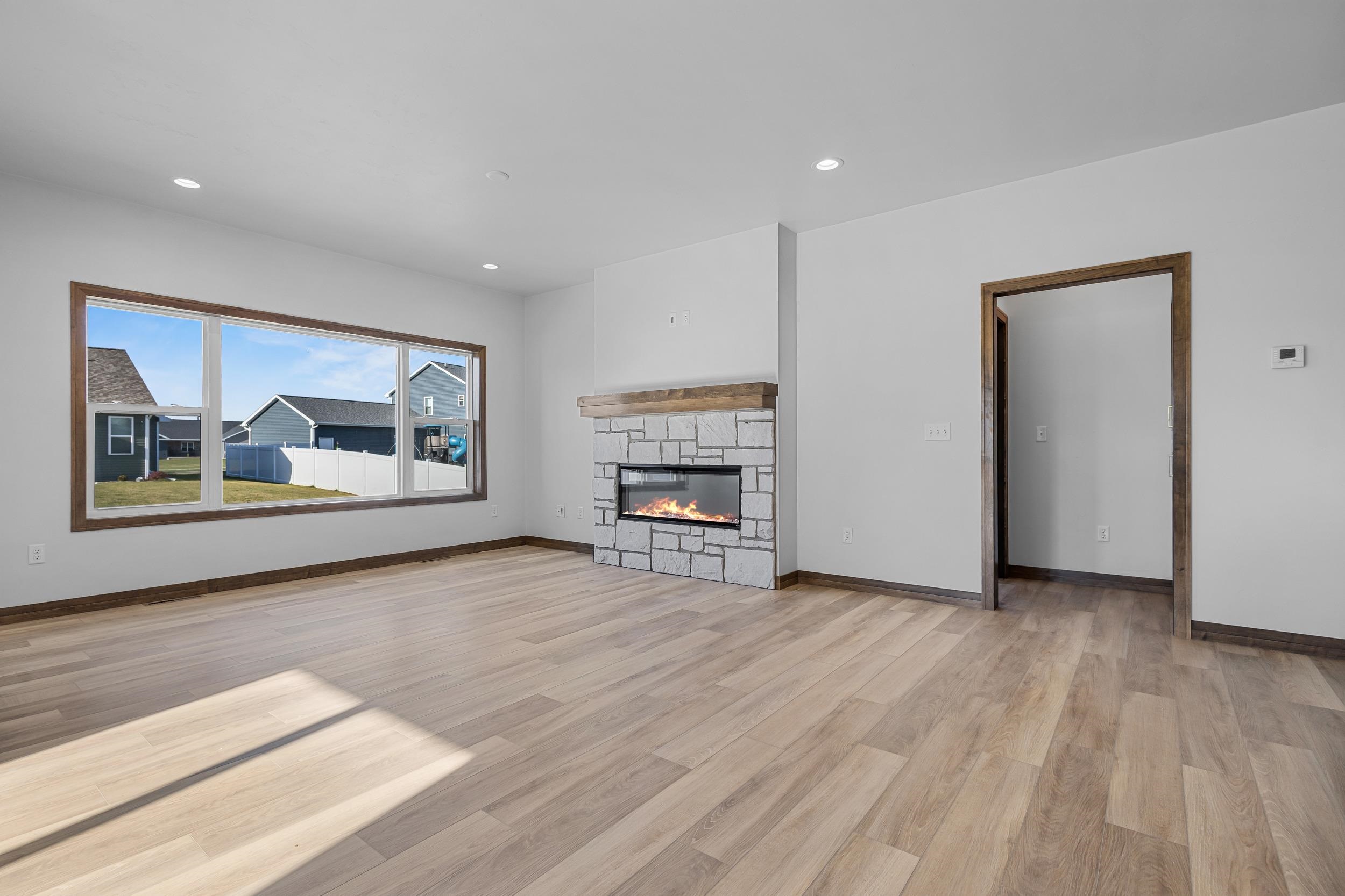 Welcome to this remarkable 2 bedroom, 2 bath, zero step entry home featuring a bright & airy sunroom! The kitchen boasts custom maple cabinets with a dual finish of Caramel stained lowers & Worldly Gray painted uppers. An Arabescato Venato tile backsplash completes this elegant look. The open floor plan flows into the great room with a gorgeous 50" Simplifire Allusion Platinum Linear Electric Fireplace surrounded by Niveo Volterra stone. The primary bedroom is a cozy retreat with dual sink vanity in the bathroom and a large walk in closet that has direct access to the laundry room! Lower level is stubbed for full bath and has an egress window for future expansion. Monthly HOA fee is $175.