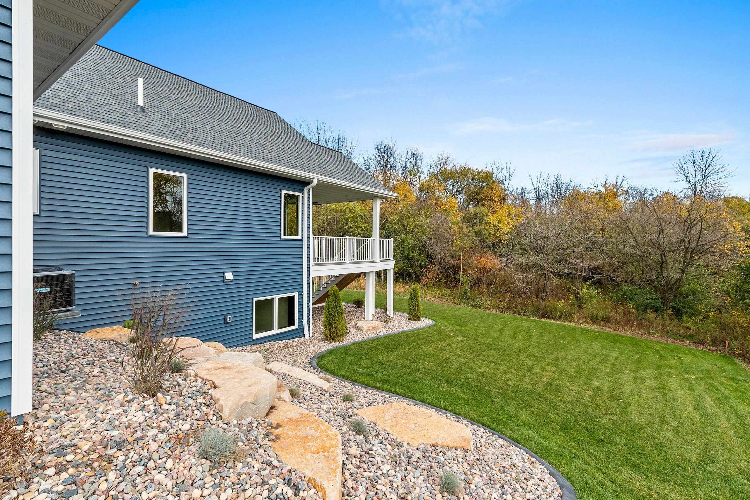 Beautiful new construction available in West DePere. This gorgeous home backs up to heavily wooded city land providing a beautiful & private backdrop, w/ a buffer lot along the side of the home. You'll appreciate all the extras this home has such as a sodded yard, irrigation system, large trex deck, 4-stall finished & heated garage w/ one double deep stall, granite counters throughout, 1st flr laundry, decorative entryways, a beautiful open concept w/ split bedroom design, soaring ceilings, & stone fireplace. A generous Master Suite has a huge walk-in closet & bathroom, w/ a double vanity & tile walk-in shower. Finished lower level with 2 beds & full bath, huge family room w/ a great wet bar area. Request your showing today! 48 hr binding acceptance req, some photos virtually staged.