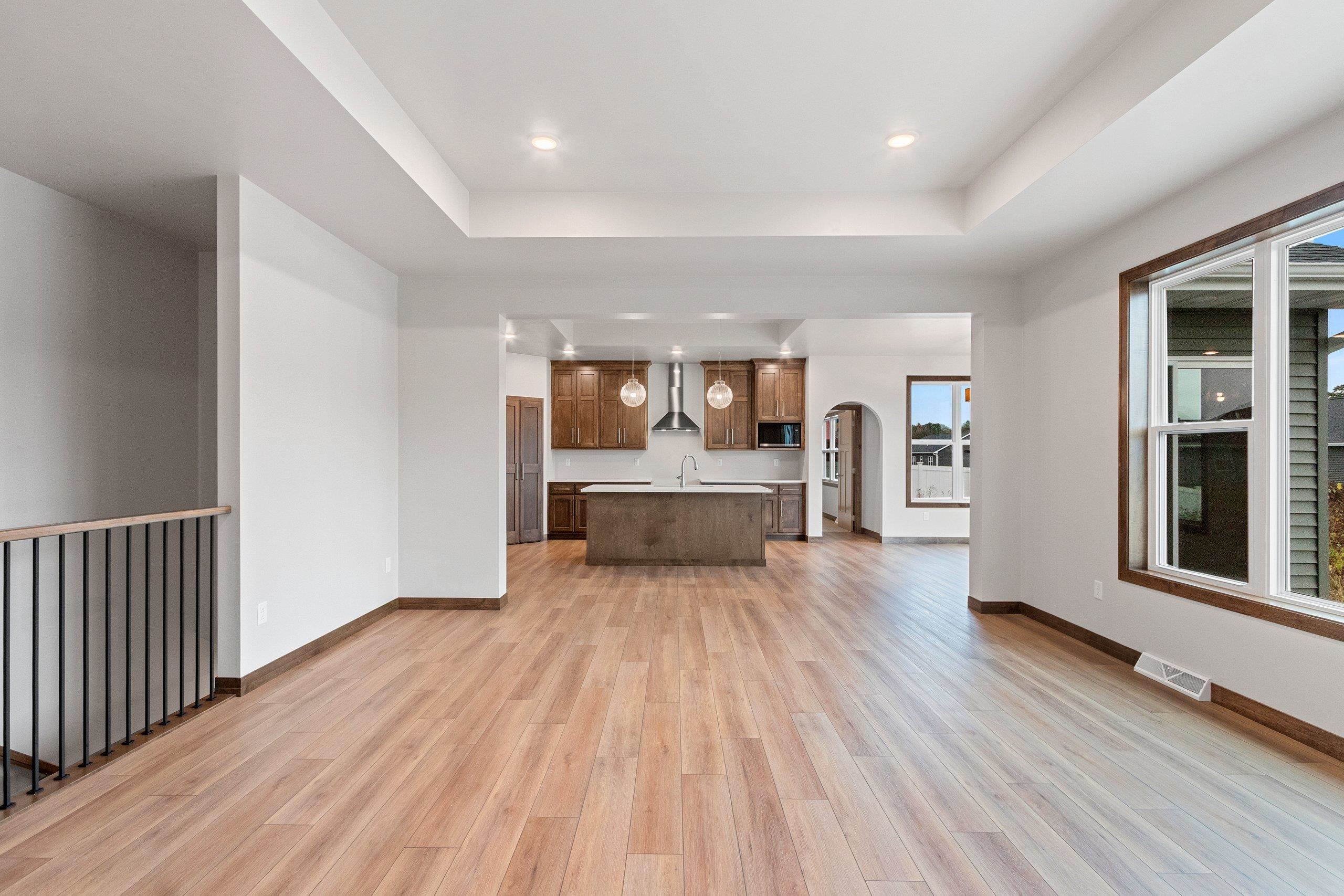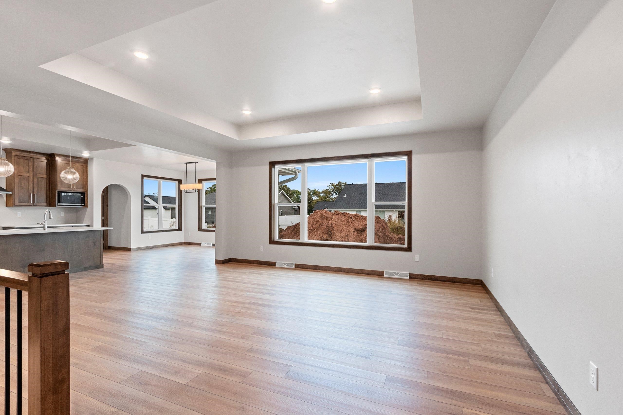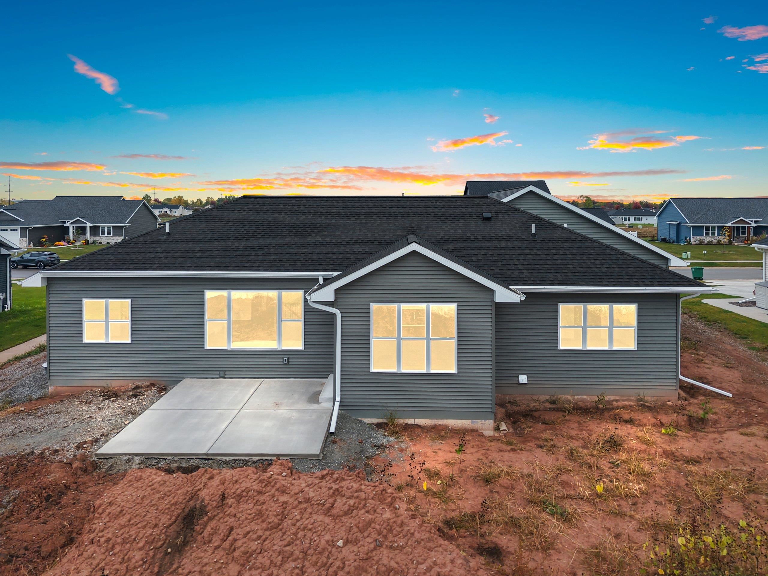 Brand new and move-in ready in Waterview Heights! This upgraded 1,814 SF split-bedroom ranch offers 3 bedrooms and 2.5 baths with thoughtful design and high-end finishes throughout. Enjoy 9’ ceilings and 10’ decorative tray ceilings in the great room and kitchen. The chef’s kitchen features custom maple cabinets to the ceiling, quartz countertops, soft-close cabinetry, built-in pantry, and full appliance package. The primary suite includes a walk-in tile shower and custom closet system. Rear entry with bench and lockers, HDF doors, maple trim, and central air. Lower level has egress window, passive radon system and is stubbed for full bath. An optional dry bar in the great can be added for $2500. Experience craftsmanship where building is personal.
