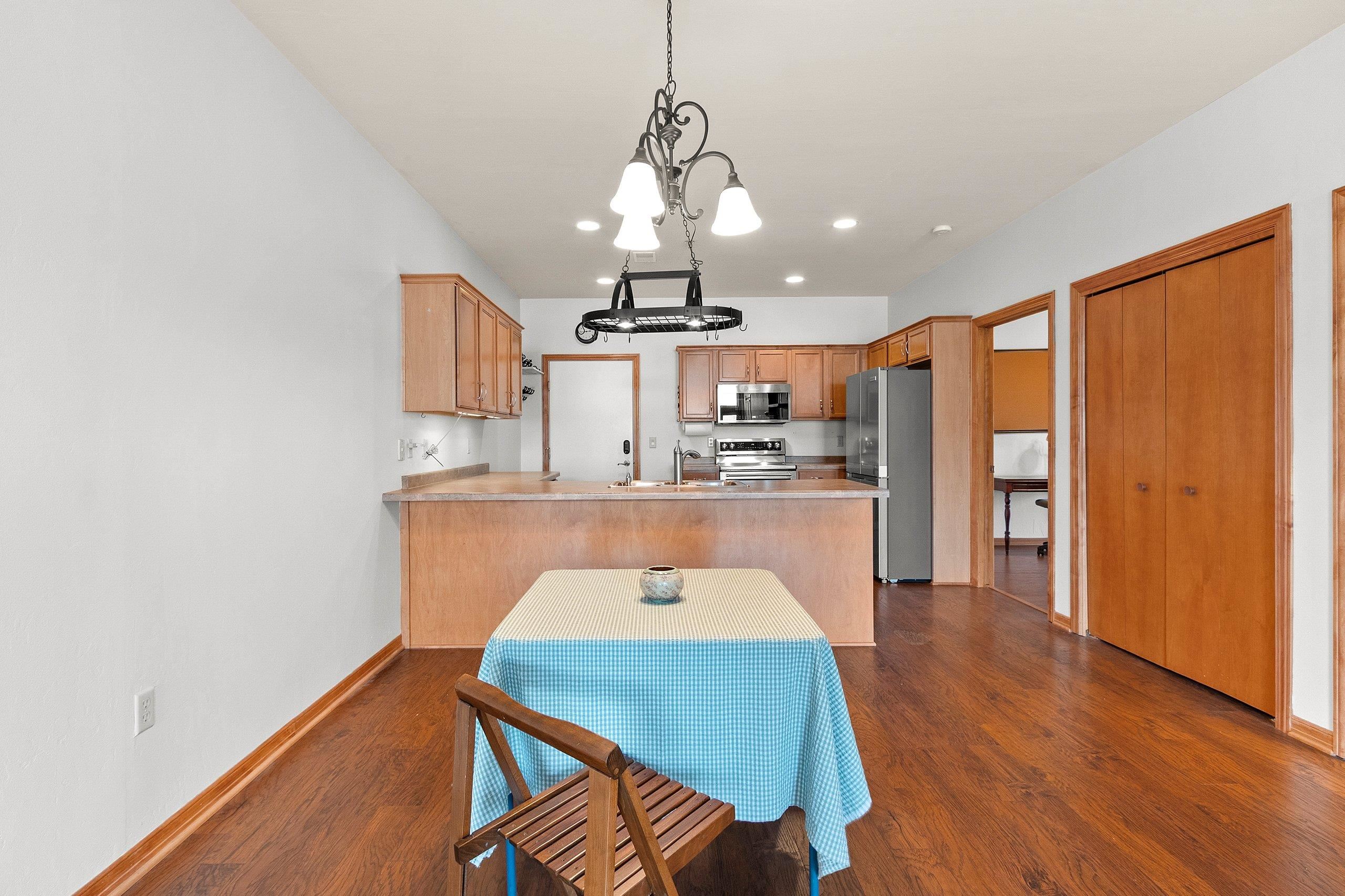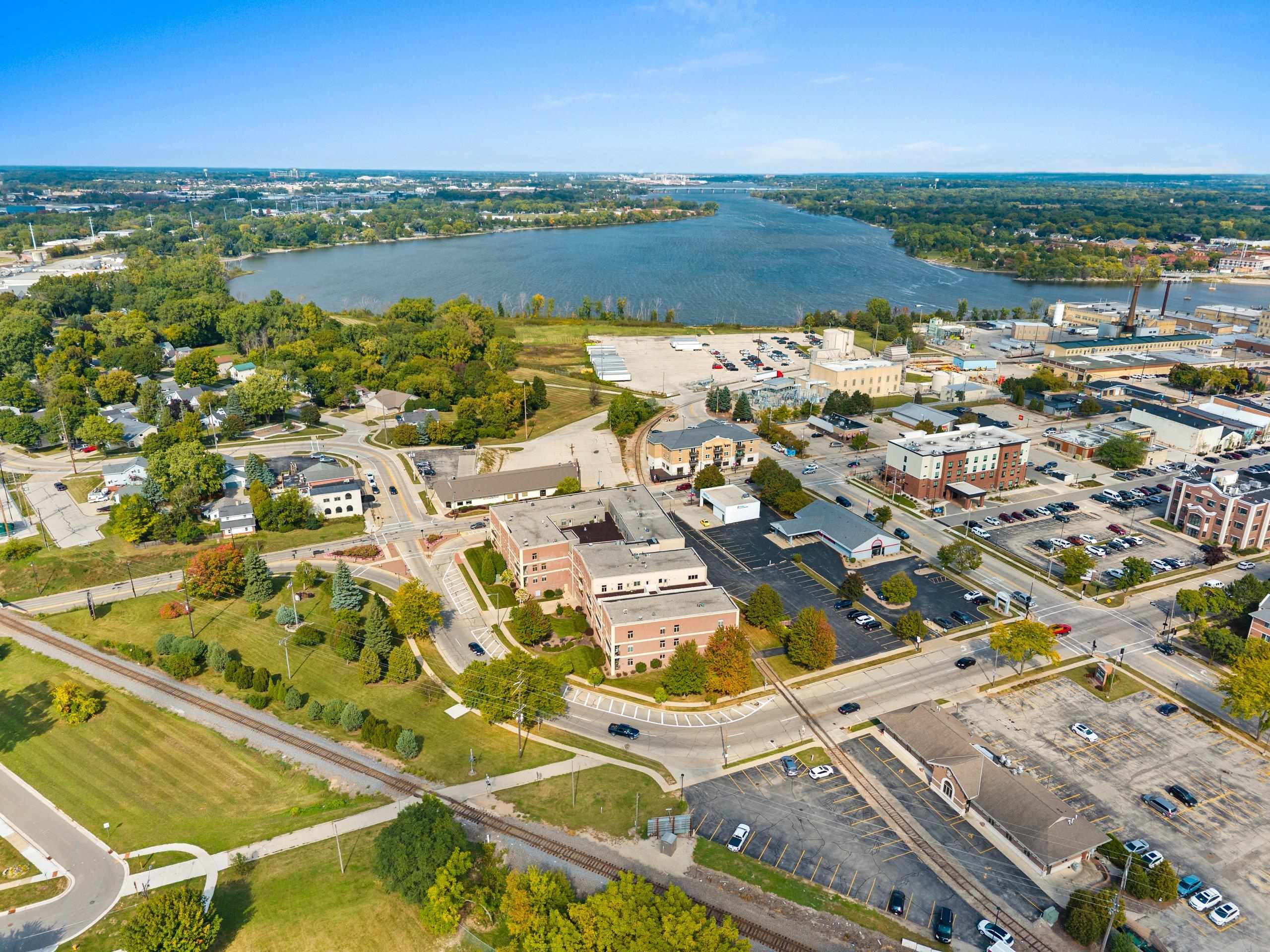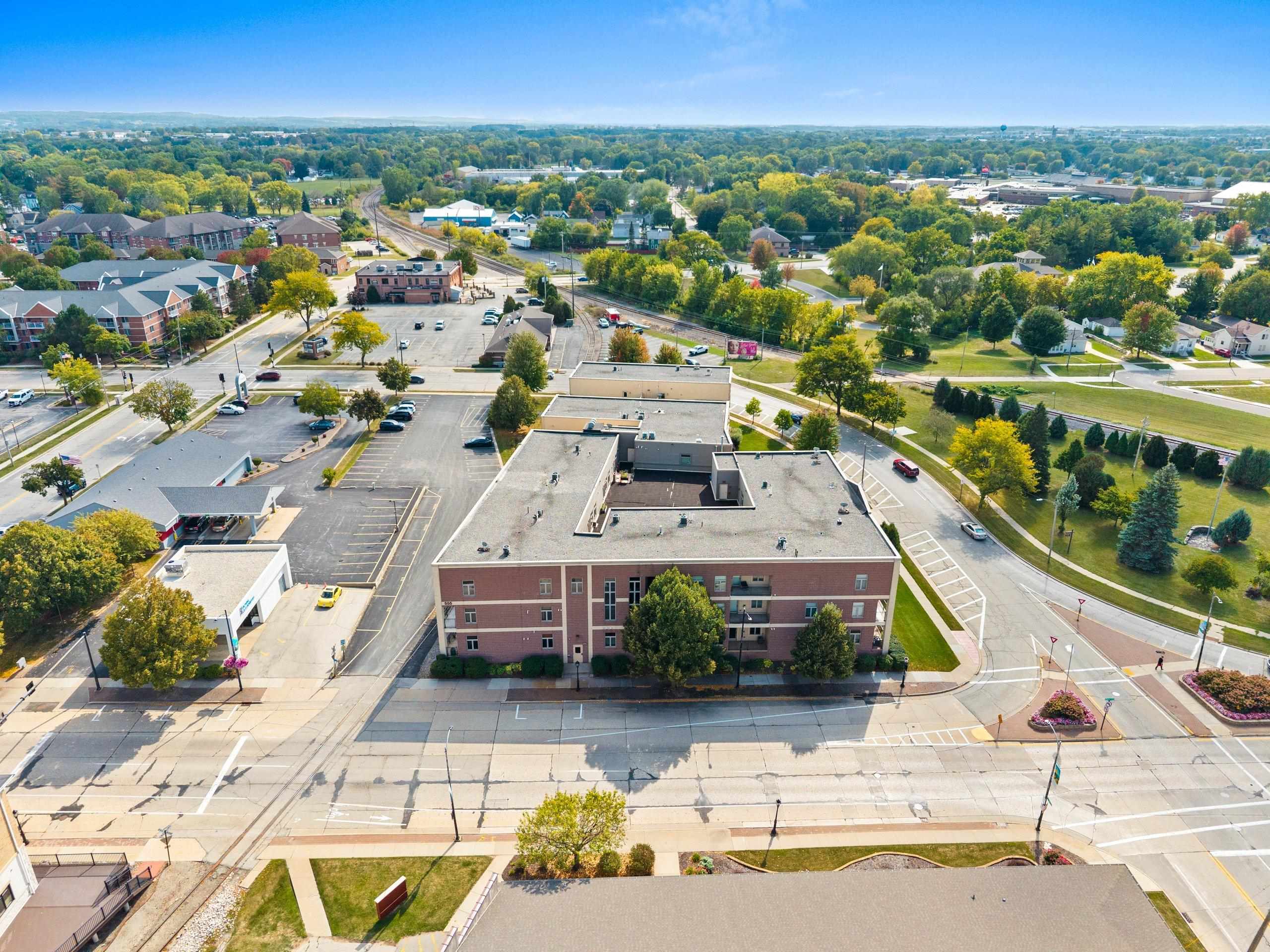 Fantastic opportunity to own in West De Pere! First floor end unit condo located in the heart of downtown De Pere. Close to everything from local restaurants, shopping and highway access. Open concept floor plan. Living room has a gas fireplace and access to covered porch. Maple cabinets throughout kitchen & new appliances are included! Two spacious bedrooms. Updated master bath offers a walk in shower & double vanity. First floor laundry hook-ups. Condo amenities included secured building, indoor pool, exercise room, rooftop patio, heated underground parking. One outside parking spot and one inside parking spot. Monthly dues are $350. Professional photos being added 9/20/2025.