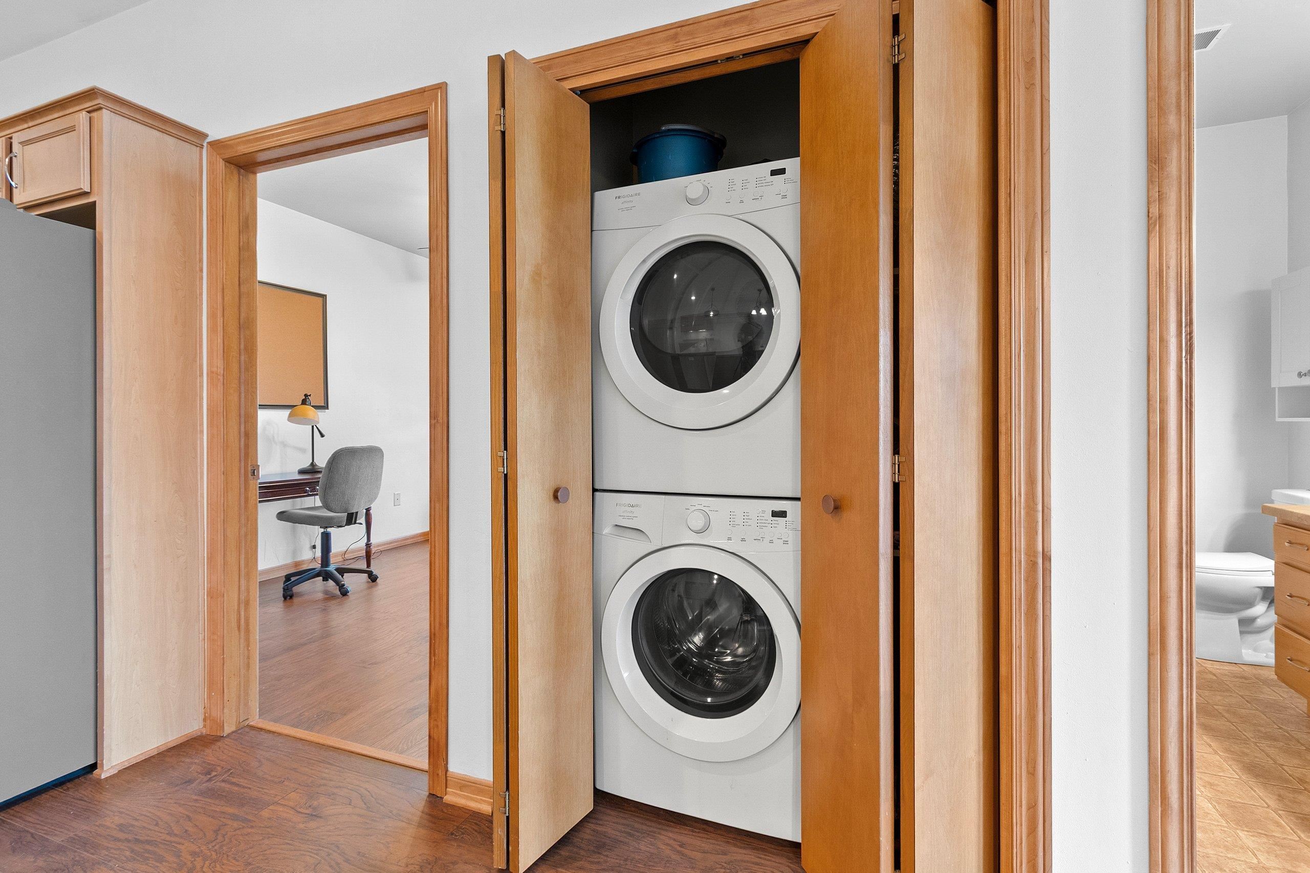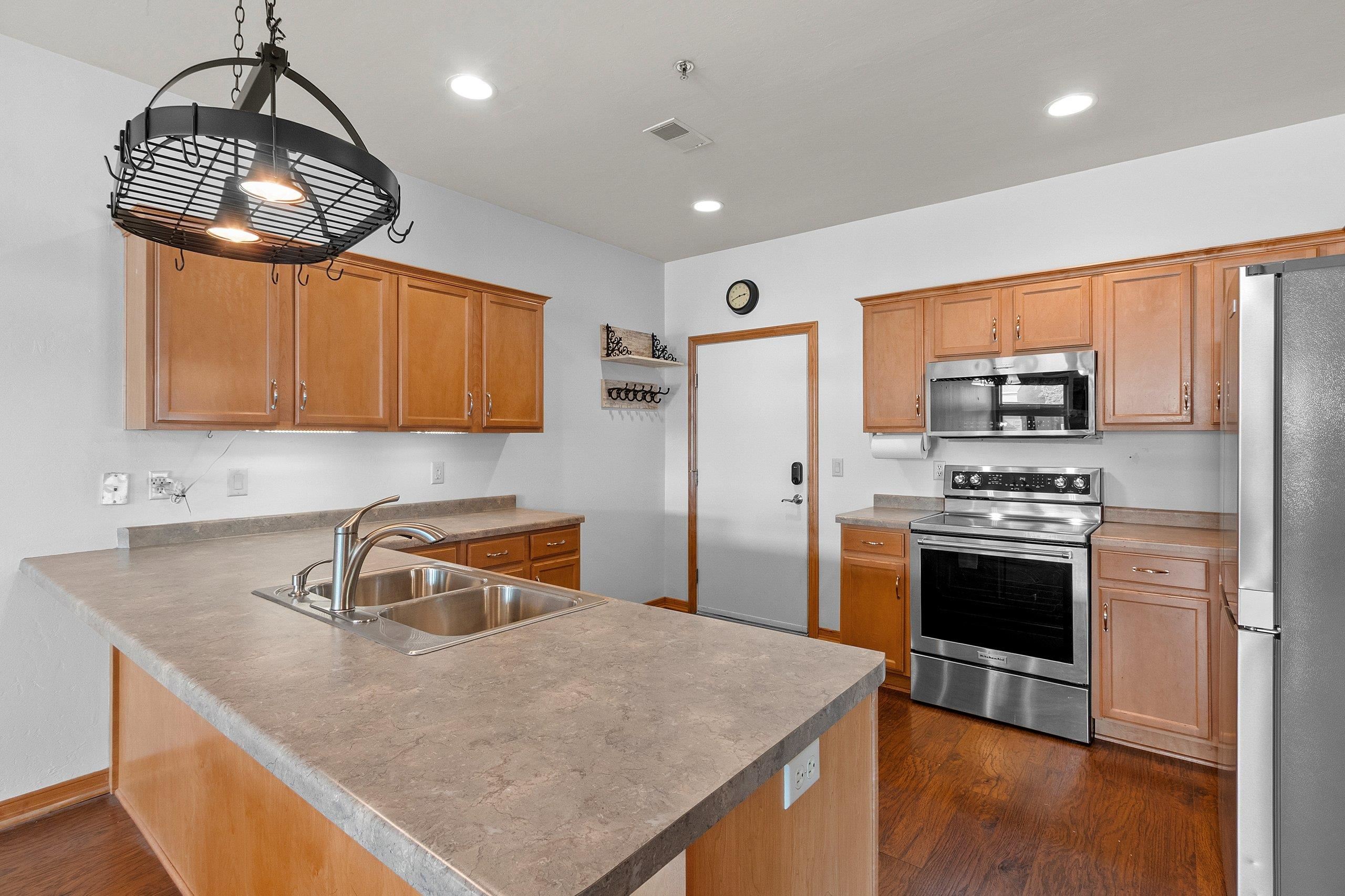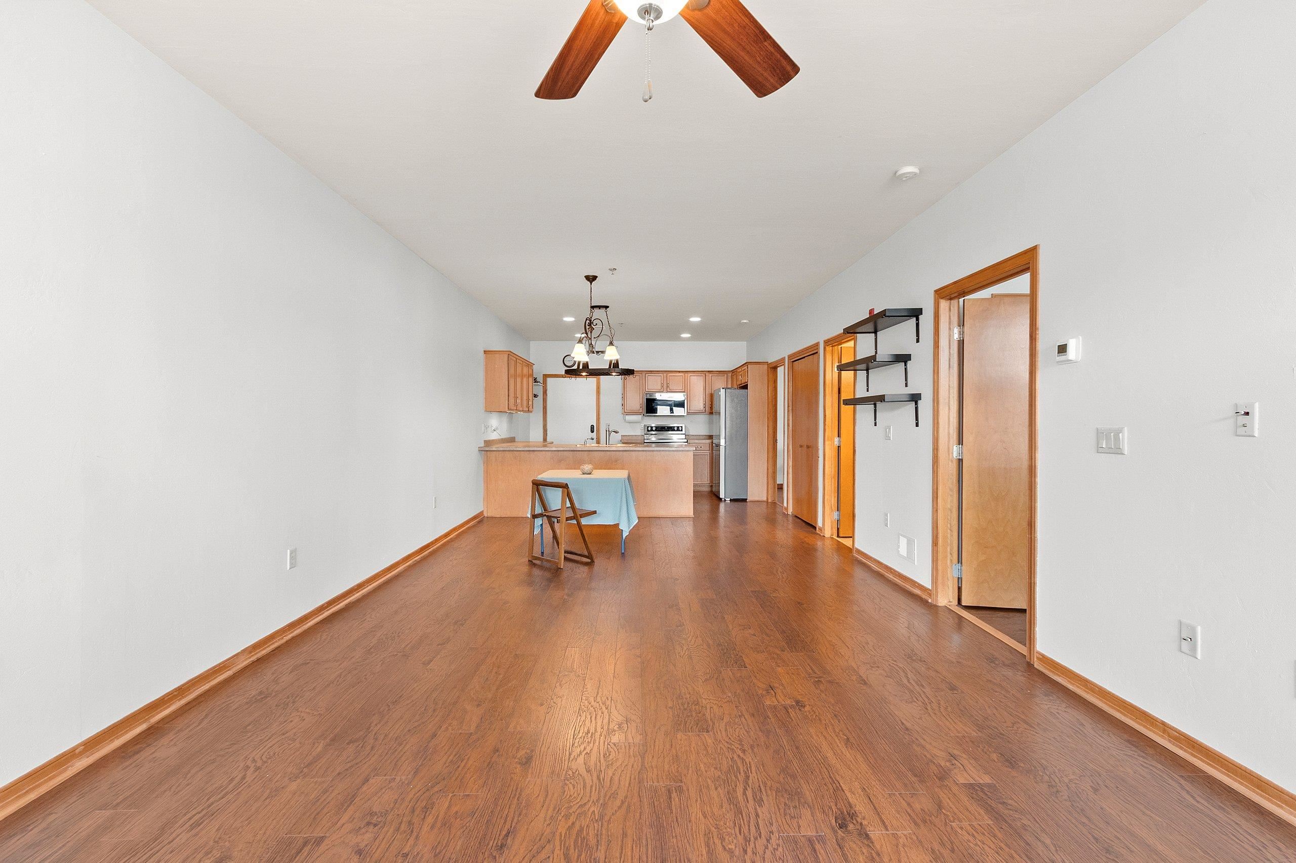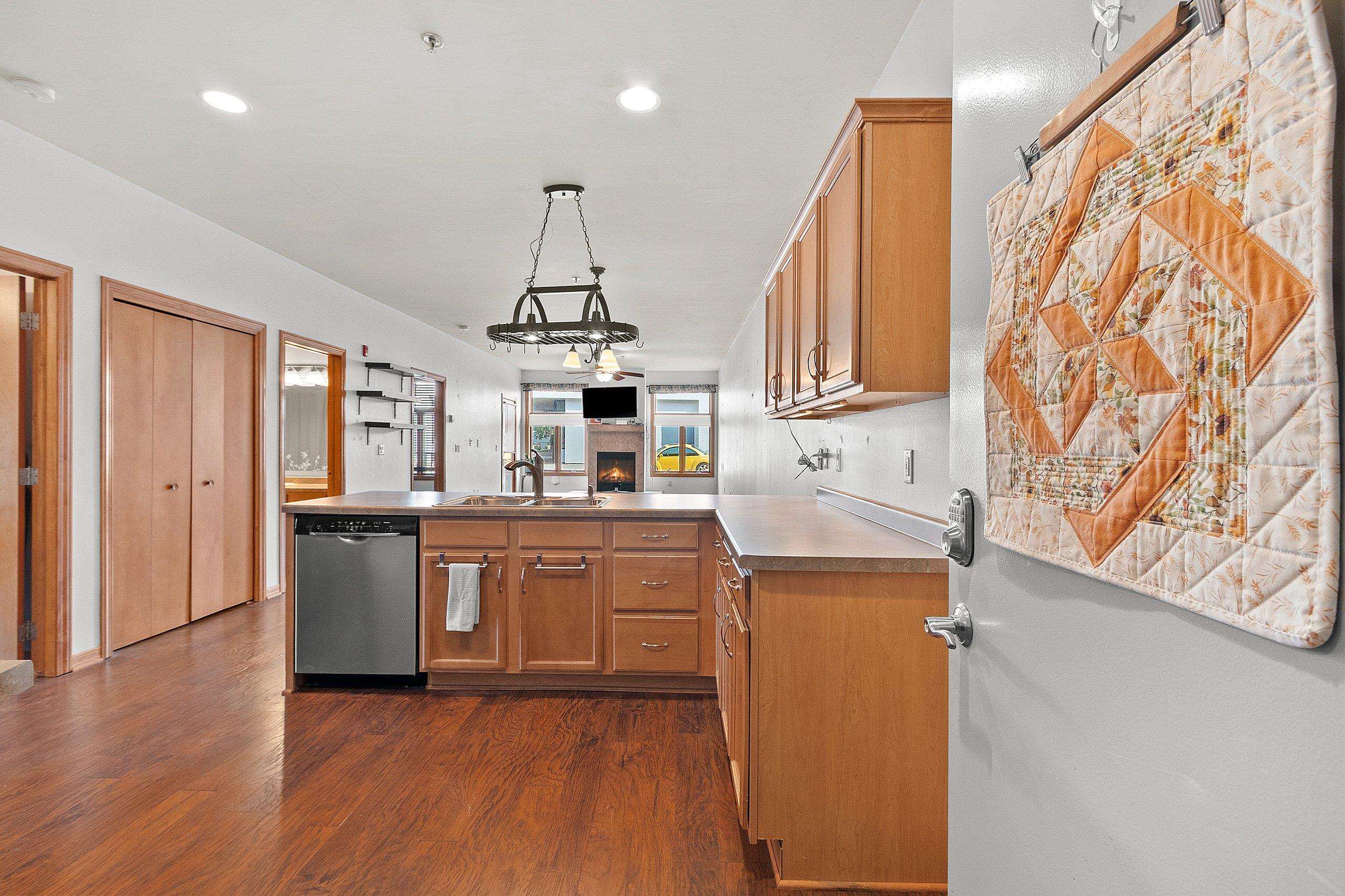 Fantastic opportunity to own in West De Pere! First floor end unit condo located in the heart of downtown De Pere. Close to everything from local restaurants, shopping and highway access. Open concept floor plan. Living room has a gas fireplace and access to covered porch. Maple cabinets throughout kitchen & new appliances are included! Two spacious bedrooms. Updated master bath offers a walk in shower & double vanity. First floor laundry hook-ups. Condo amenities included secured building, indoor pool, exercise room, rooftop patio, heated underground parking. One outside parking spot and one inside parking spot. Monthly dues are $350. Professional photos being added 9/20/2025.