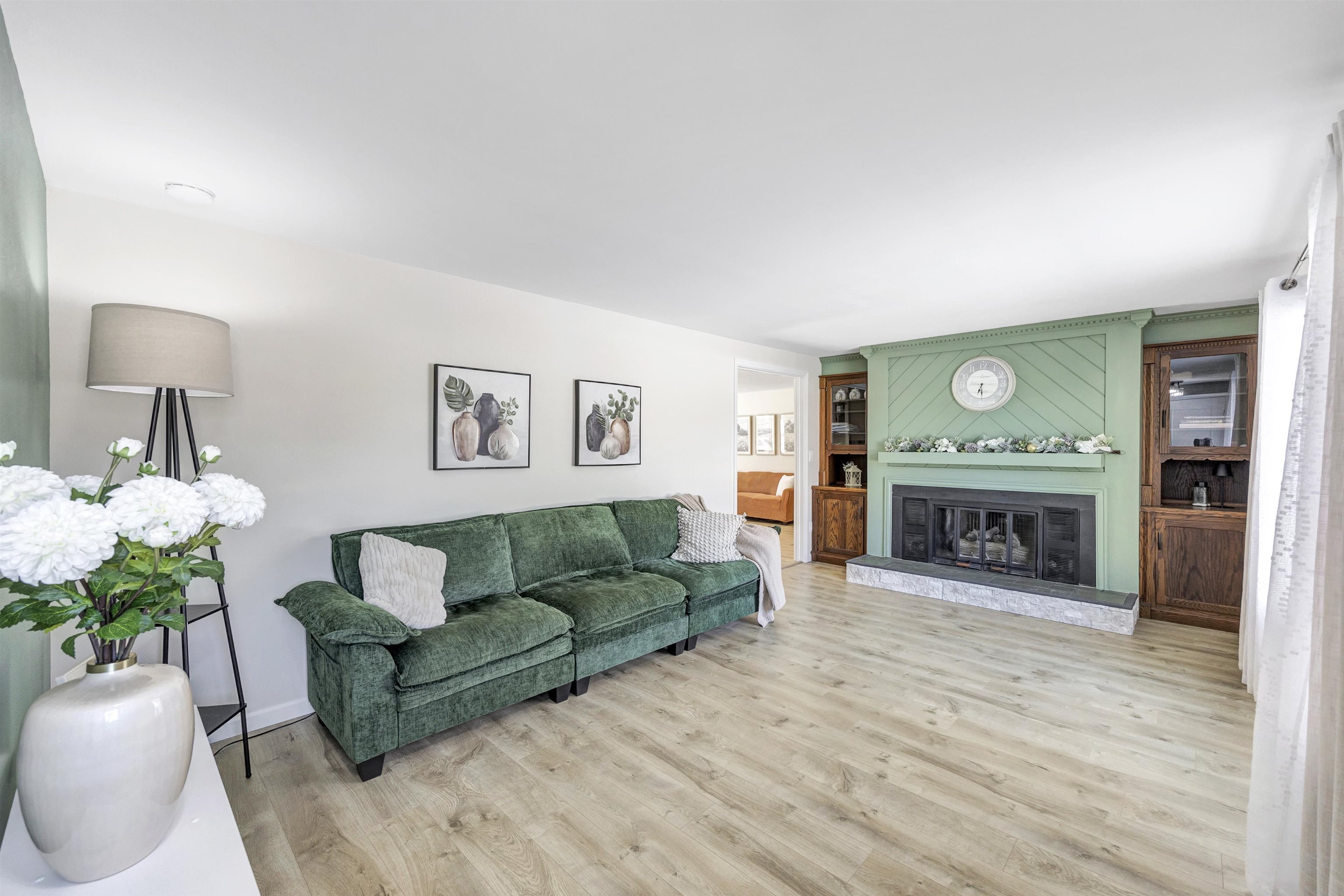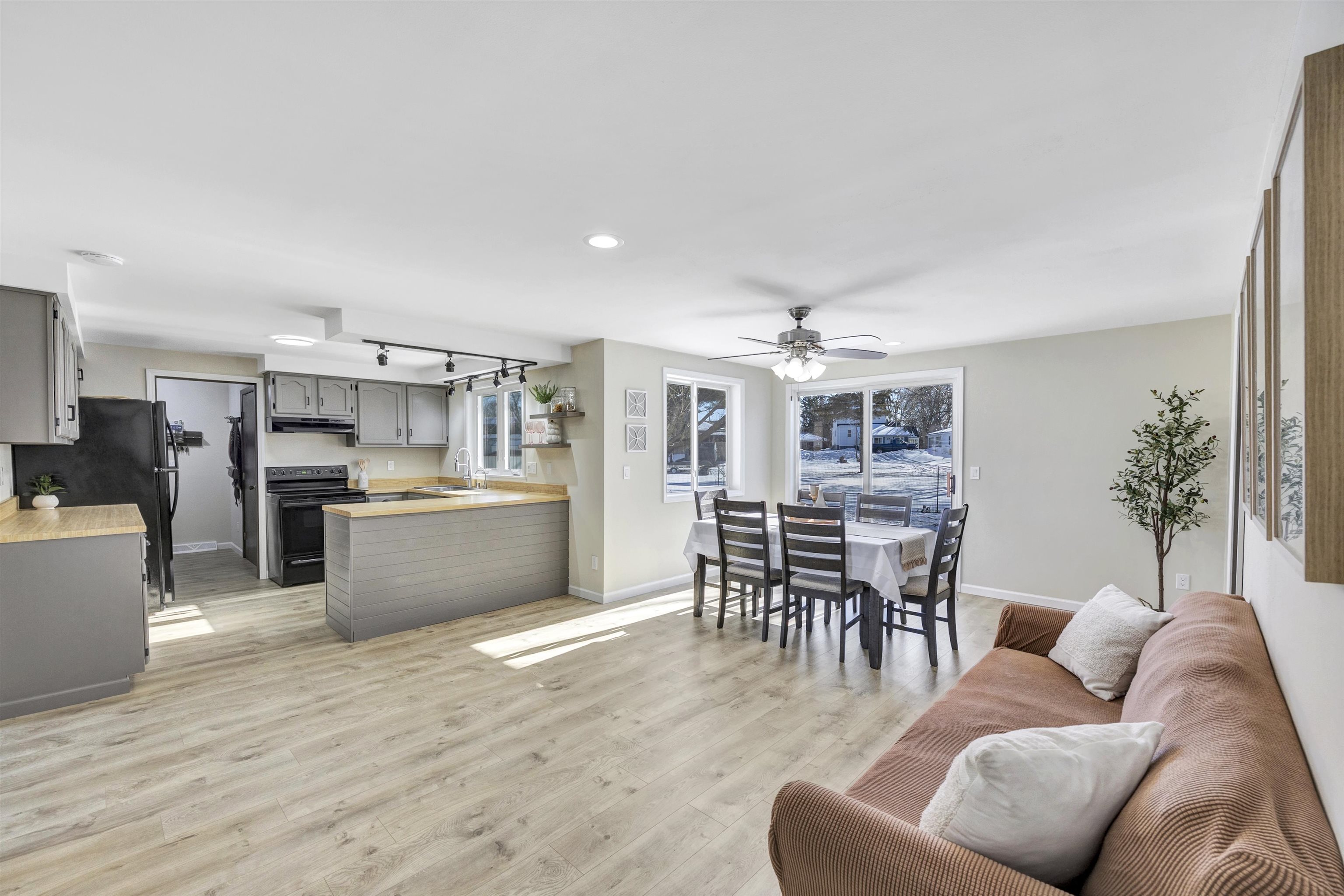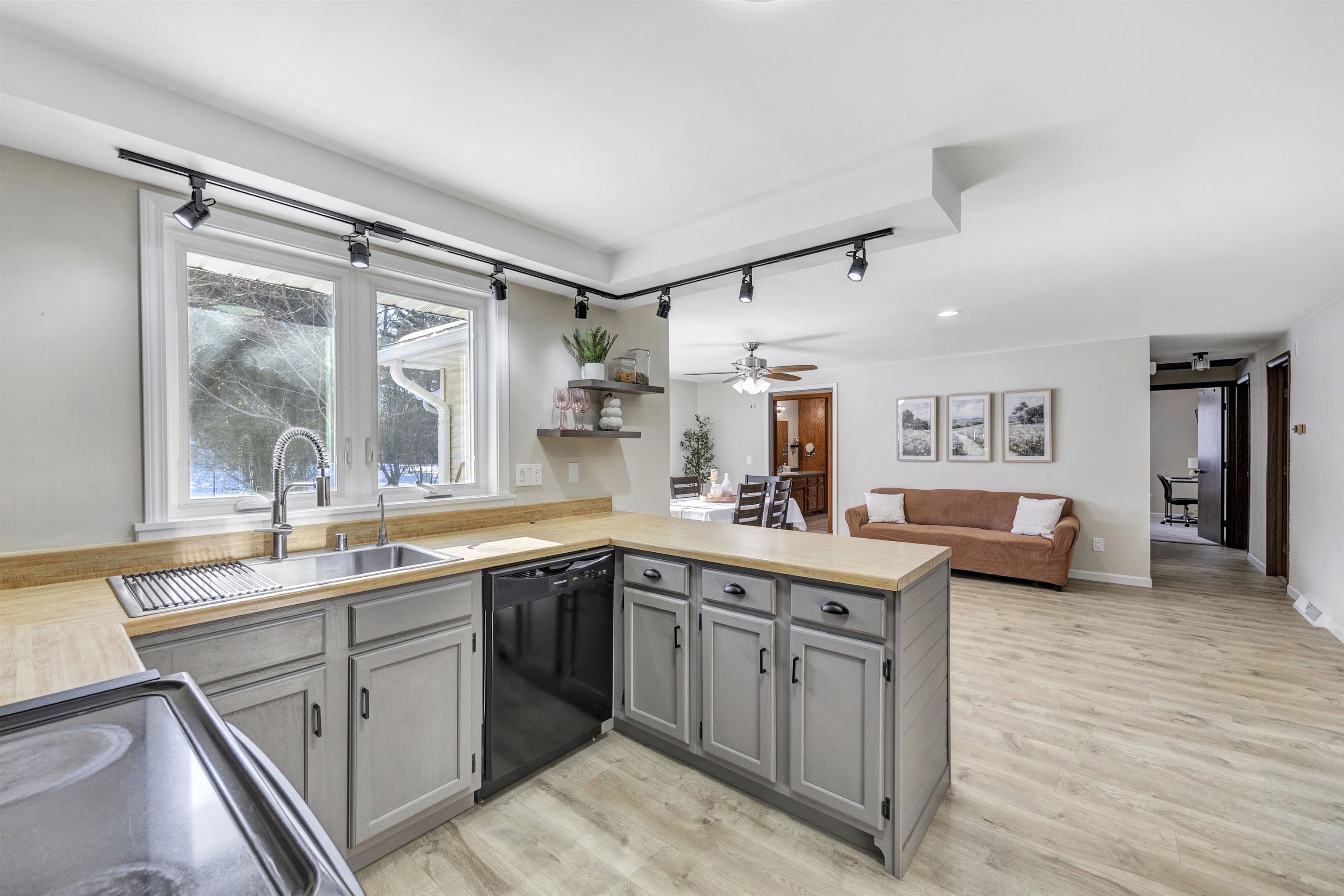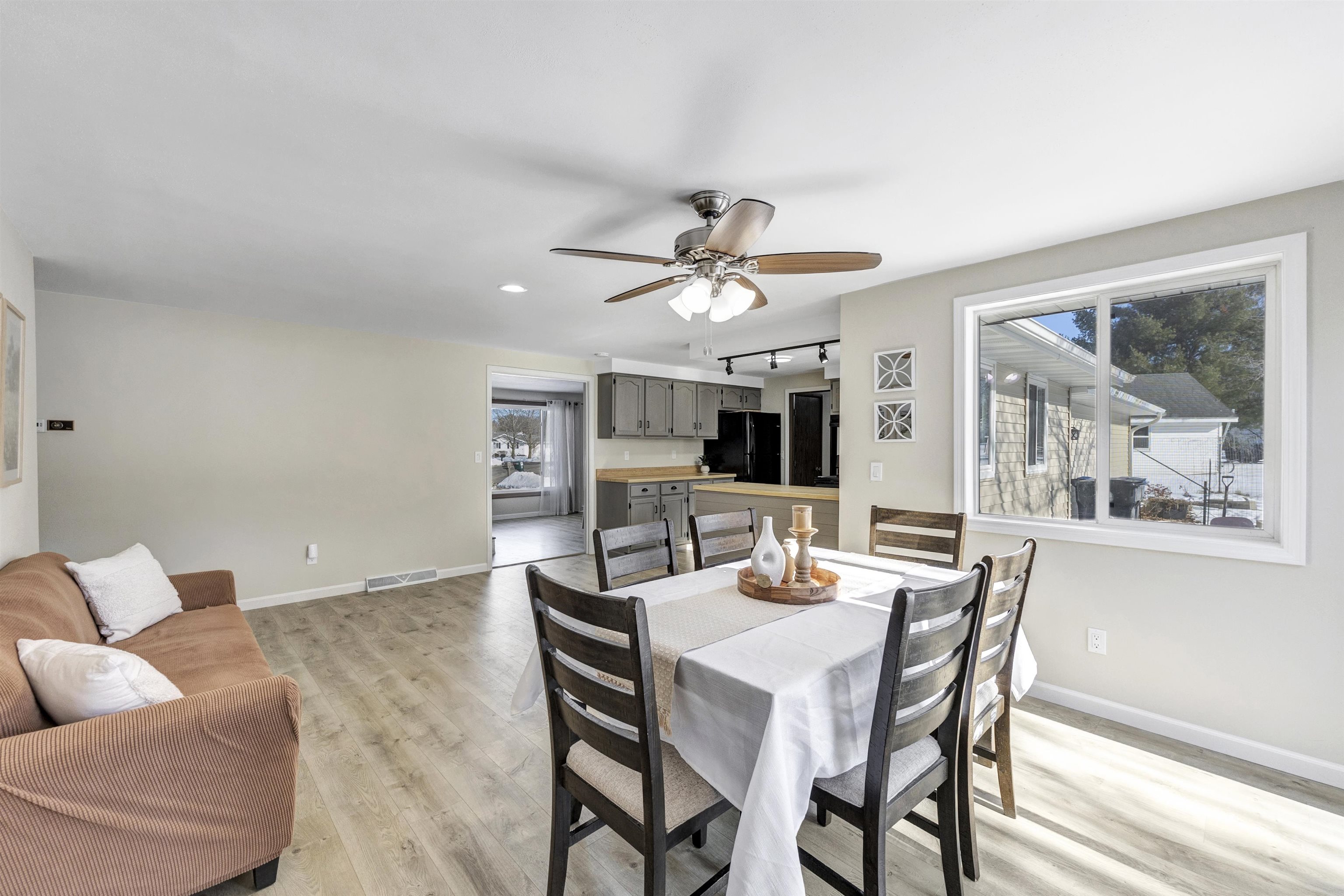 Tucked at the end of a cul-de-sac, this beautifully updated 4-bedroom ranch offers comfort, space, and functionality. Enjoy abundant natural light and hybrid resilient plank flooring throughout the main living area. The living room features a cozy gas fireplace with built-ins. The spacious kitchen and dining area include painted cabinets, appliances, and ample storage, with a patio door leading to the fenced yard. The primary suite offers a private bath, walk-in closet, and flex space for a home office. Three additional bedrooms, 1st-floor laundry, finished lower level, egress window for future bedroom, 2-car garage, garden area, and shed complete this move-in ready home. Offers due Monday, February 23rd at 1:30 pm binding through 5pm.