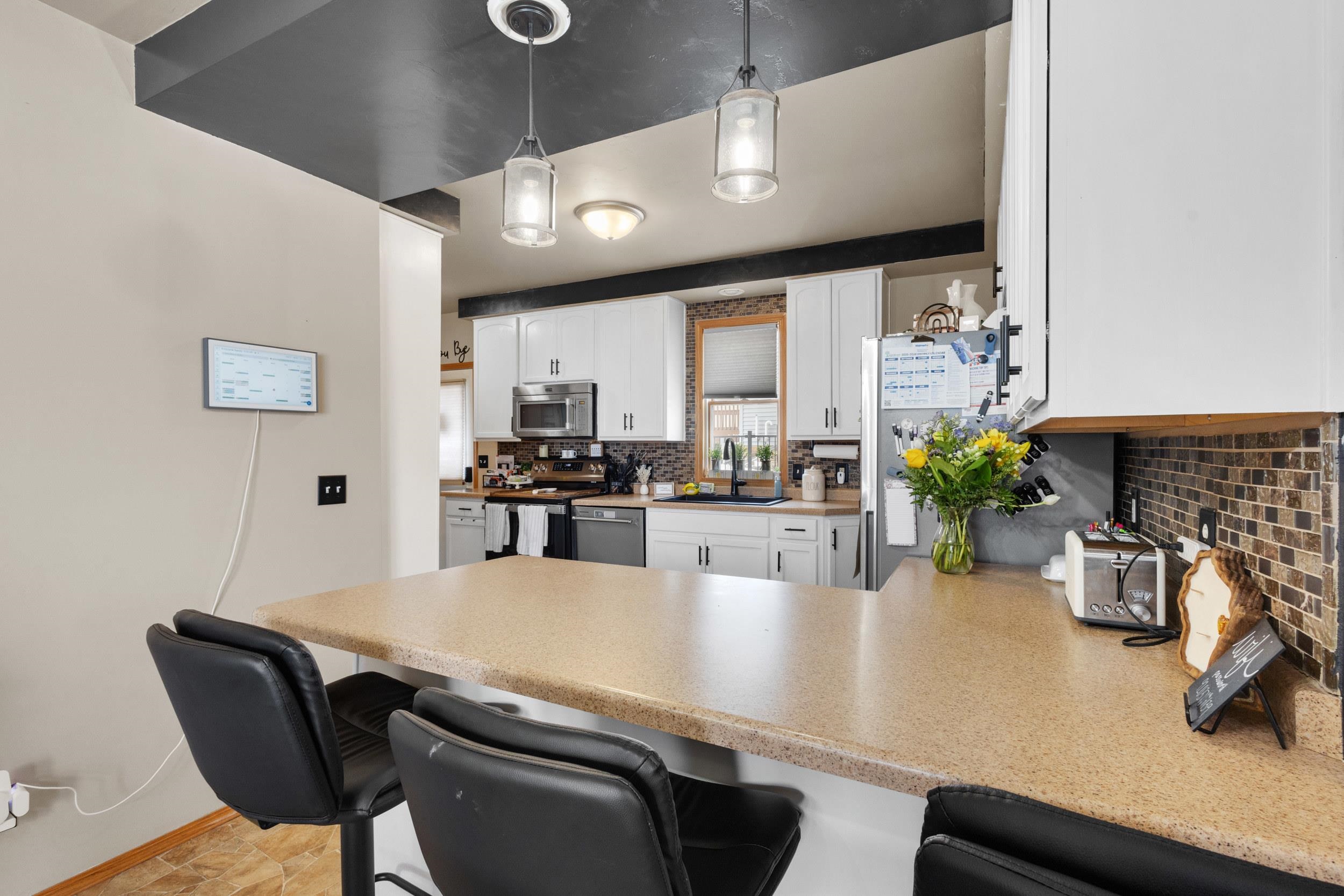 Check out this 3 bedroom 1.5 bathroom home in the Village of Denmark! Bright and cheery kitchen that includes all appliances that are approx. new in 2025, lots of cabinets and nice counter space with snack bar overlooking dining area with patio door. Light and bright nice size living room & a 1/2 bath on the main floor. Nice size primary bedroom on the main floor with walk in closet. Convenient 1st floor laundry room includes the washer and dryer. Upstairs you walk into a large family room with two spacious bedrooms right off of the family room. TVs in upper bedrooms are included! Basement has room for storage, water softener is owned and included in the sale. You will love the huge garage that is approx. 32x30! 48H binding acceptance.