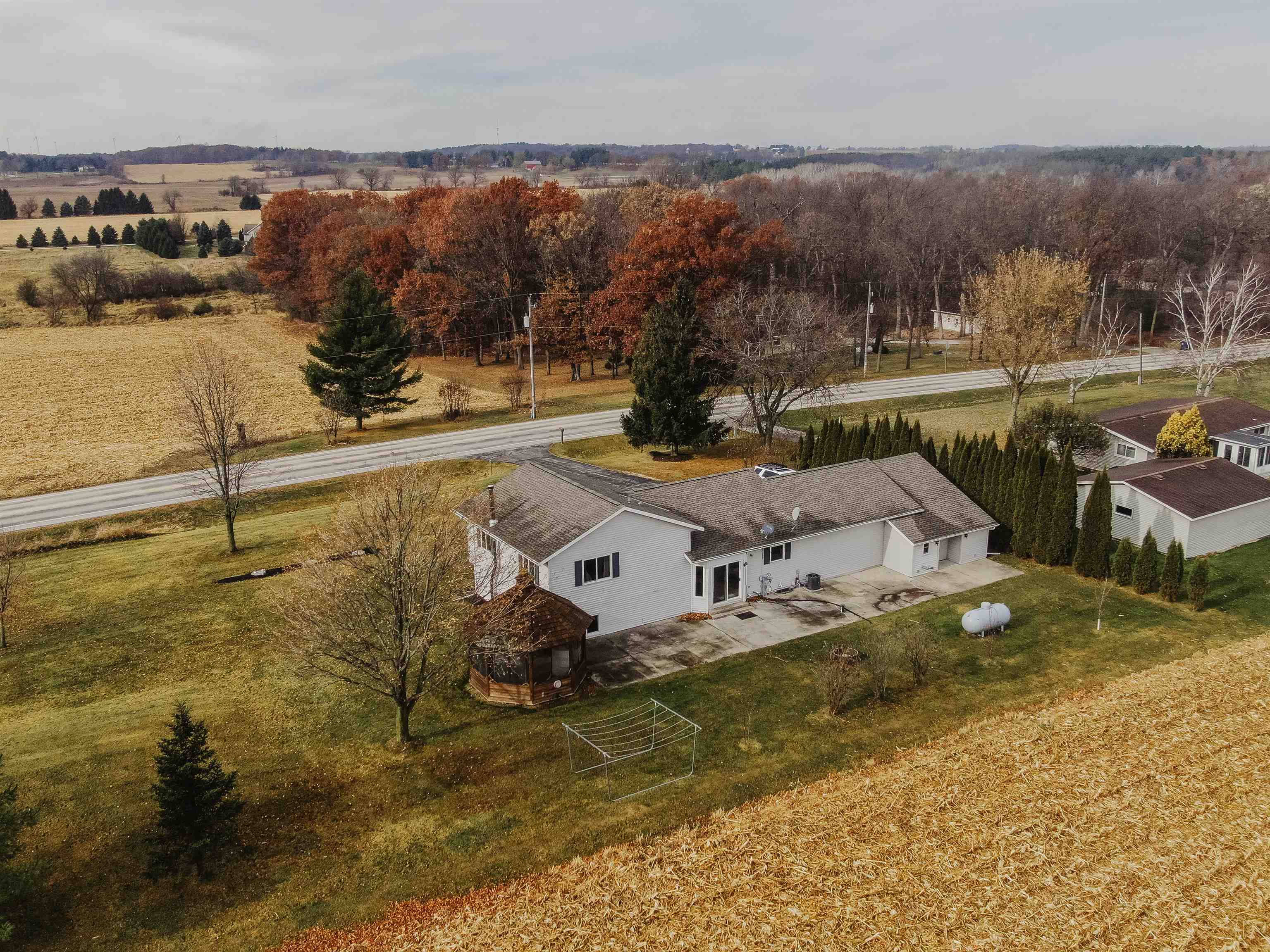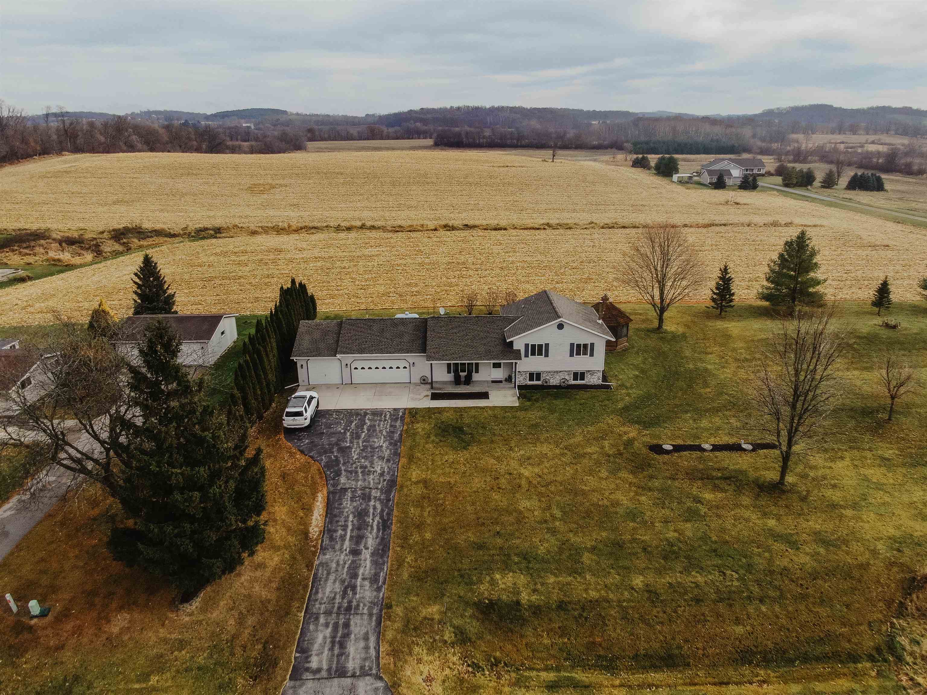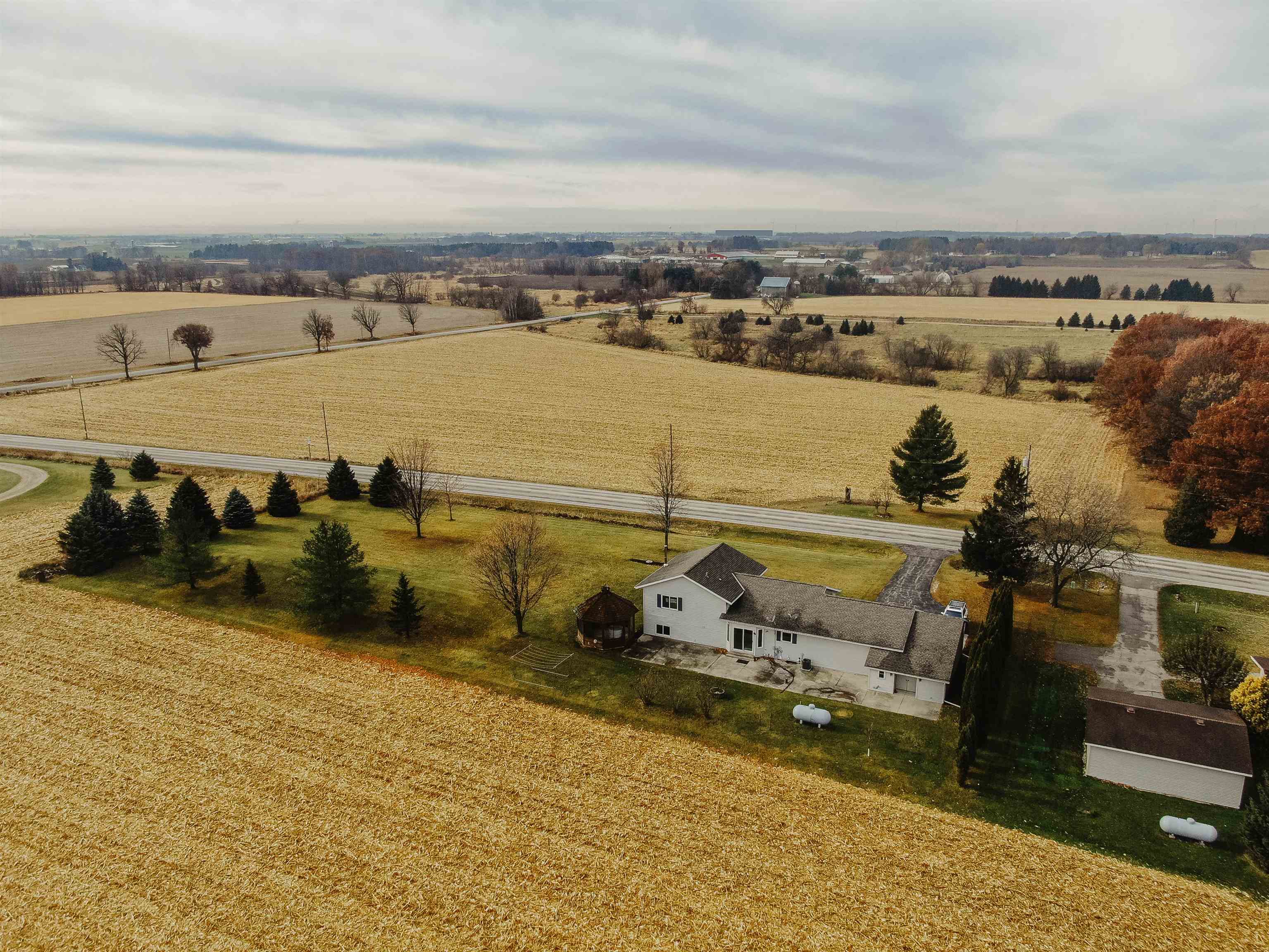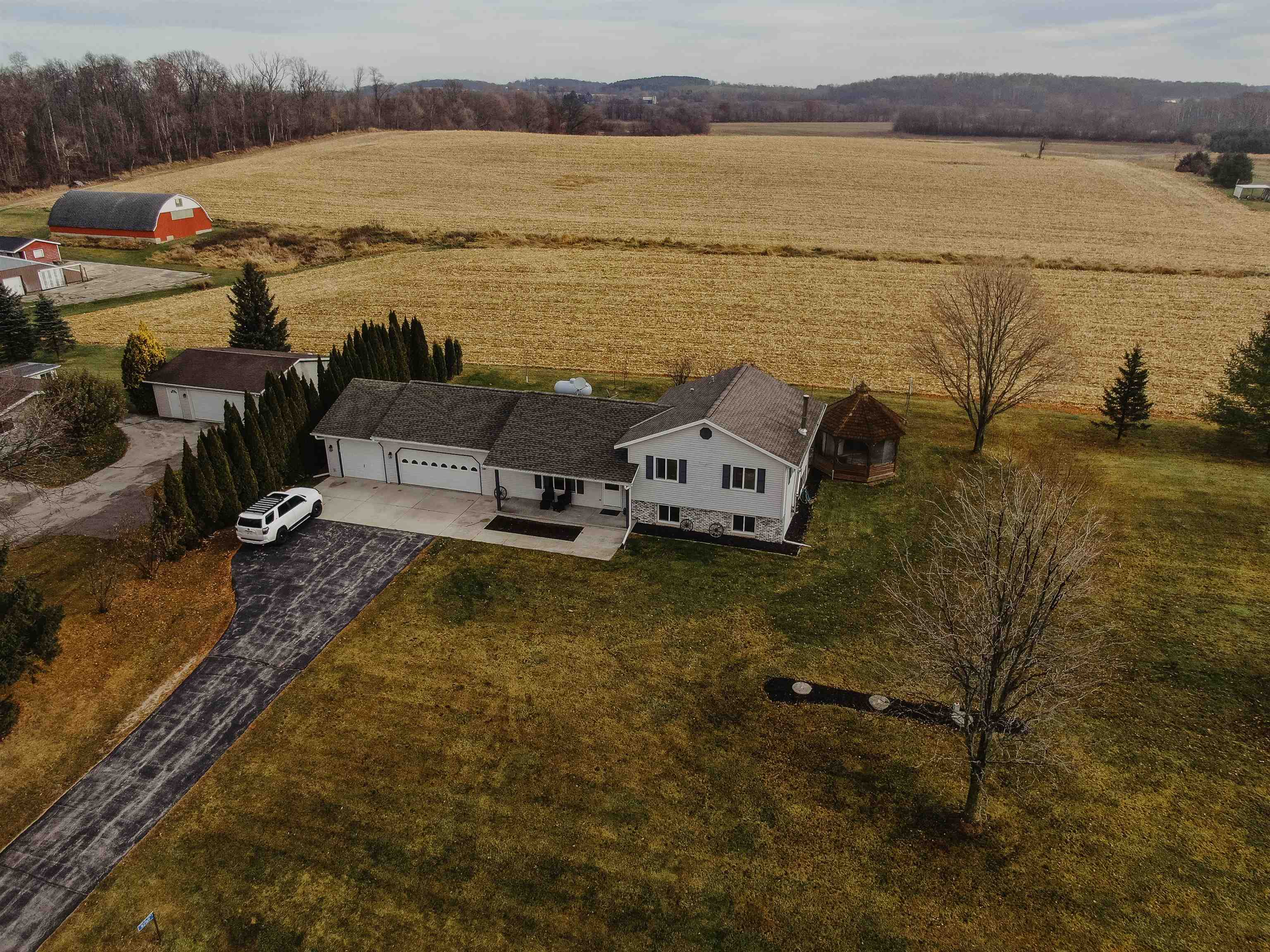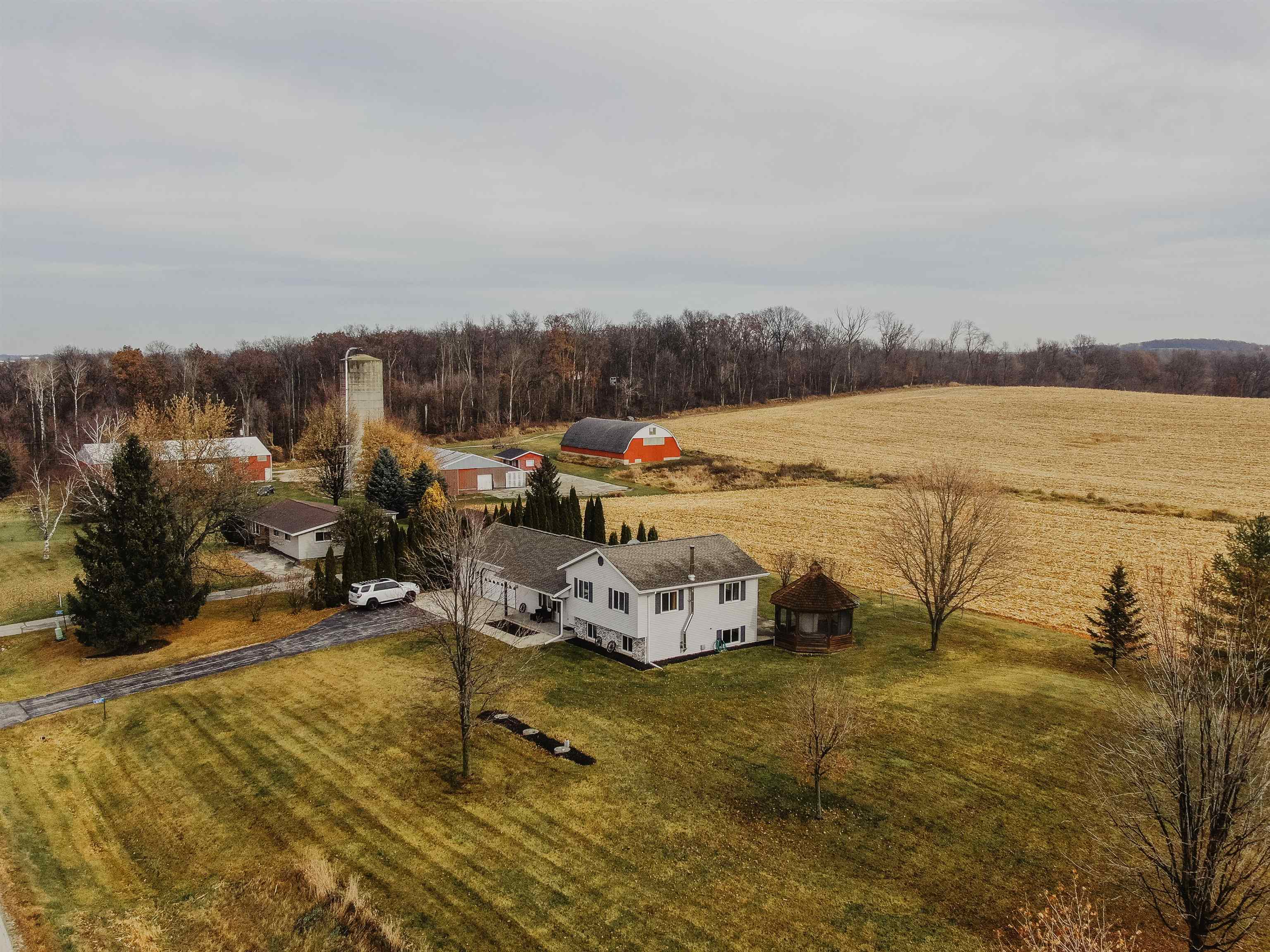 FANTASTIC COUNTRY VIEW! Welcome to this wonderful Quad level home featuring 3 bedrooms, 2 full bath with a 3 car detached garage all on an 1-acre lot surrounded by corn farmland. As soon as you enter the front door you walk into a bright and cheerful living room that leads into the updated kitchen and dining area, all with newer flooring. Patio doors from the dining area will let you access the back yard overlooking the country fields, perfect for entertaining and watching wildlife as a bonus you can also enjoy the gazebo for some added relaxation. Large rec room with a fireplace for added space to enjoy. If you enjoy to tinker the 3rd stall heated garage offers plenty of room to set up shop or use it as additional storage for toys.