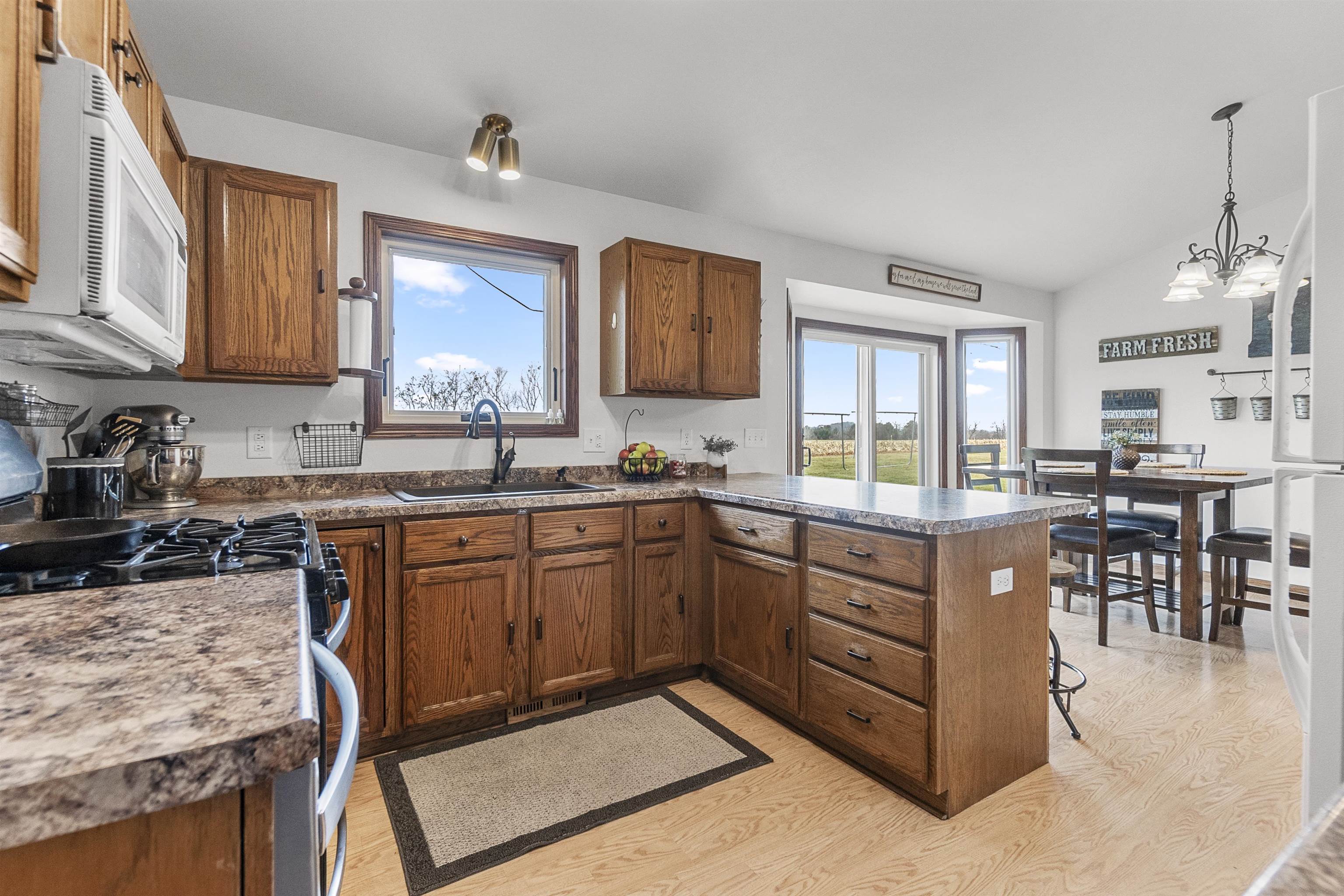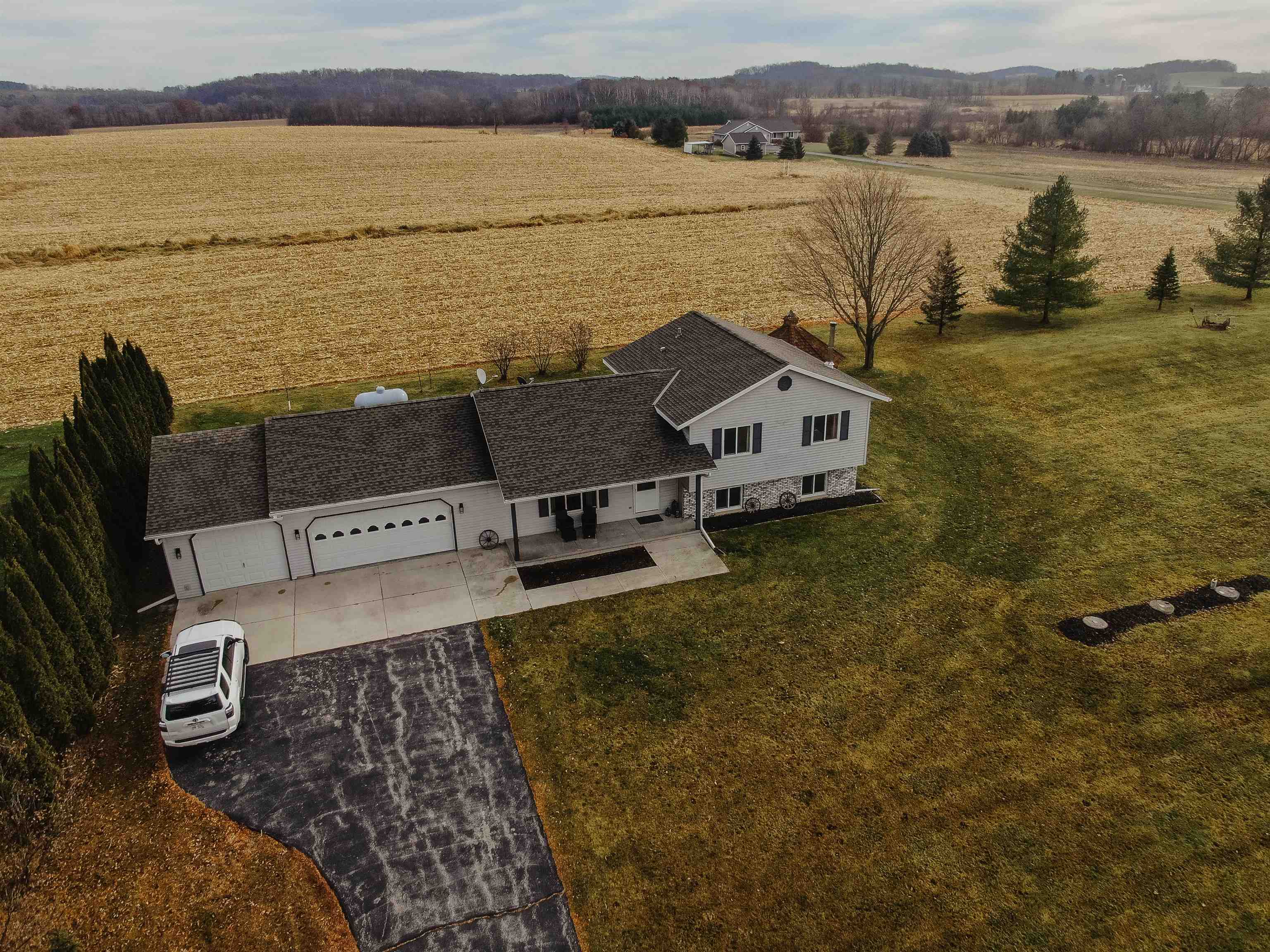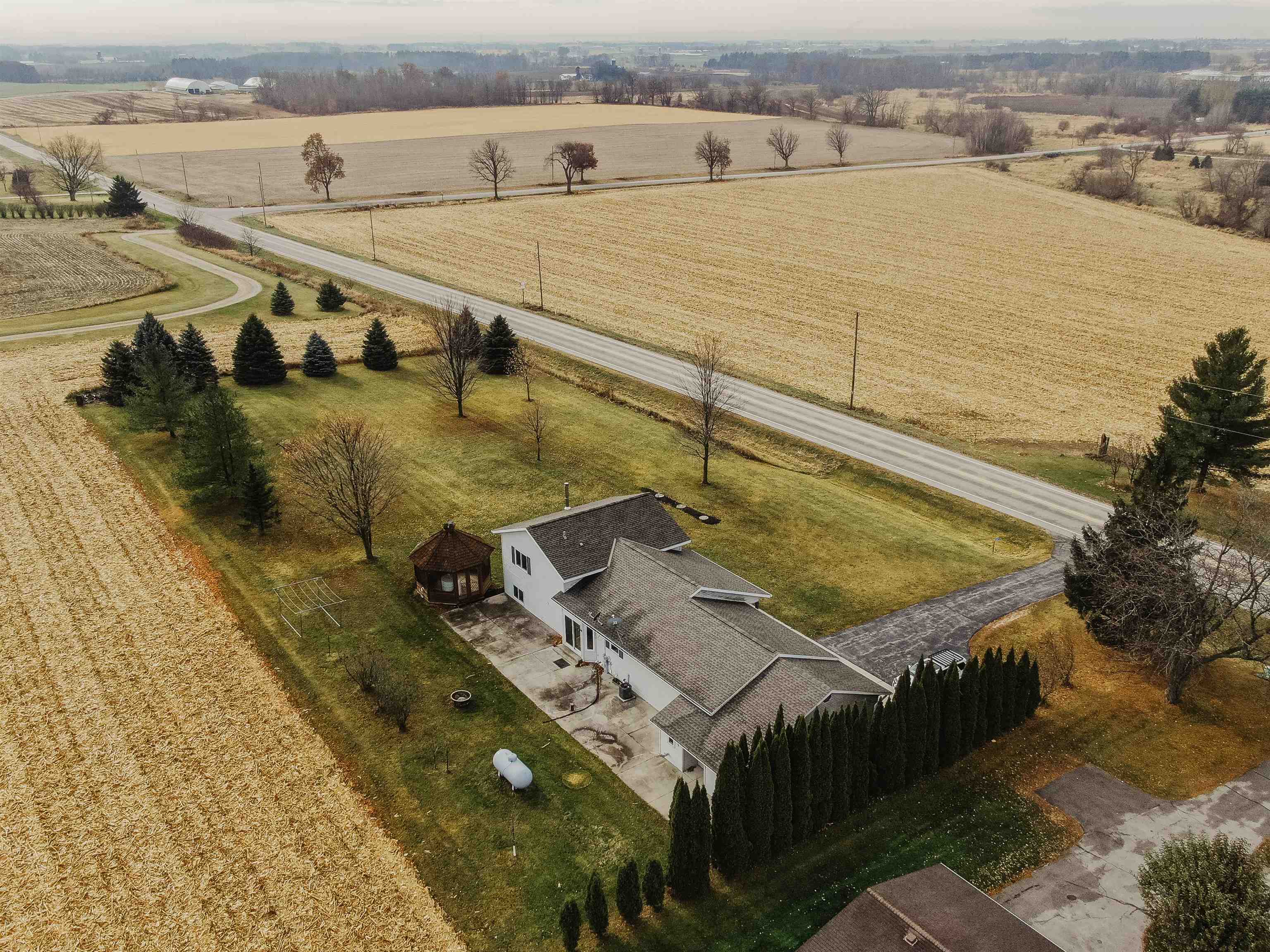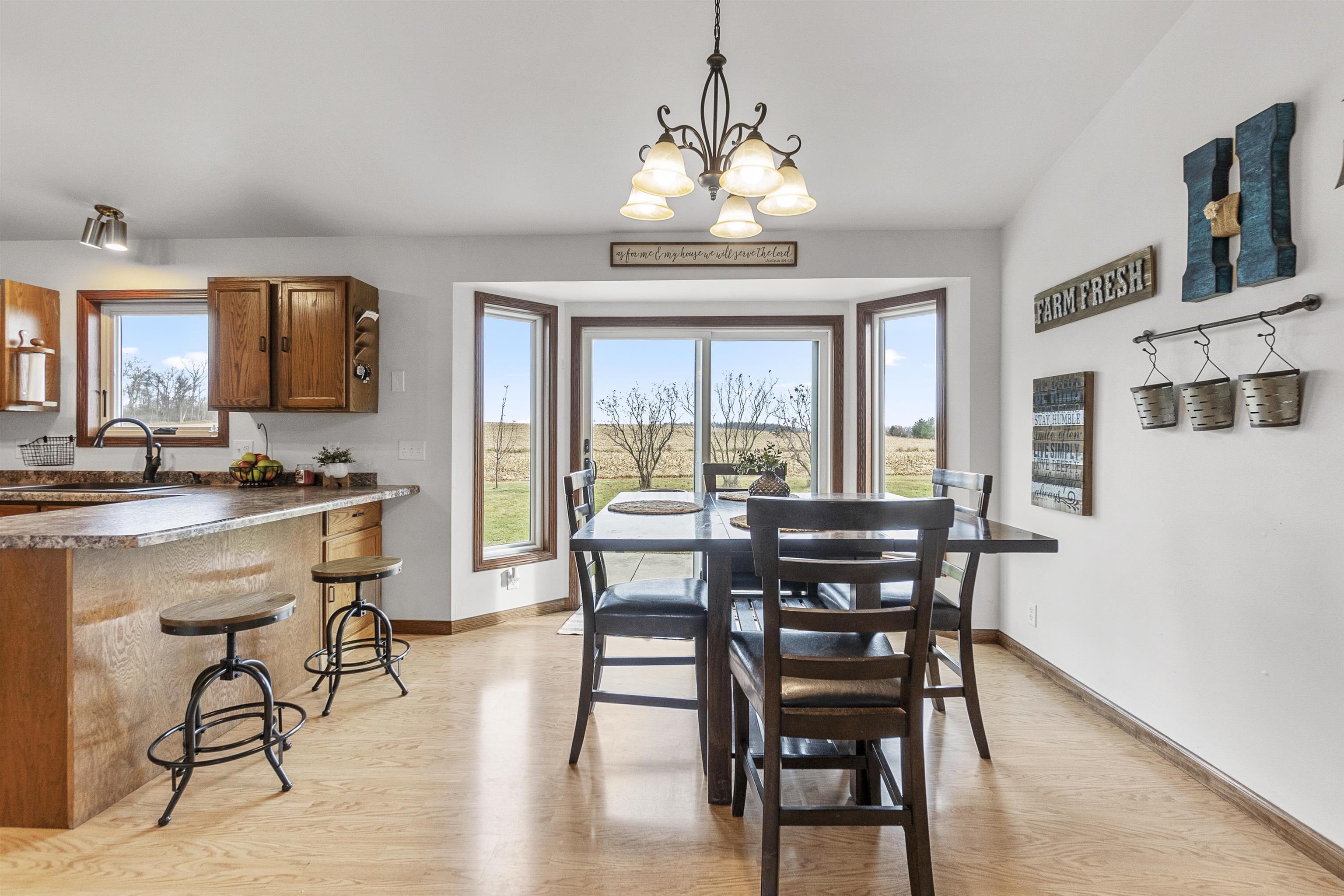 FANTASTIC COUNTRY VIEW! Welcome to this wonderful Quad level home featuring 3 bedrooms, 2 full bath with a 3 car detached garage all on an 1-acre lot surrounded by corn farmland. As soon as you enter the front door you walk into a bright and cheerful living room that leads into the updated kitchen and dining area, all with newer flooring. Patio doors from the dining area will let you access the back yard overlooking the country fields, perfect for entertaining and watching wildlife as a bonus you can also enjoy the gazebo for some added relaxation. Large rec room with a fireplace for added space to enjoy. If you enjoy to tinker the 3rd stall heated garage offers plenty of room to set up shop or use it as additional storage for toys.