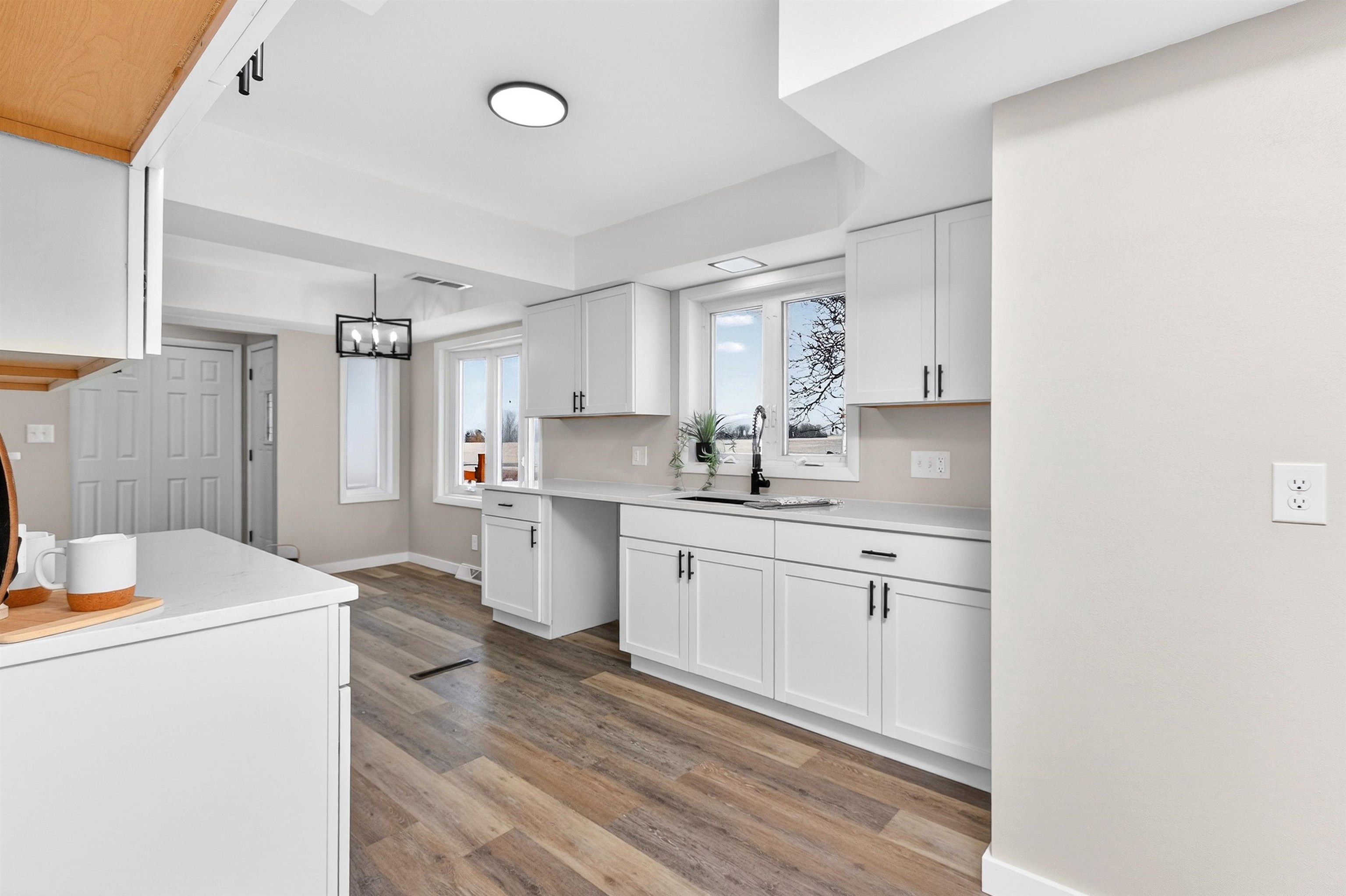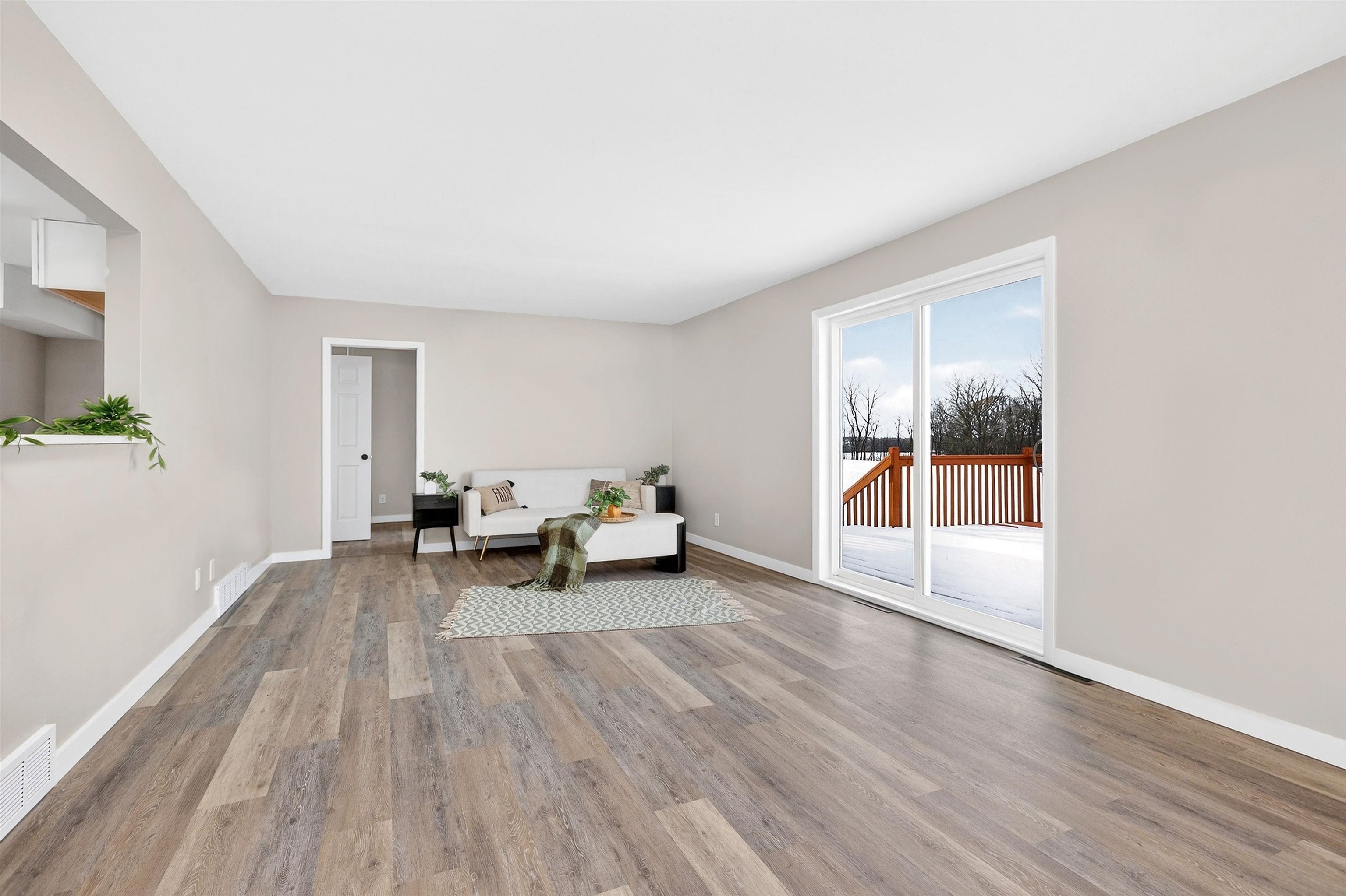 Great country property just minutes from Oshkosh! This remodeled home offers 3 bedrooms,2 full baths and 2 car garage. This home sits on 3.05 acres and features numerous updates along with opportunity to expand in the lower level. Recent updates include new kitchen, sink, flooring; a newly added second full bath; a new laundry area; and reconditioned hardwood floors in the bedrooms. Foundation walls have been professionally braced by B&B Basements for added peace of mind.Enjoy relaxing or entertaining on the spacious 16’x16’ deck while taking in scenic views and abundant wildlife. The roof was replaced in 2008, with eaves and gutters updated in 2021. The well is currently shared with a neighboring property