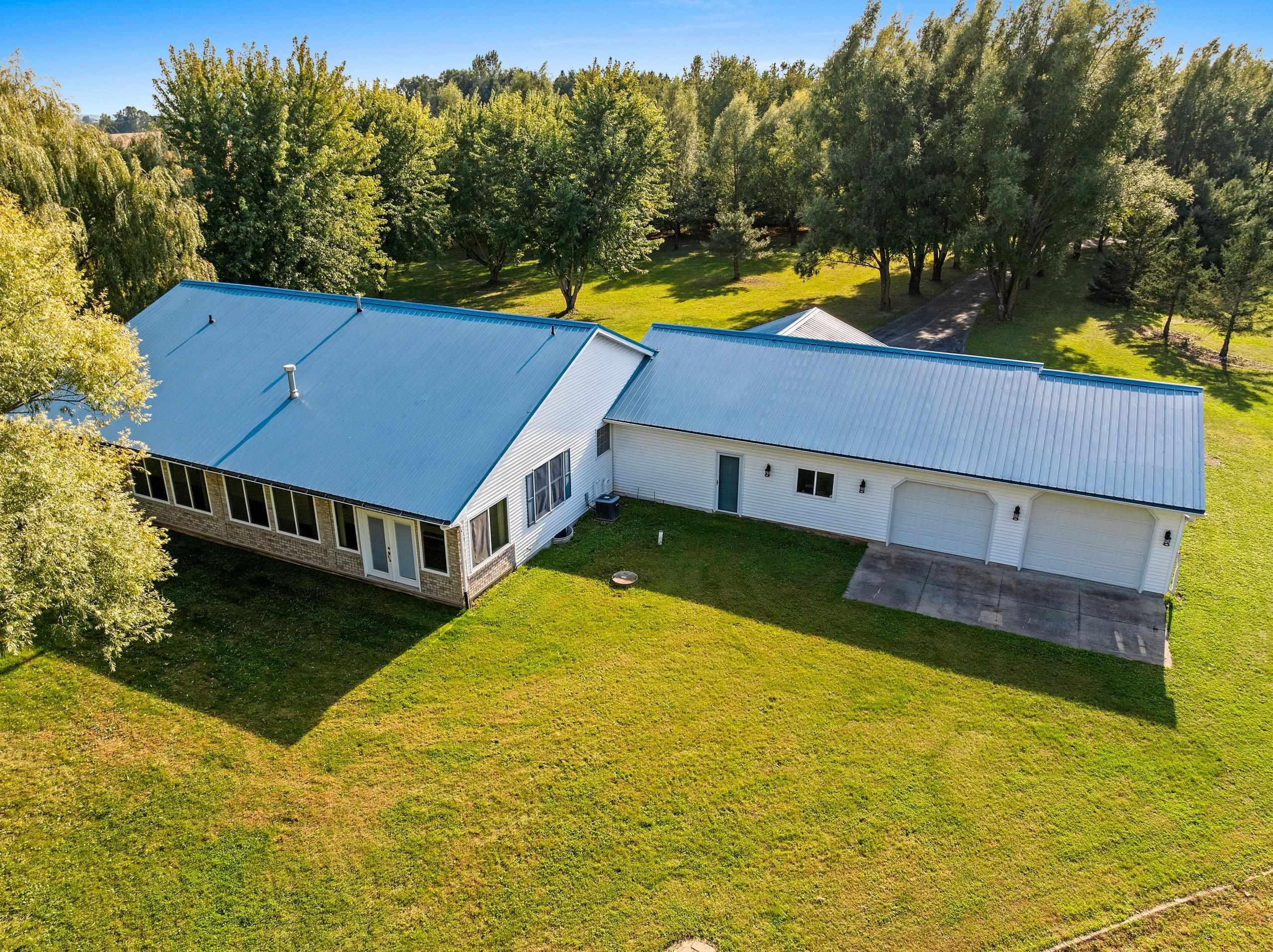 This well cared for one owner home on private 4.59 acres is sure to please. The tree lined driveway will guide you to this one of a kind sprawling ranch. Once inside you will you are greeted with large foyer, vaulted ceilings, title floors & fireplace. The kitchen has hickory cabinets, many built ins, center island and a full kitchen appliance package included. The primary bedroom offers trey ceiling, tons of closets space, patio doors leading to porch and private on suite. First Floor Laundry. Lower level has bedroom and full bath & stairs to the garage. 4 car attached garage gives you many options AND an additional large shed. Set up your private showing today! Please allow sellers 48 hours to respond to any offers.
