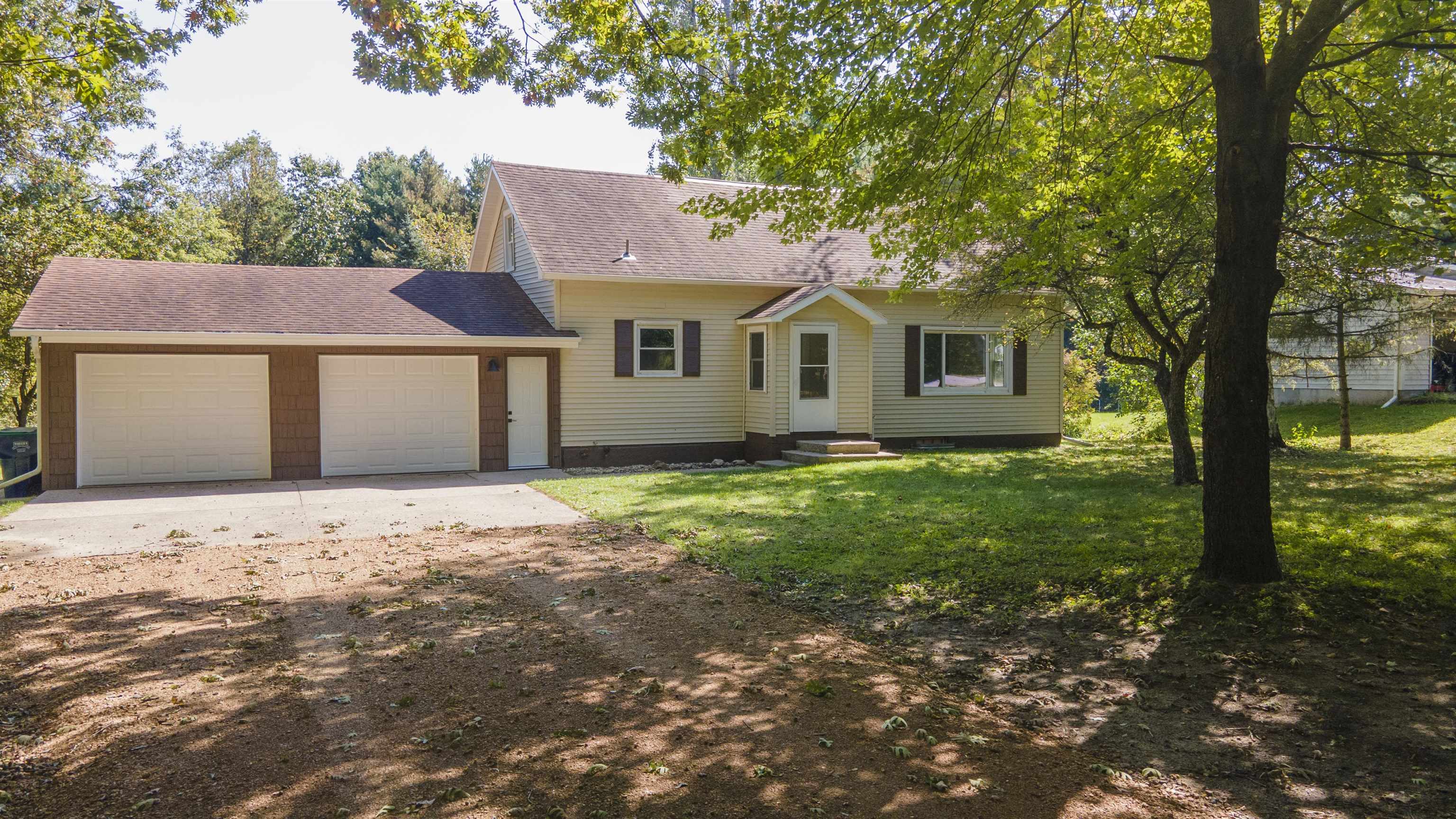 Freshly renovated 4 bed 1 bath home just outside City limits of Waupaca. New kitchen cabinets, vinyl flooring, fresh paint and new carpeting throughout home. Drywalled, large, two car garage. New windows, new AC, newer furnace and H2O heater amongst many other updates. This home sits on a quiet street in a lovely neighborhood just minutes from downtown Waupaca and King. The home offers and great flow from the kitchen to dining to living room area. 2 bedrooms on the main level and two bedrooms upstairs. The freshly painted basement offers ample storage. Laundry in basement. The front yard has great curb appeal and the backyard is very private surrounded by woods. This house is just awaiting its new owner! Sellers would consider taking a home or land in on trade. Call today.