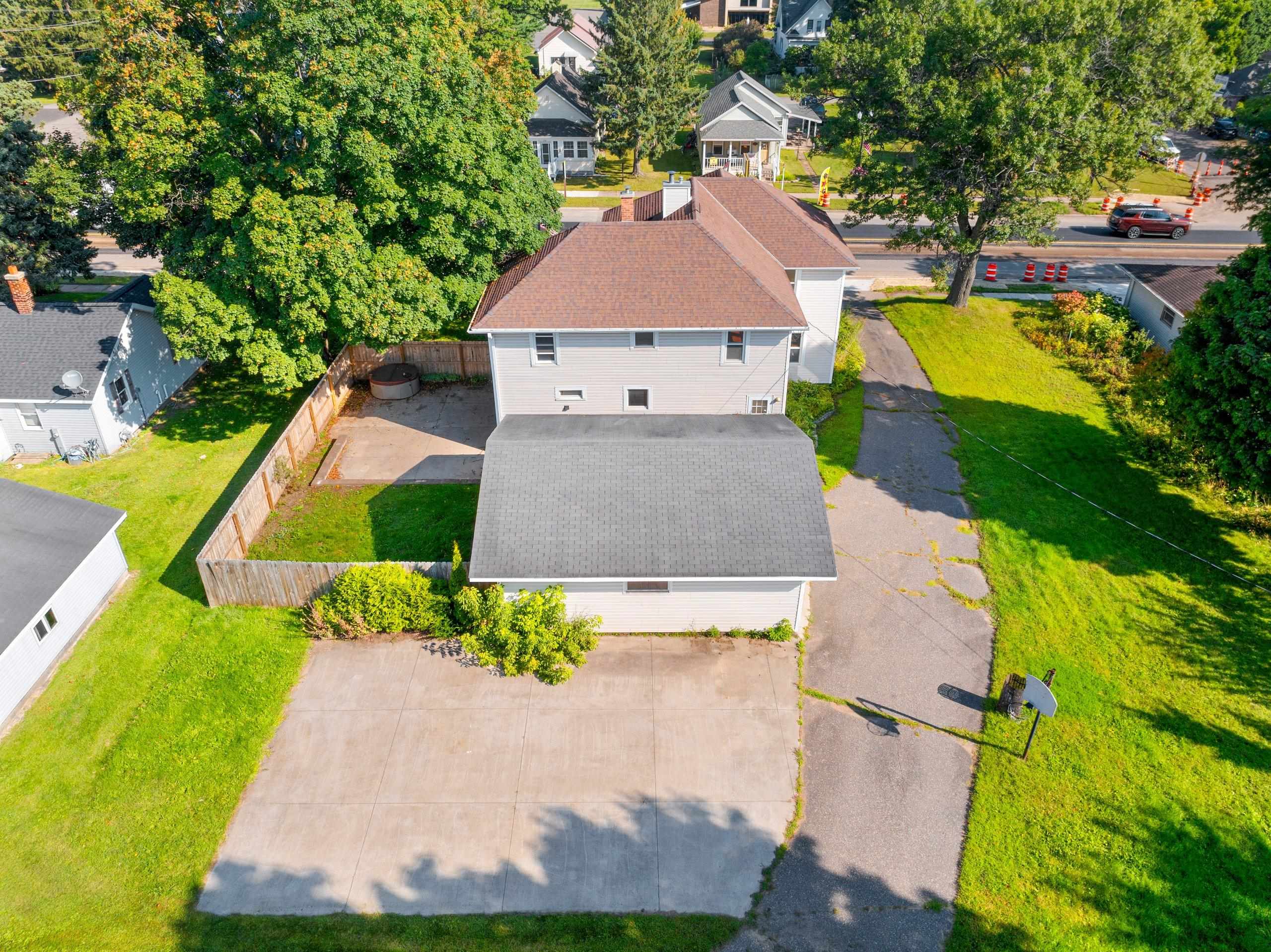 Conveniently located, spacious, move-in ready home with meaningful updates including refinished hardwood and slate tile floors, remodeled kitchen, refreshed upper bath with tile walk in shower, and two pellet stoves. Main level flows for everyday living and entertaining; upstairs offers four spacious bedrooms with walk-ins. A fenced yard with poured-concrete patio extends your living space; the 2-car detached garage, extra poured parking pad and full dry basement handle tools, toys and storage. Classic 1889 construction characteristics, 3,300+ sq ft, and a convenient in-town setting minutes from shopping, dining, lakes and trails. Some Photos Virtually Staged