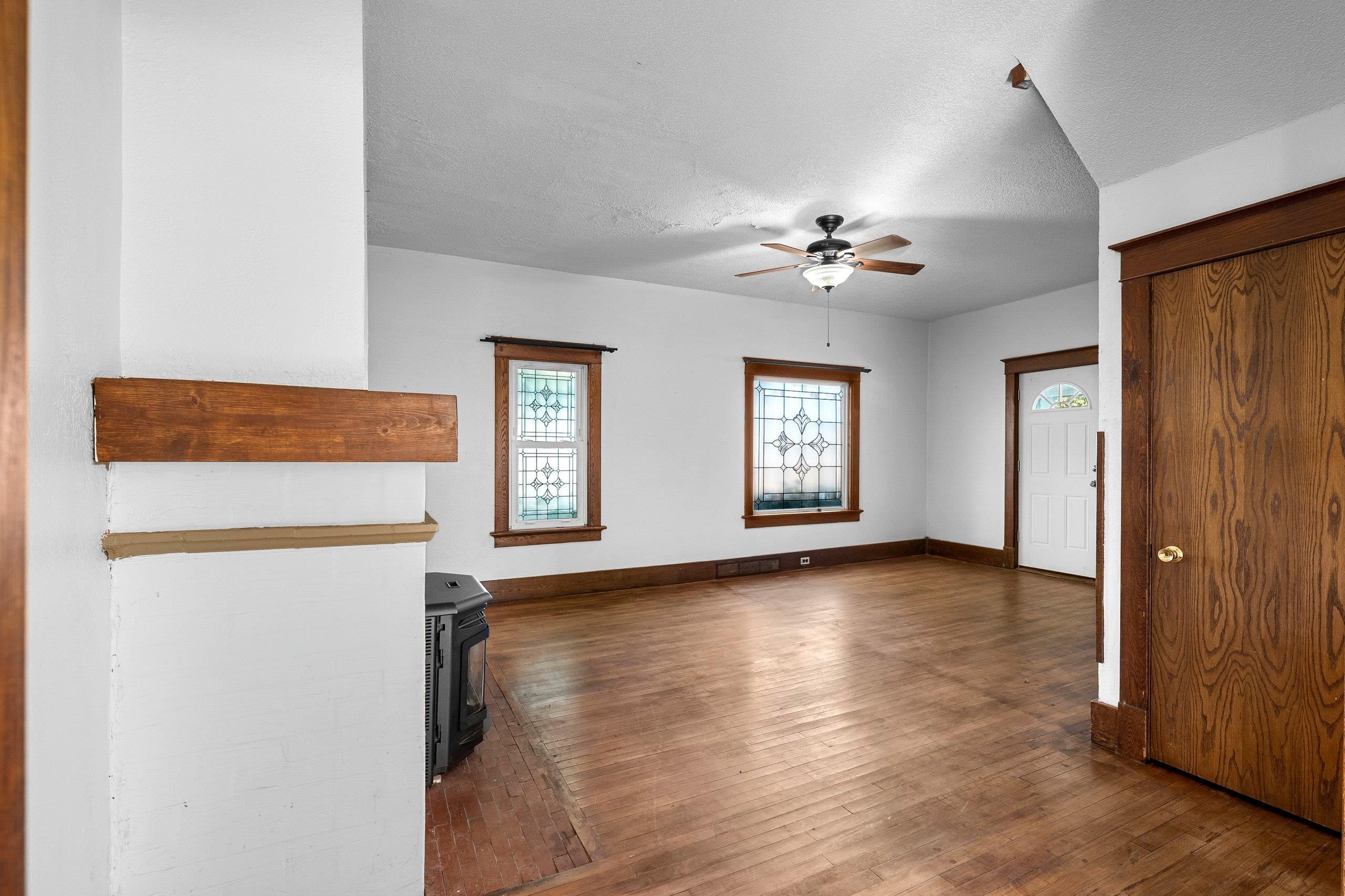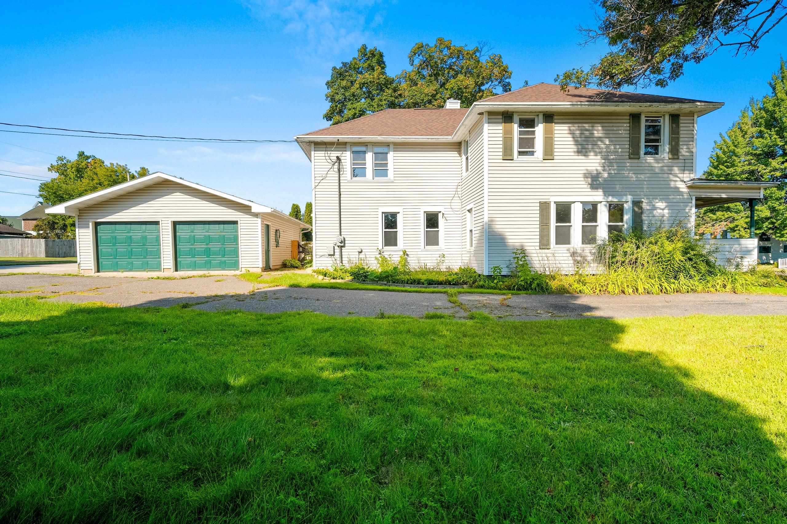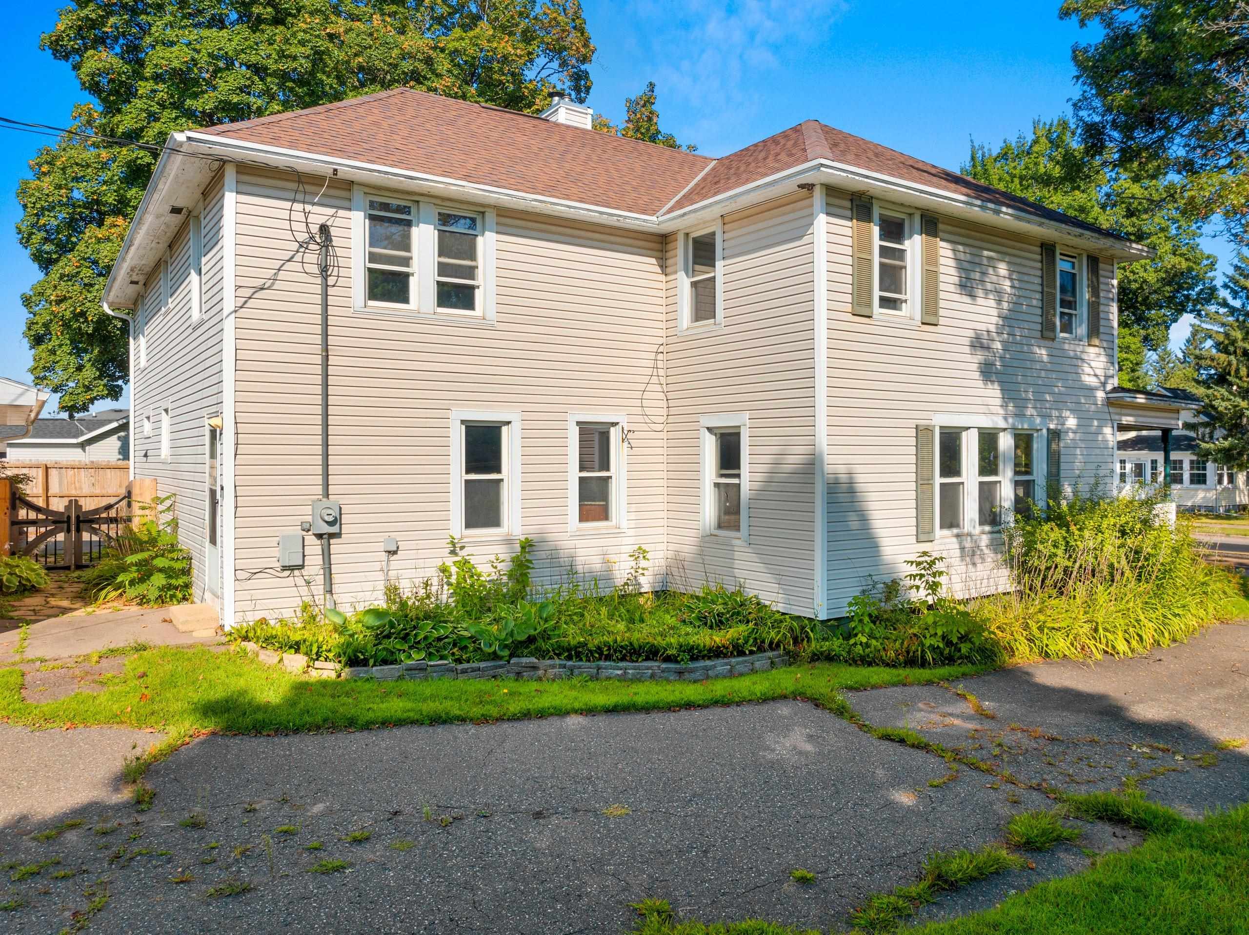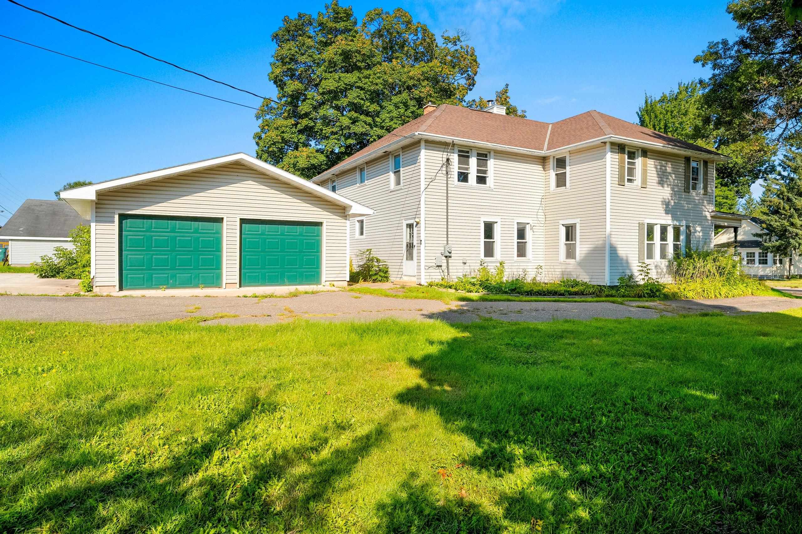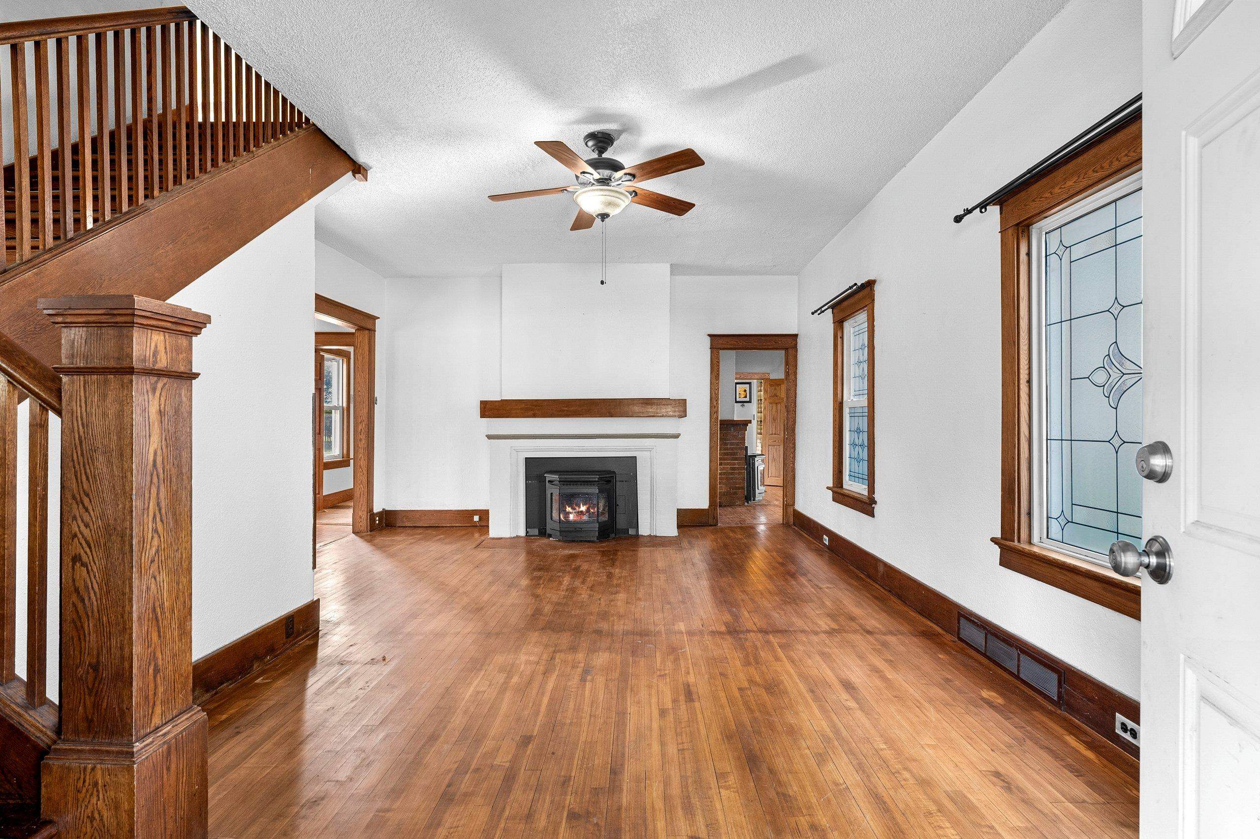 Conveniently located and move-in ready, this spacious home offers meaningful updates throughout. Improvements include refinished hardwood and slate tile floors, a remodeled kitchen, refreshed upper bath with tile walk-in shower, and two pellet stoves for added comfort. The main level flows easily for everyday living and entertaining, while the upper level features four generous bedrooms with walk-in closets. Enjoy a fenced yard with poured-concrete patio, plus a 2-car detached garage, extra parking pad, and a full dry basement ideal for storage and hobbies. With 3,300+ sq ft and an in-town location close to shopping, dining, lakes, and trails, this home delivers space, convenience, and functionality. Some photos virtually staged.