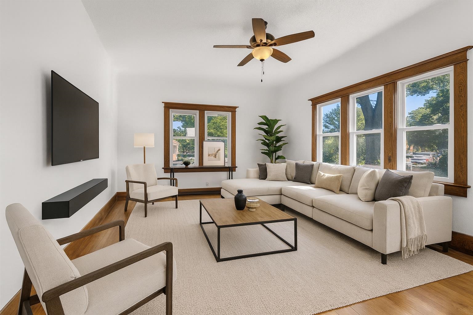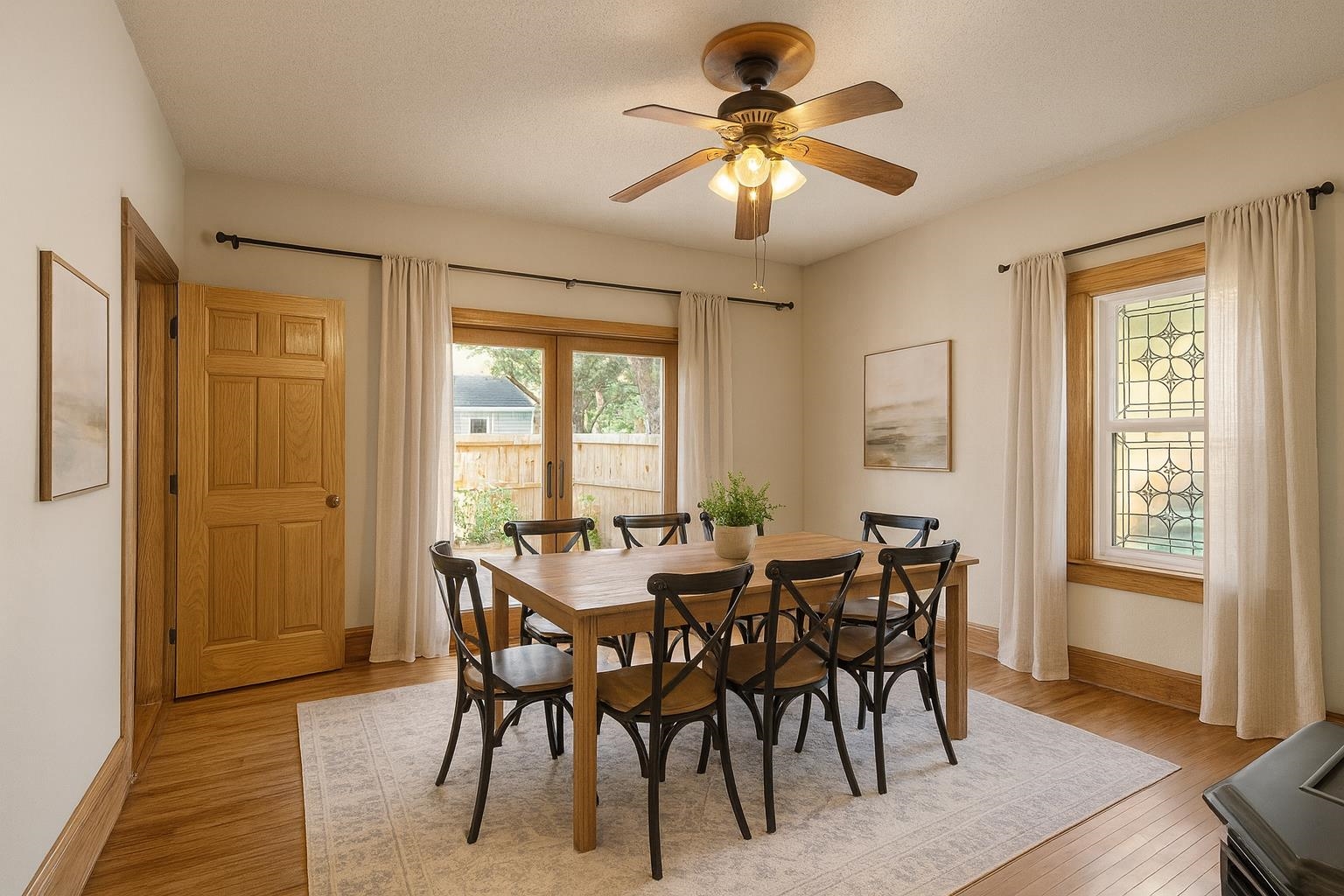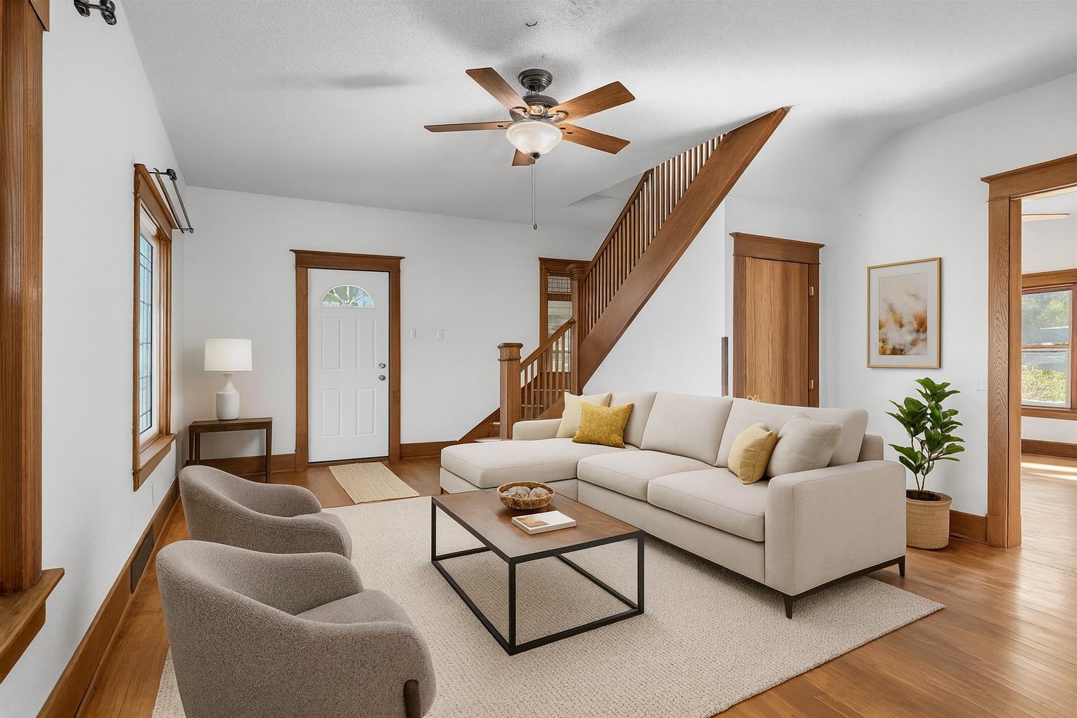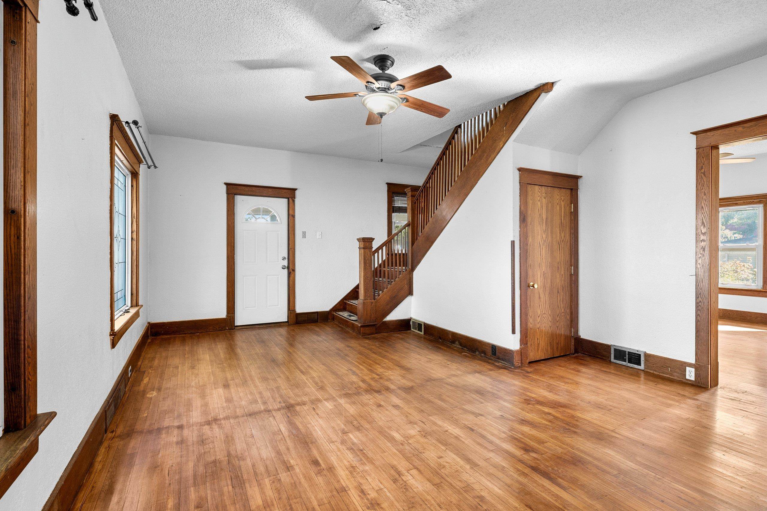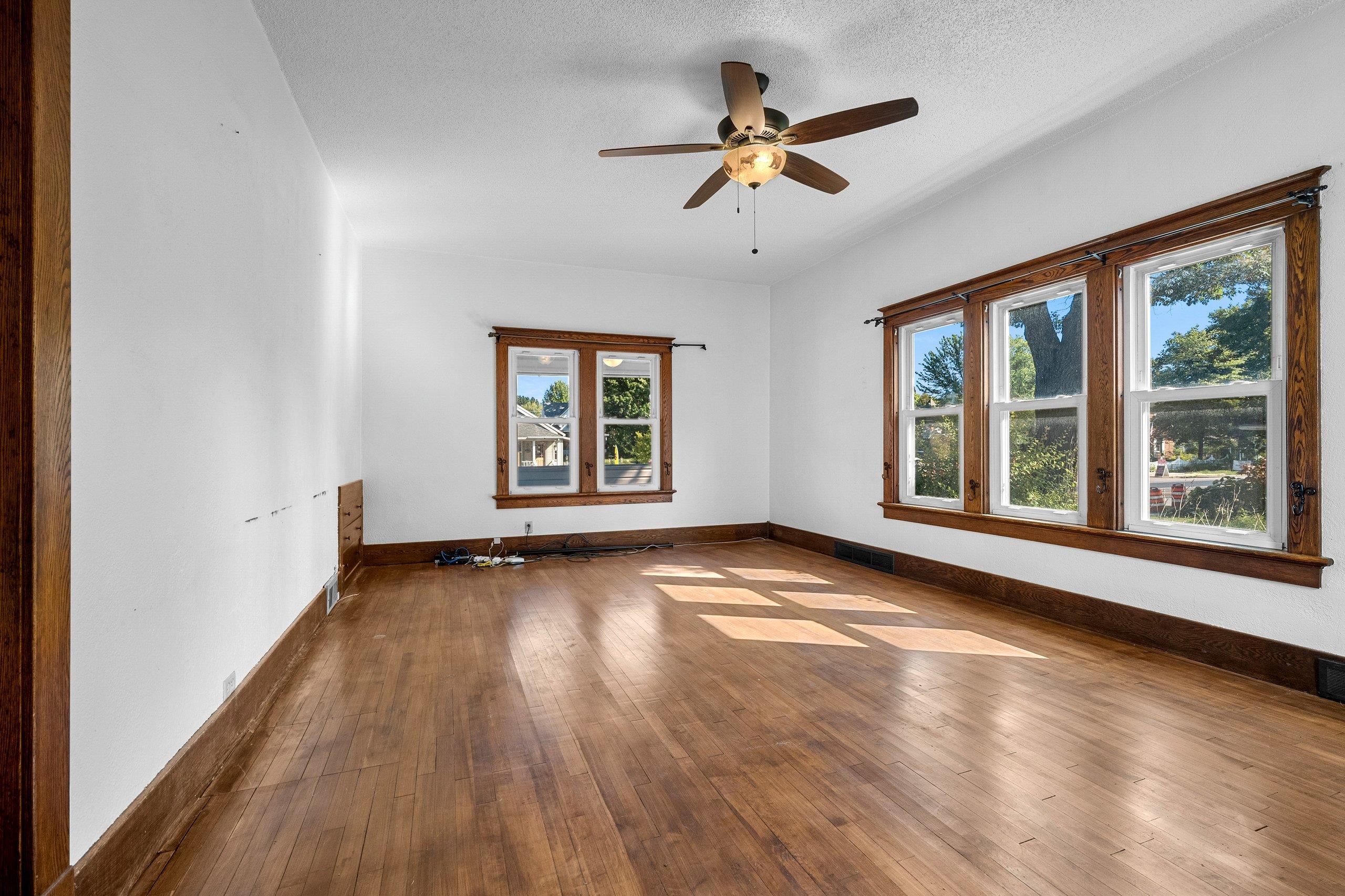 Conveniently located and move-in ready, this spacious home offers meaningful updates throughout. Improvements include refinished hardwood and slate tile floors, a remodeled kitchen, refreshed upper bath with tile walk-in shower, and two pellet stoves for added comfort. The main level flows easily for everyday living and entertaining, while the upper level features four generous bedrooms with walk-in closets. Enjoy a fenced yard with poured-concrete patio, plus a 2-car detached garage, extra parking pad, and a full dry basement ideal for storage and hobbies. With 3,300+ sq ft and an in-town location close to shopping, dining, lakes, and trails, this home delivers space, convenience, and functionality. Some photos virtually staged.
