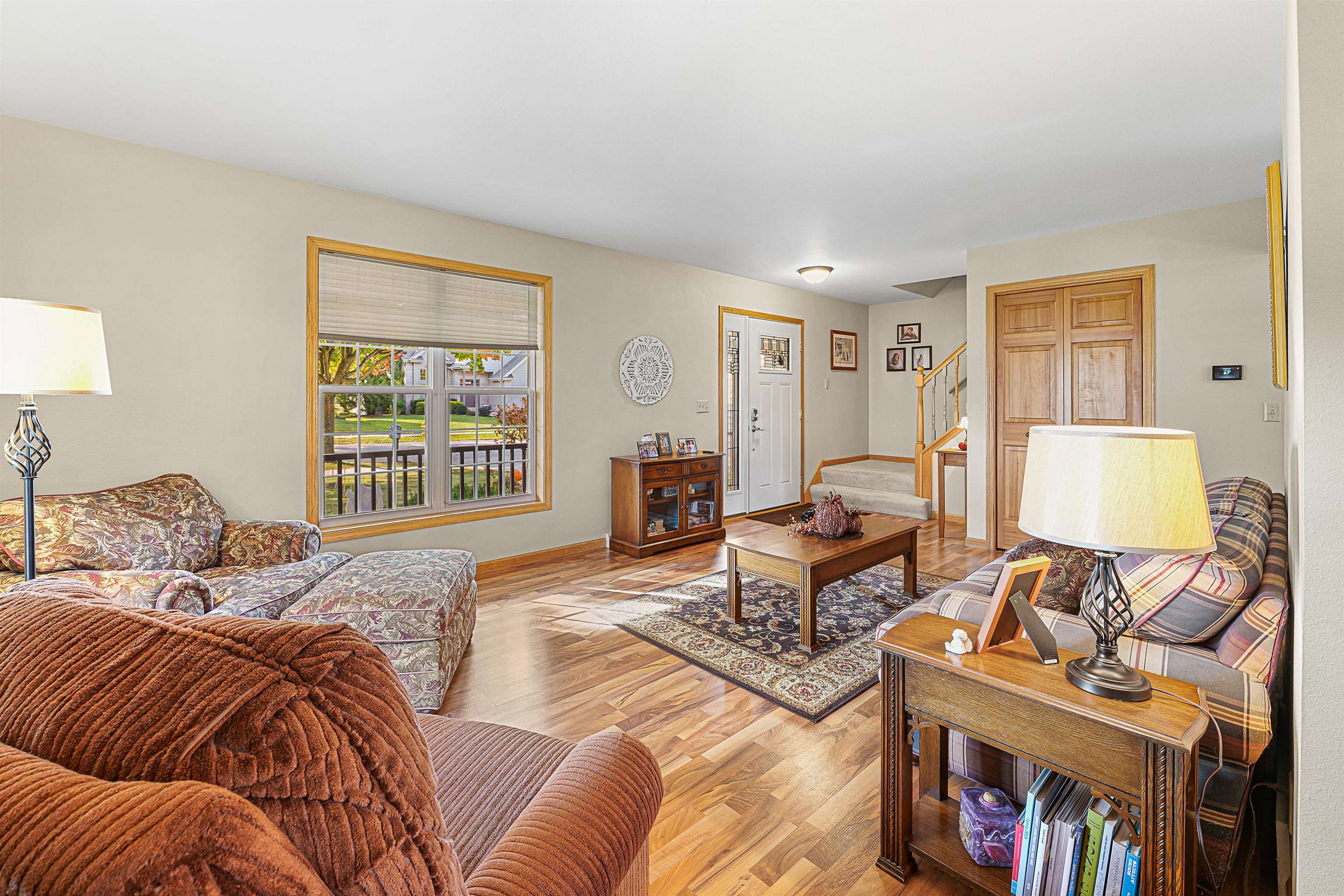 Beautifully maintained four-bedroom, two-and-a-half-bath home nestled in a desirable southeast neighborhood. Step inside to a warm and inviting living room with a charming wood-burning fireplace, perfect for cozy nights in. The kitchen offers plenty of room for cooking and entertaining. Enjoy peace of mind with a new furnace, central air, and water heater. The exterior is meticulously landscaped and complemented by a generous three-car garage, showcasing true pride of ownership inside and out. Seller to offer $5000 carpet allowance to close by Jan. 31st.