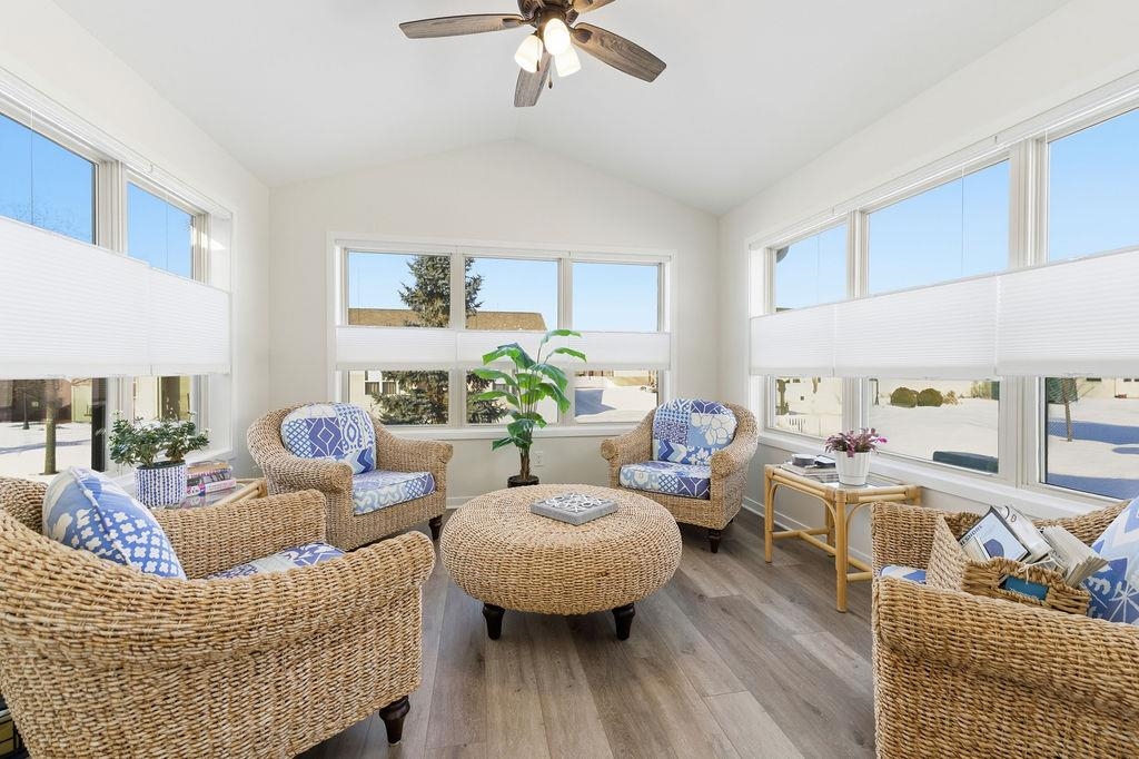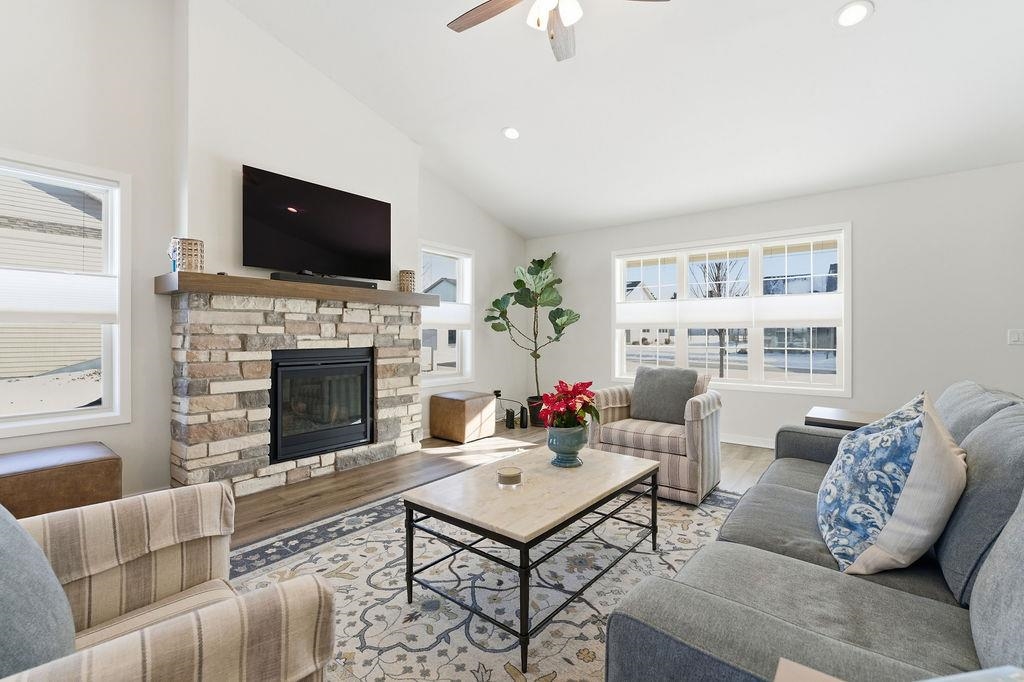 Easy living starts here! Zero-entry Condo blends style and convenience and a bright, open layout with thoughtful upgrades. Living room features a vaulted ceiling and stone fireplace, spacious eat-in kitchen with an island, quartz countertops and a full appliance package. Natural light pours into the 4 season room creating a cozy retreat. Main floor primary suite features a bath with tiled shower. 2nd bedroom and full bath on main level. Bonus back entry from garage along with the laundry room. In the lower level you'll find a spacious family room with wet bar and mini fridge, a full bath, third bedroom, and an exceptionally large, clean storage area. Low maintenance living without sacrificing space, the best of both worlds! Seller prefers a closing date of early May, after 5/4/26.