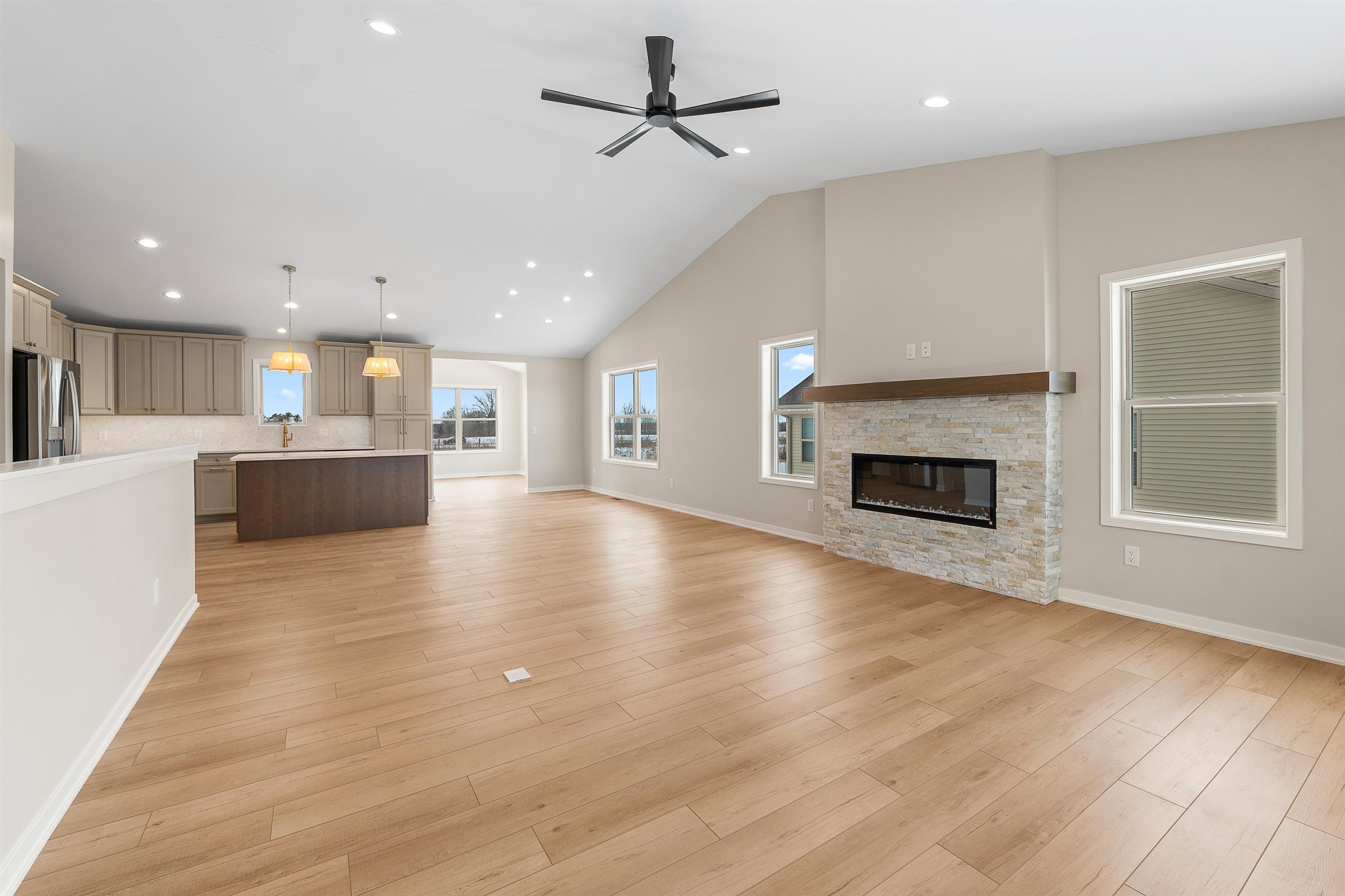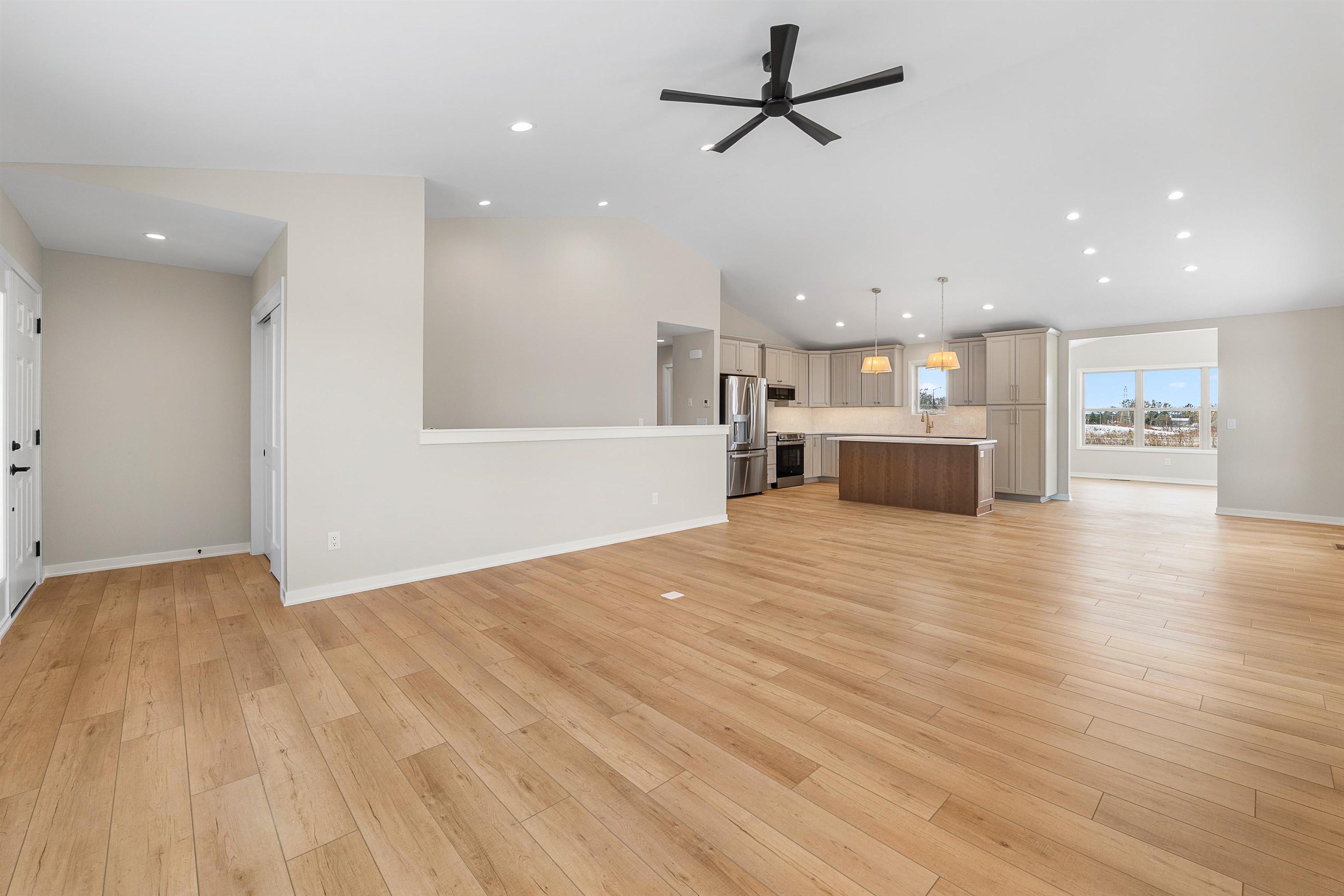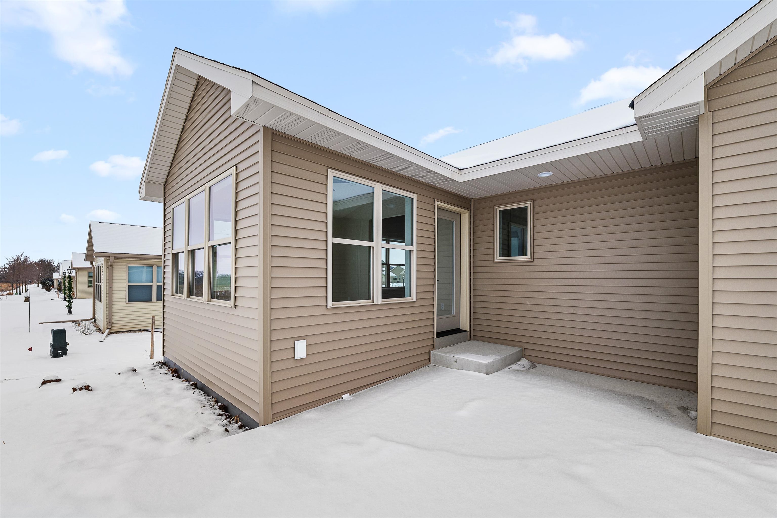 The pictures are not specific to this property. Easy Living Awaits at Eastwind – New Construction with Room to Grow. Welcome to your next chapter in this beautifully crafted new-build condo, designed for comfort, convenience, and low-maintenance living. Nestled in the sought-after Eastwind community, this home offers upscale touches throughout – from the bright, open kitchen with island to the stylish white trim and inviting sunroom. Featuring 2 bedrooms and 2 full bathrooms on the main level, this home is built with ease in mind, including a stepless garage entry and main-floor laundry. Fully accessible and adaptable for future needs, it’s a home that grows with you.Thinking ahead? The expansive lower level is ready to be finished, with the potential for a third bedroom, additional bath.