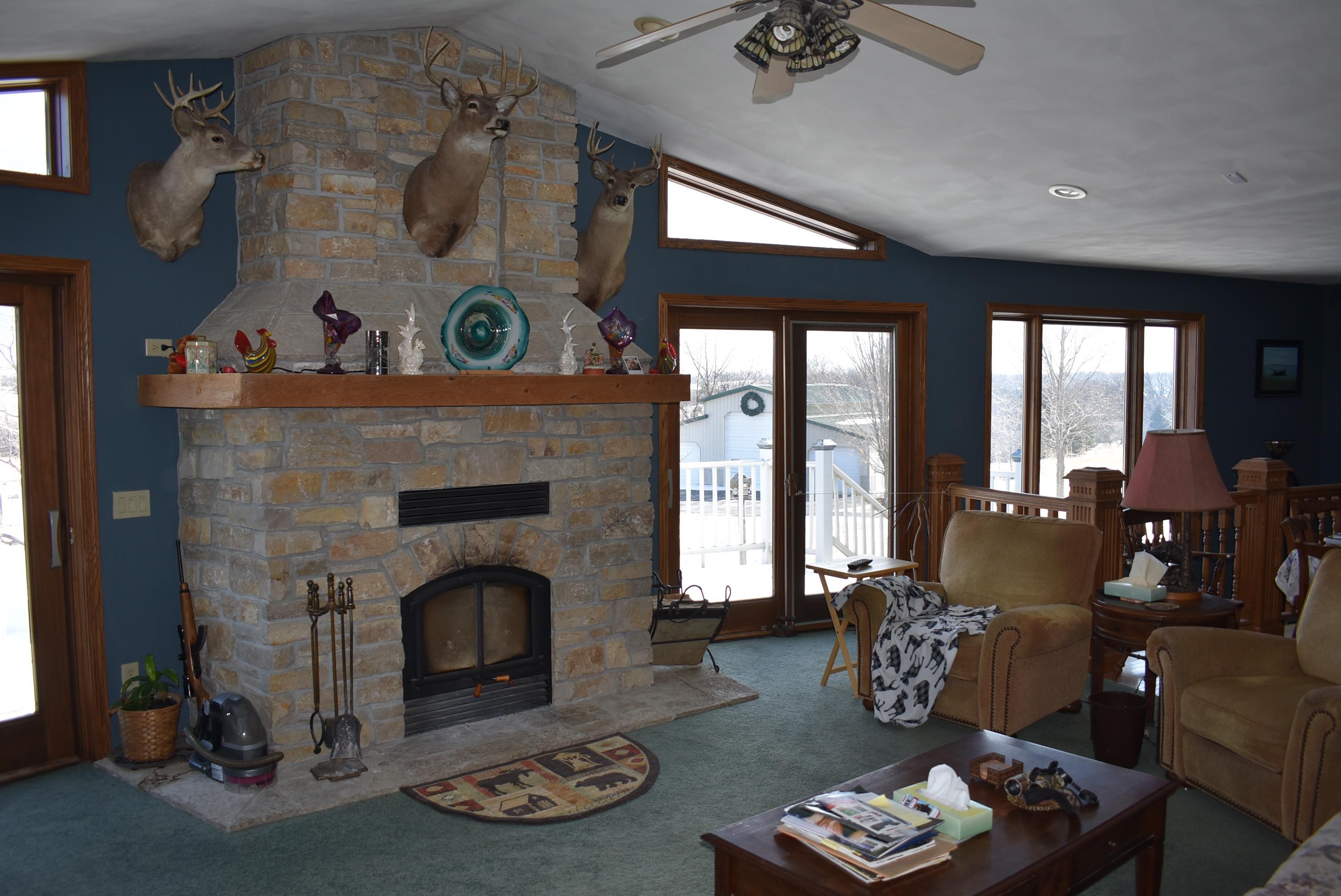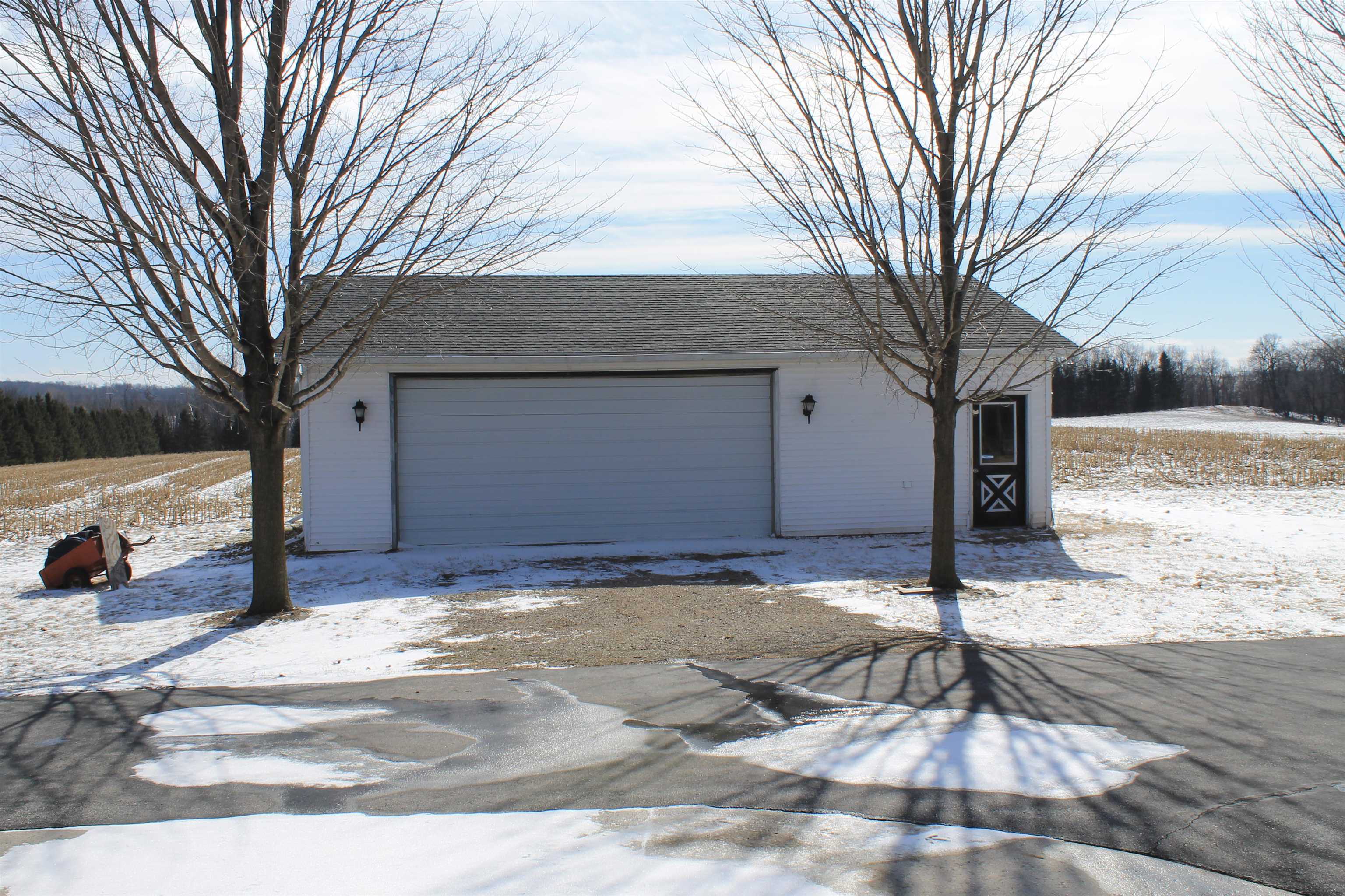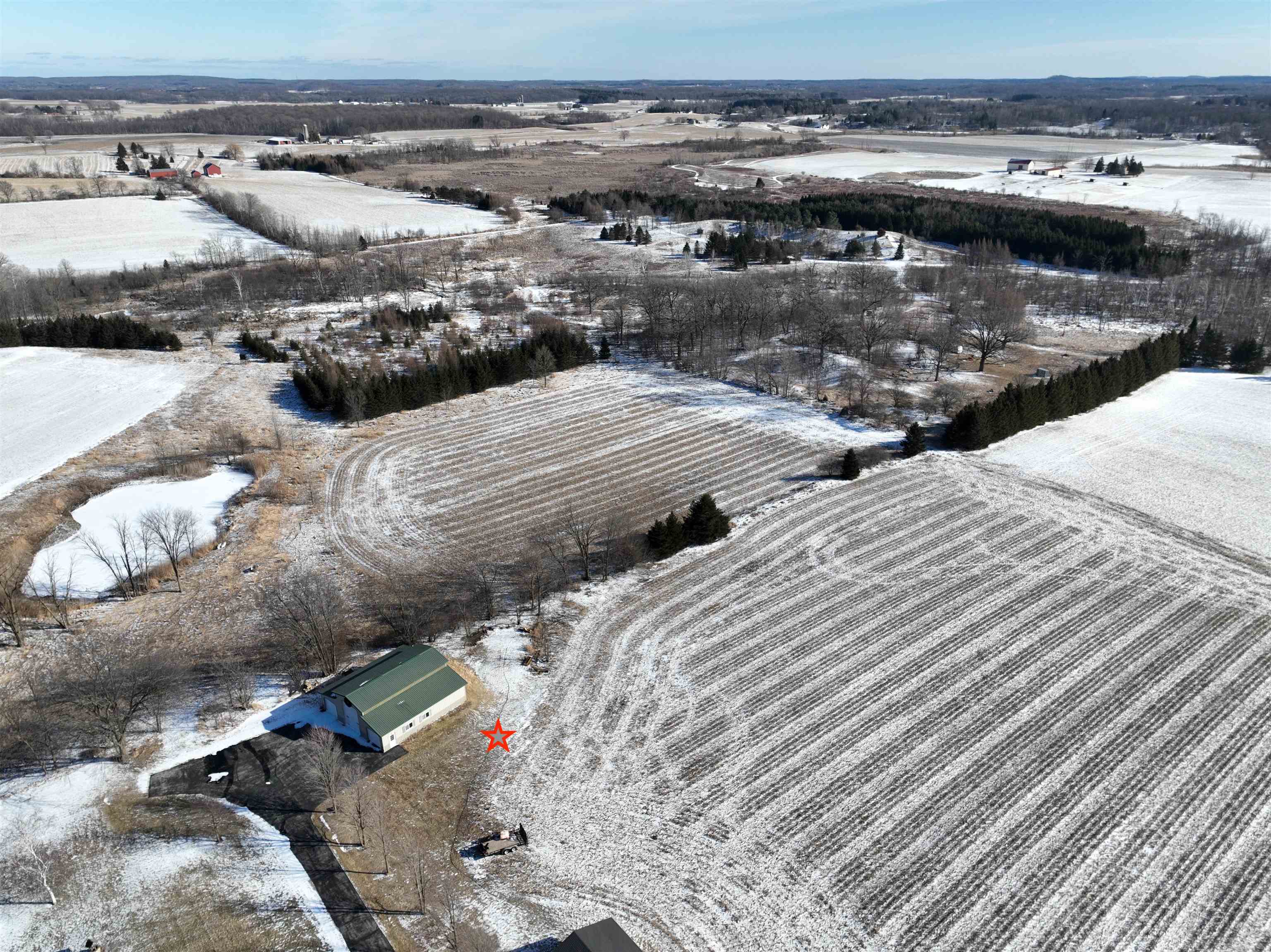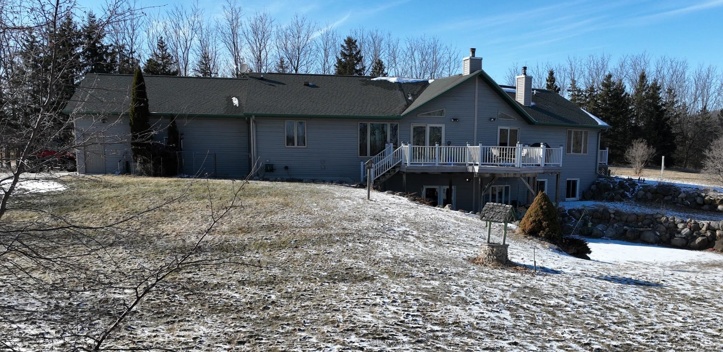 165.31-acre sprawling property less than 20 minutes from Fond du Lac. The Mullet River winds along the eastern border of this outdoor paradise, creating exceptional habitat and natural travel corridors. Approx. 60 acres of tillable ground generates income, with standing corn and beans intentionally left as a premier late-season food source. Large numbers of deer and turkey are seen daily, and it’s not uncommon to encounter 50+ deer on a walk of the land. Four ponds attract ducks and geese while enhancing year-round activity. The 3BR, 3.5BA 3,470 sq ft ranch sits over ½ mile off the main road, offering total seclusion, walk-out basement, two wood fireplaces, attached insulated and heated garage with summer kitchen featuring hot and cold running water, 3 outbuildings, and panoramic views!