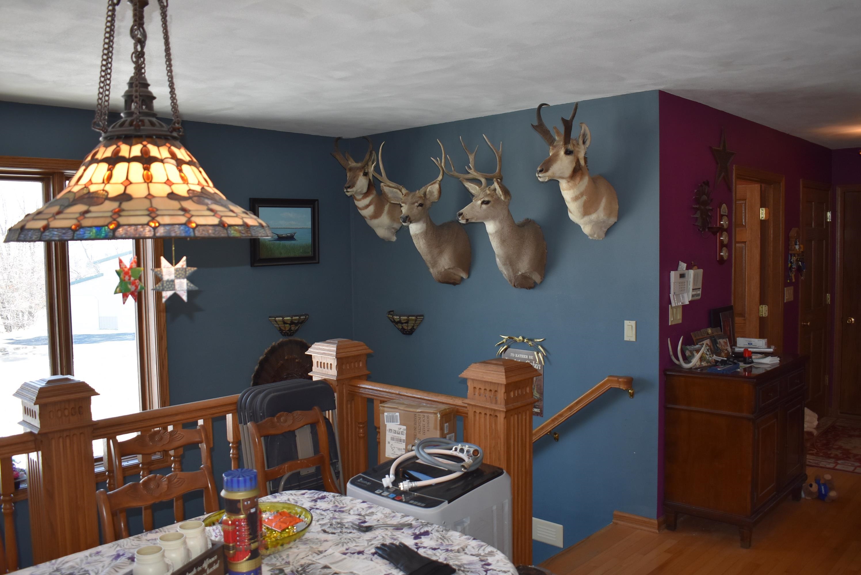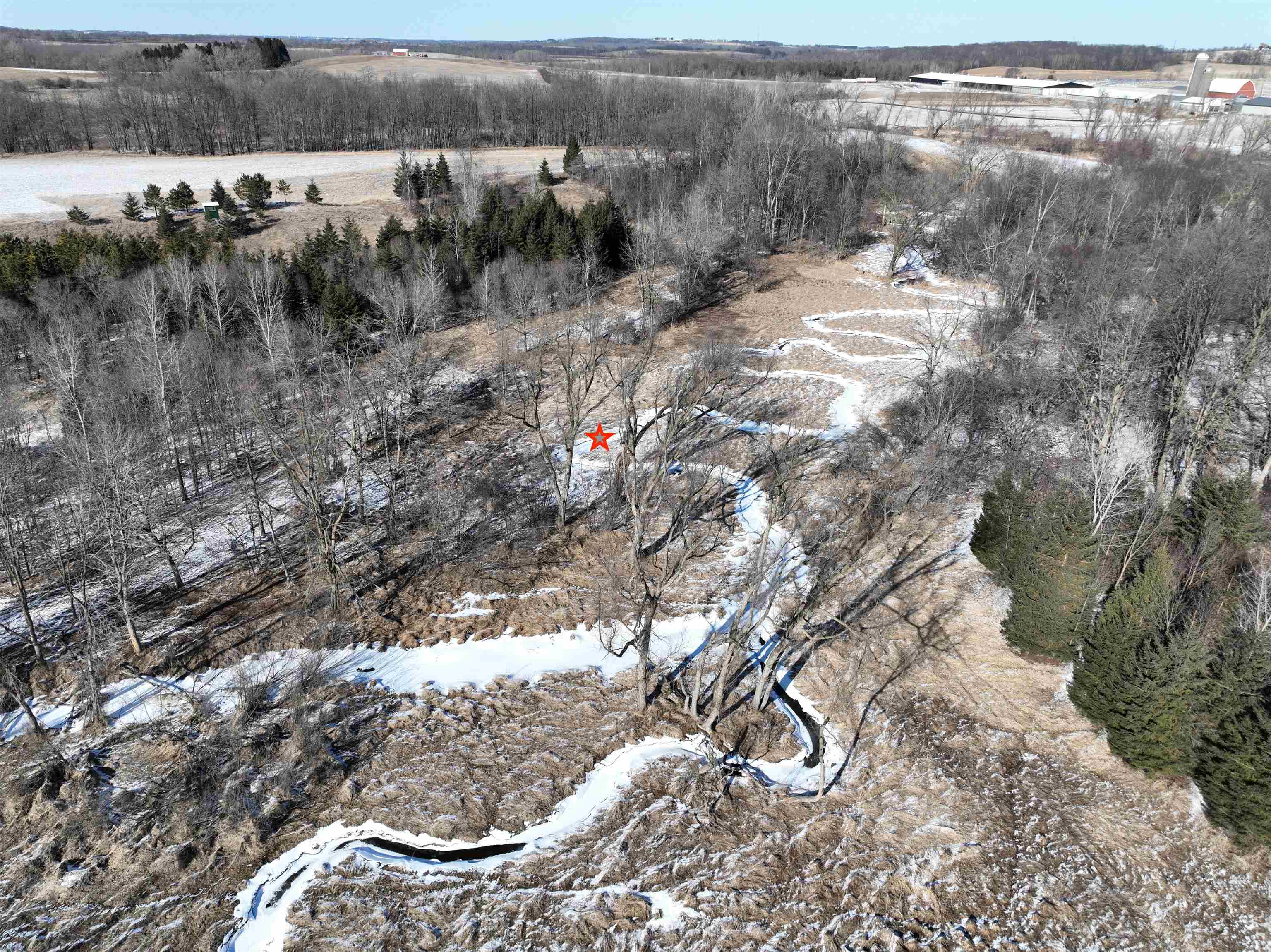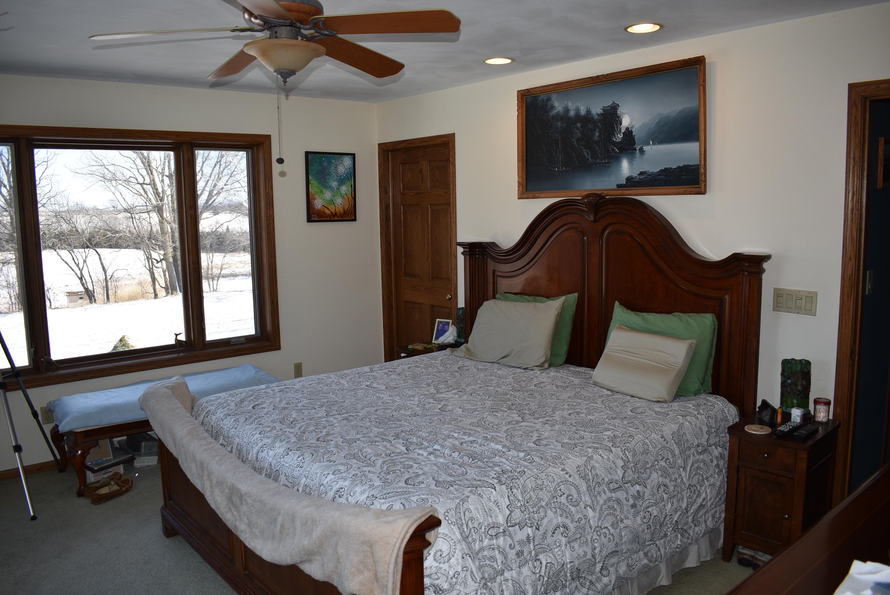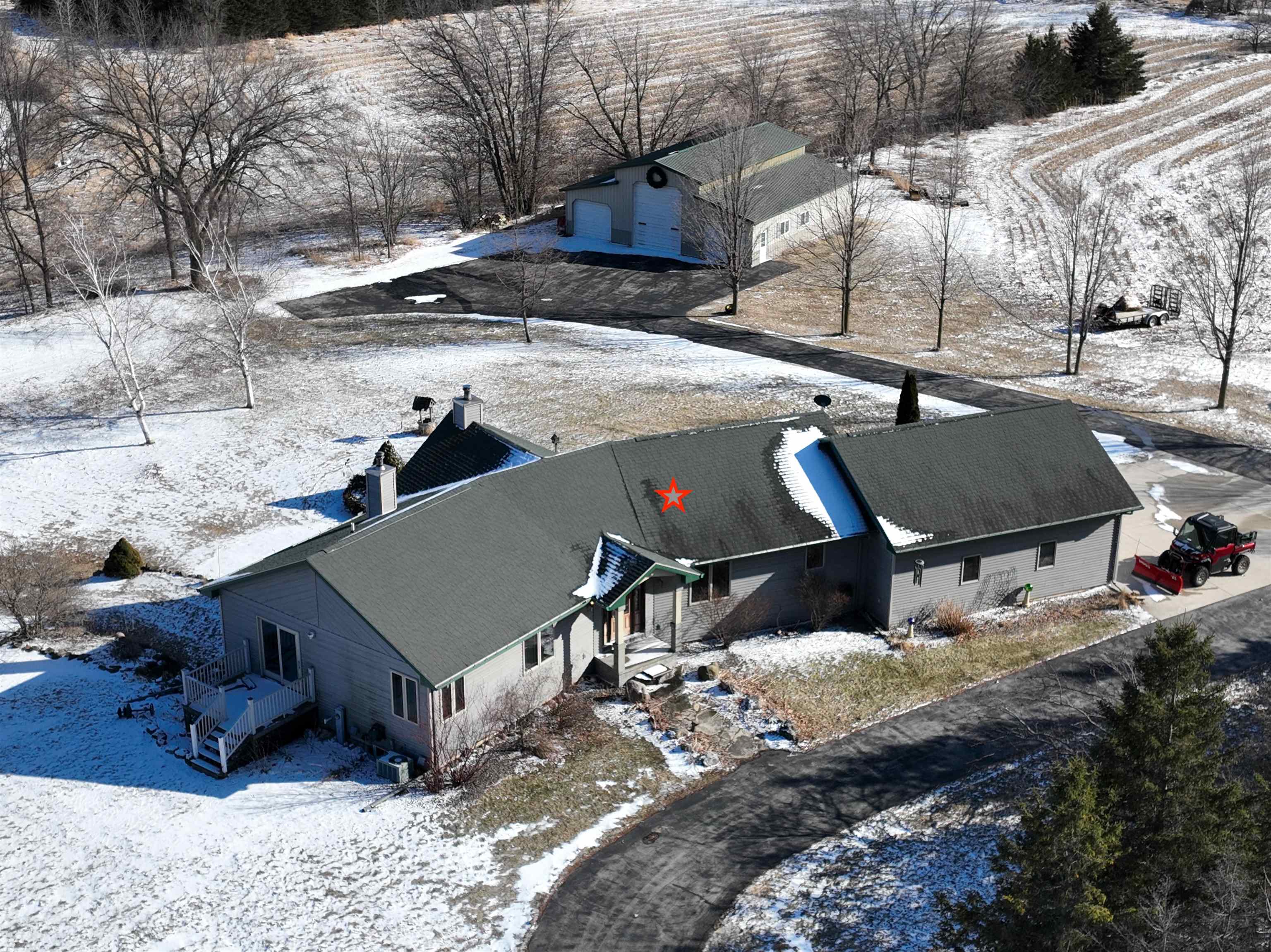 165.31-acre sprawling property less than 20 minutes from Fond du Lac. The Mullet River winds along the eastern border of this outdoor paradise, creating exceptional habitat and natural travel corridors. Approx. 60 acres of tillable ground generates income, with standing corn and beans intentionally left as a premier late-season food source. Large numbers of deer and turkey are seen daily, and it’s not uncommon to encounter 50+ deer on a walk of the land. Four ponds attract ducks and geese while enhancing year-round activity. The 3BR, 3.5BA 3,470 sq ft ranch sits over ½ mile off the main road, offering total seclusion, walk-out basement, two wood fireplaces, attached insulated and heated garage with summer kitchen featuring hot and cold running water, 3 outbuildings, and panoramic views!