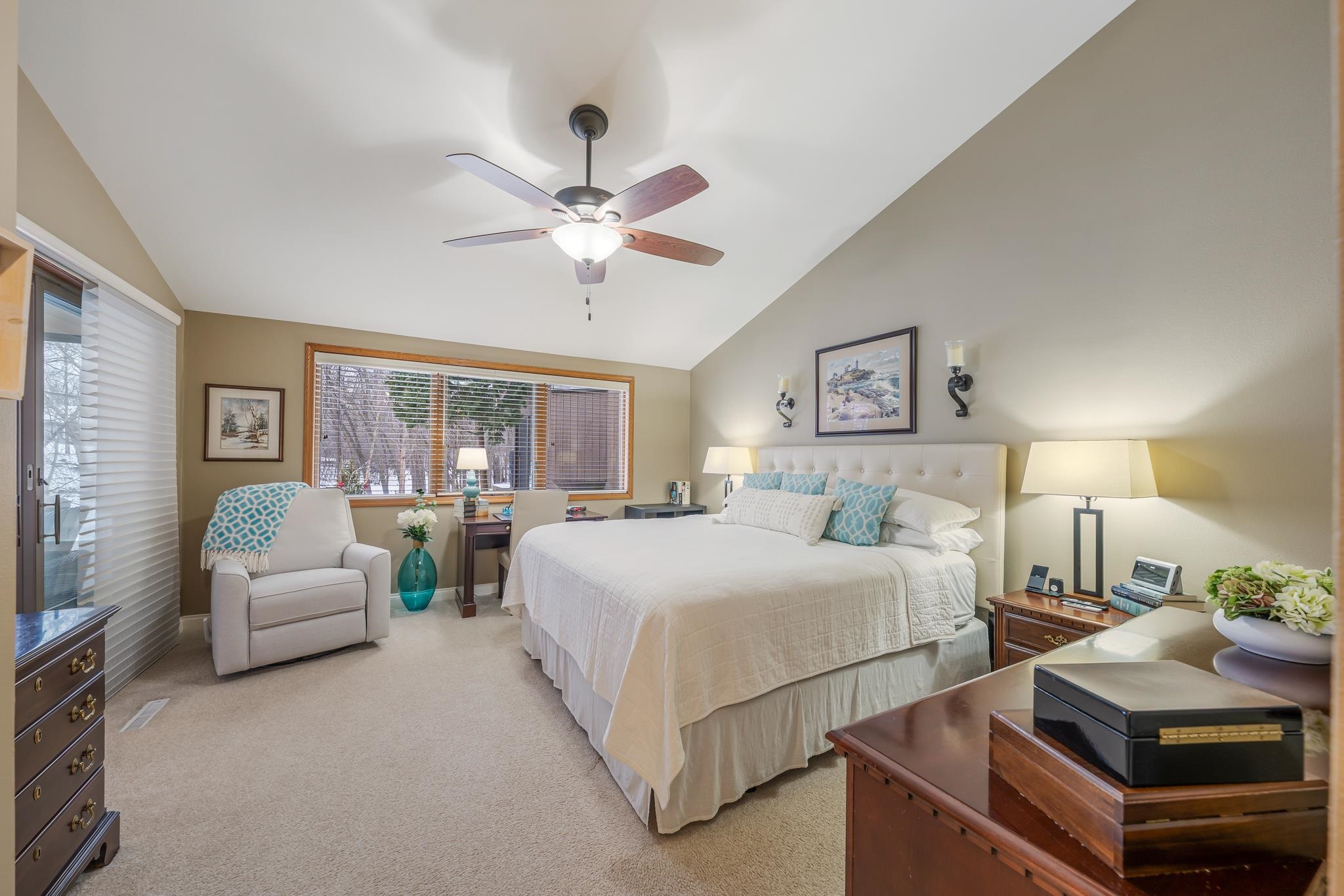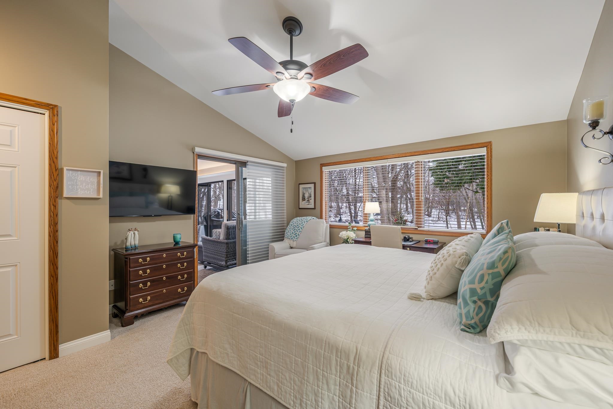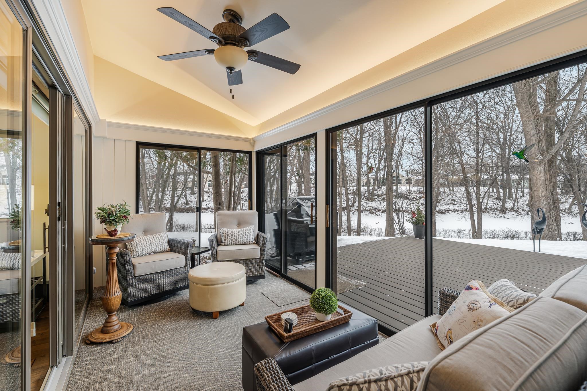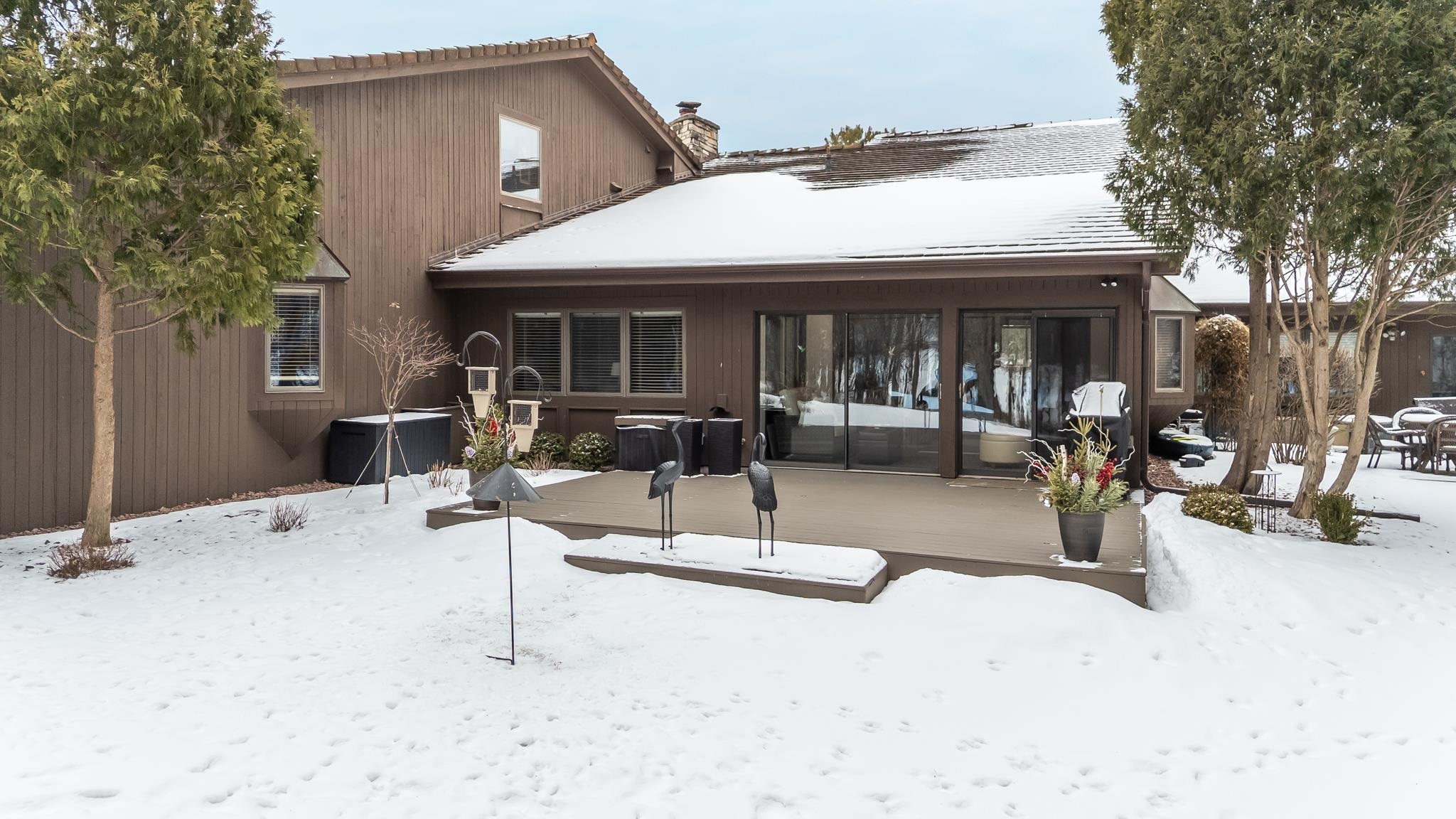 Luxury-designed condo features high-end details throughout. 3-bedroom, 3-bath home is designed for comfort and relaxation in every season. The room offers a stone floor to ceiling gas FP. All the amenities needed to create meals with ease are in this kitchen. Spacious dining area has a convenient serving bar when entertaining. Vaulted ceiling and wall of windows in the living room gives the bright, open feel. The primary suite has a bubble massage tub and double closets. 2nd main level BR has a bath with glass shower. Upstairs is a 3rd BR and bath along with the huge loft perfect for guests! Storage needs are met in a large, walk-in closet. Even the garage has added storage. Unique to this home is the wooded back yard, creek, deer and sandhill crane visitors. Offers presented Mar 15