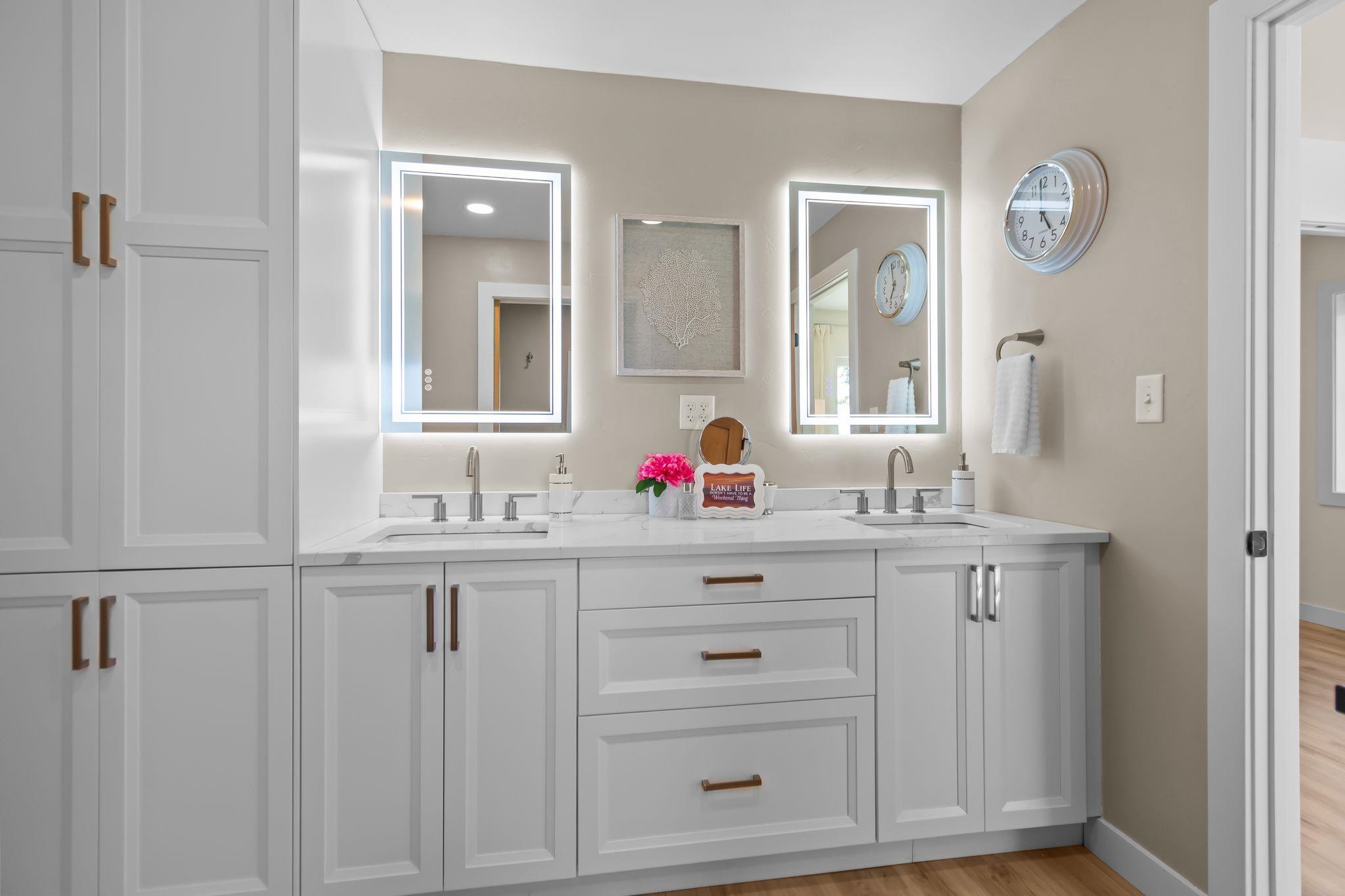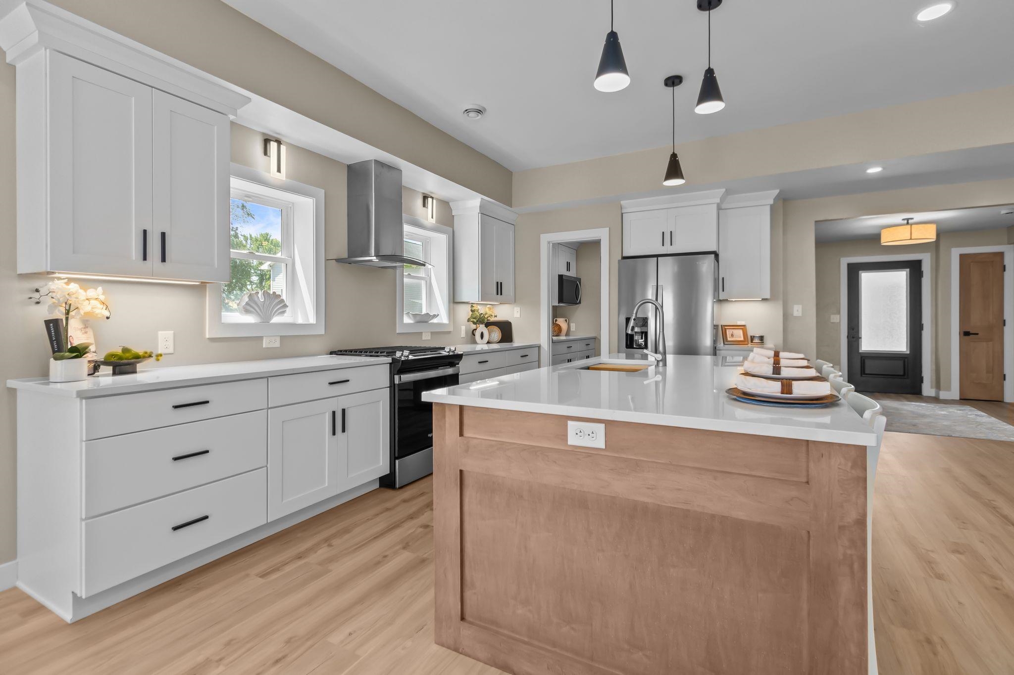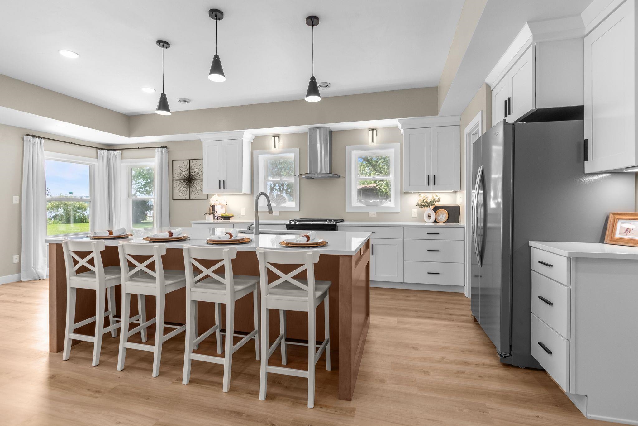 Turnkey lakefront home with incredible Airbnb potential! Designed as a forever retreat, not a flip, this property blends quality updates with short-term rental appeal. Walls were opened and ceilings raised to maximize sweeping water views, while the open kitchen with island, walk-in pantry, and stainless appliances makes hosting a breeze. The spacious primary suite can function as a private lock-off with its own closet, yet still provides access to the spa-like bath and office—ideal for owner occupant who wants Airbnb potential. With 3 bedrooms, multiple baths, and first-floor laundry, the layout suits groups or extended stays. The oversized 38x23 garage stores kayaks, paddleboards, and more, & w/direct access to the lake & river system, vacationers will love the less recreation.