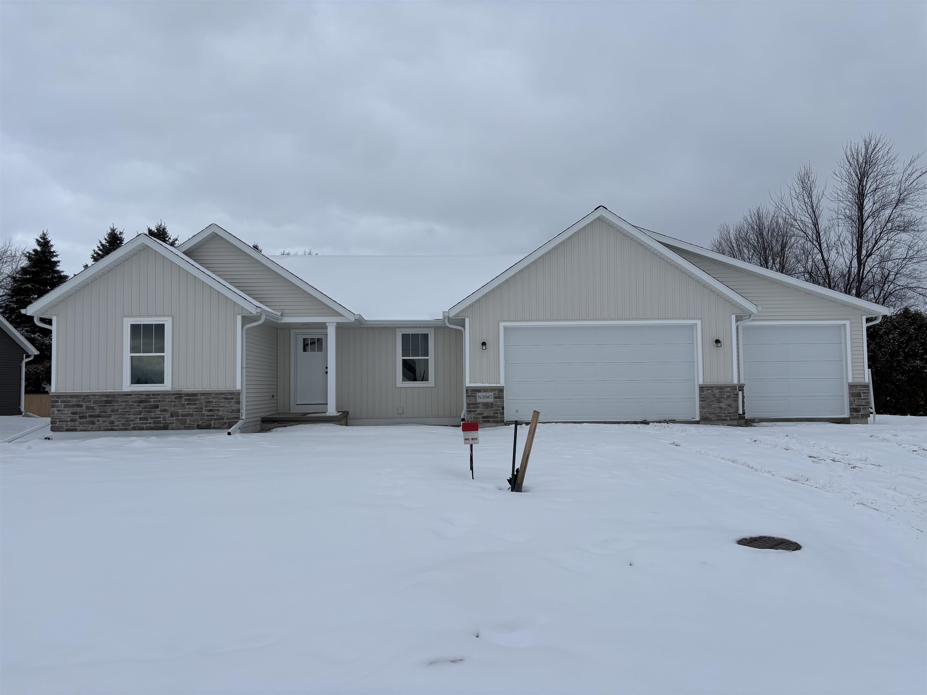 New 3 bedroom ranch home built by Schmidt Bros Custom Homes, Inc. Granite countertops throughout. Kitchen features a large island, a walk in pantry and black stainless appliances. The primary suite includes a walk in closet, a wall closet and a double vanity. Great room, dining and kitchen have a cathedral ceiling. A gas fireplace is in the great room. The mudroom includes a drop center and a bench and hooks. Basement is stubbed for a future bath and has an egress window. Active dampness and radon control system. Driveway, walkway to front stoop, patio, sidewalk, curb, blacktop street included. Estimated completion date is Feb 24, 2026.
