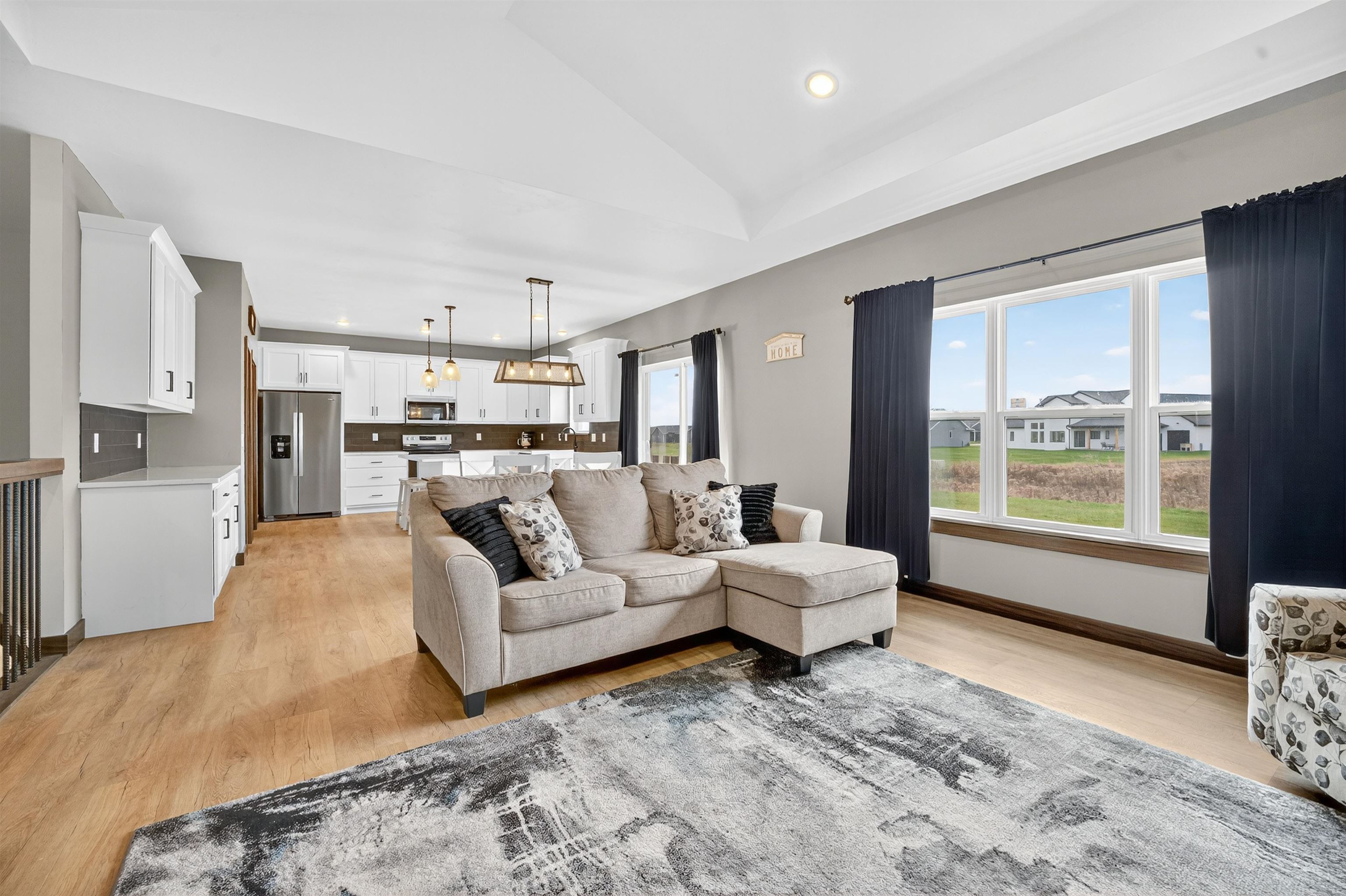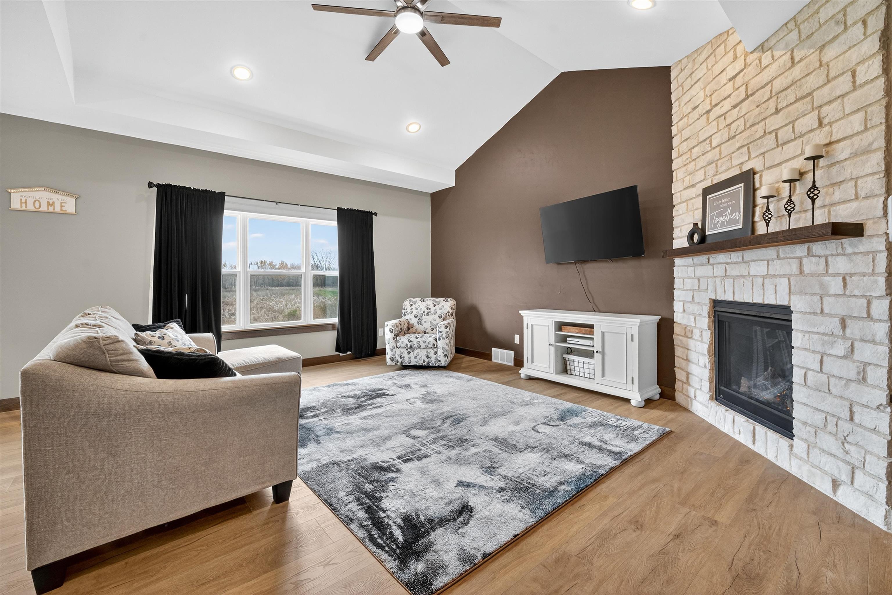 Like new 2 year old ranch home in a beautiful subdivision! Main floor welcomes open concept floorplan. Step inside to a spacious entry way, and a living room with cathedral ceilings and gas fireplace. Kitchen boasts large center island, quartz countertops, custom cabinets, and walk-in pantry. Primary bedroom suite with walk-in closet and full bath with granite countertops. 2 more bedrooms, full bath, and laundry complete the main floor. Family room in LL with unfinished ceilings has just been completed for the new owner! You’ll also find two egress windows for a potential fourth bedroom and stubbing for a future bath. 3 car garage and nearly half acre lot complete this immaculate home!