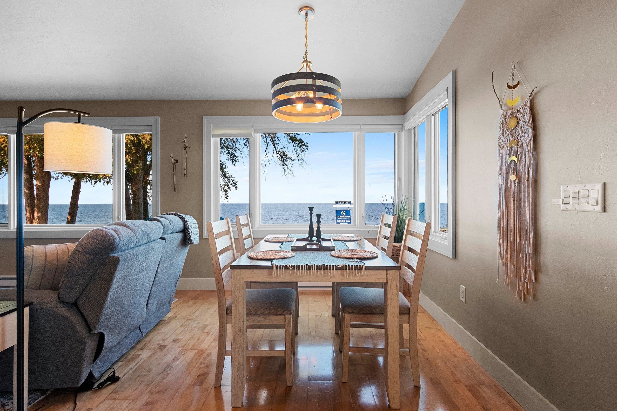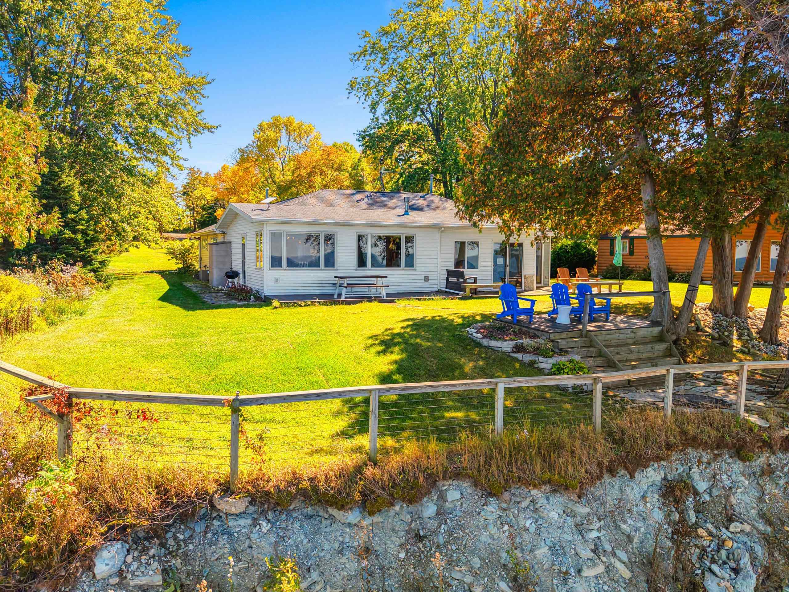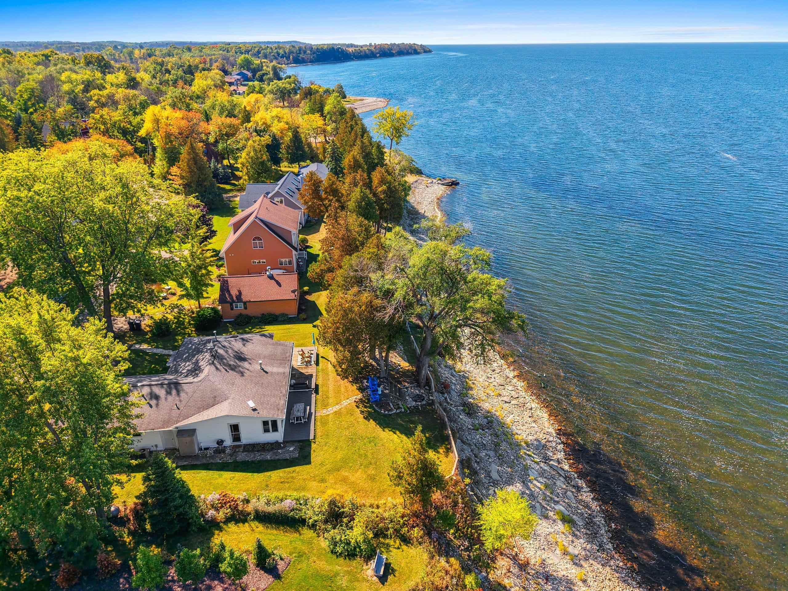 Waterfront summer cottage/condo retreat on the Bay! Completely renovated with quality craftsmanship in 2007 under a prior owner, this 2BR/1.5BA ranch-style condo blends charm, views, and quality. Hardwood floors, Pella windows/doors, custom cabinetry, built-ins, and stone gas fireplace. Open-concept living features cathedral ceiling, granite island, and stainless appliances. New washer/dryer. Propane forced air + A/C. Enjoy sunsets from inside or your Trex deck, evenings by the firepit, and 445’ of shared waterfront. Community amenities include pool, basketball courts, & green space. With low $1,500 HOA dues and income potential, this is a perfect second home or vacation rental. Pride of ownership!