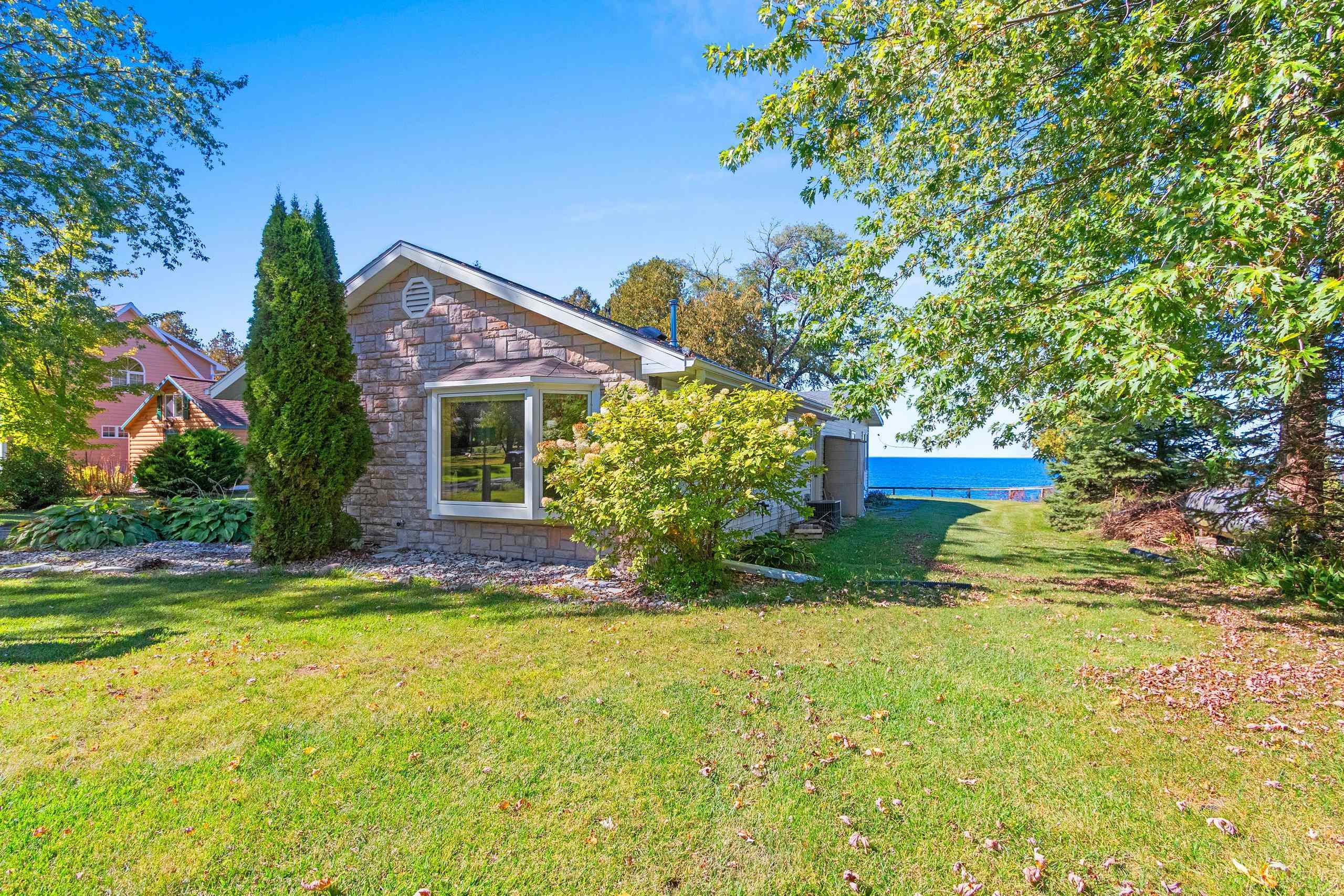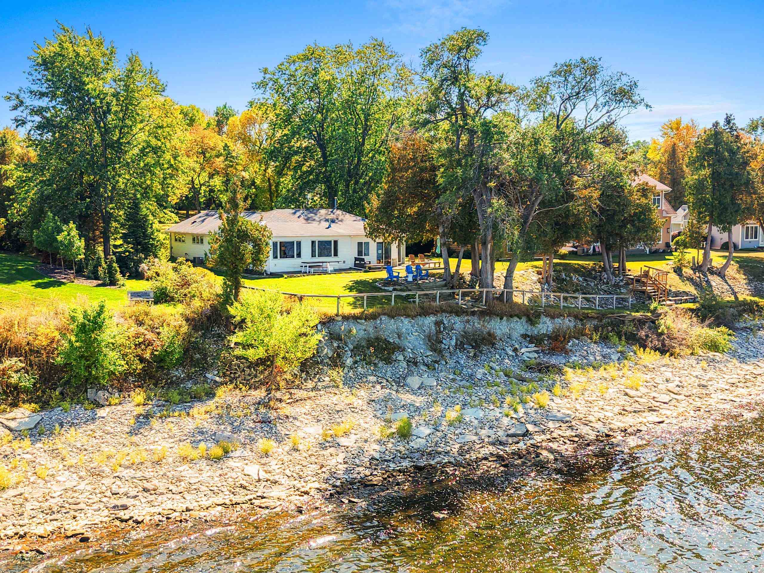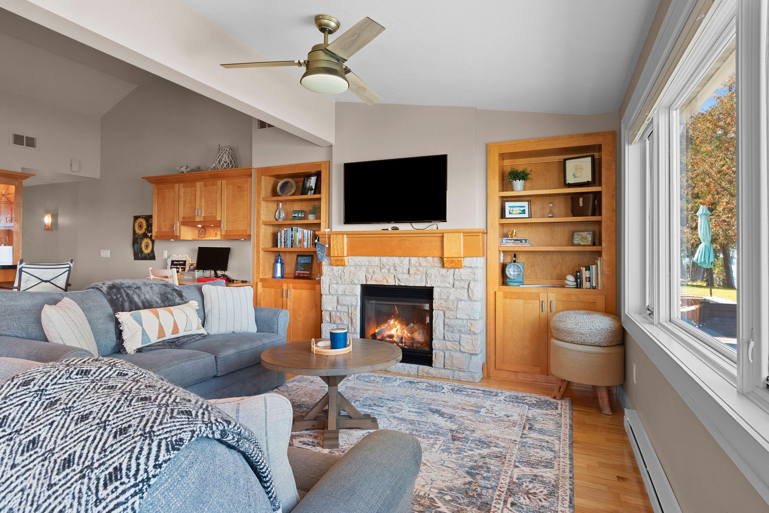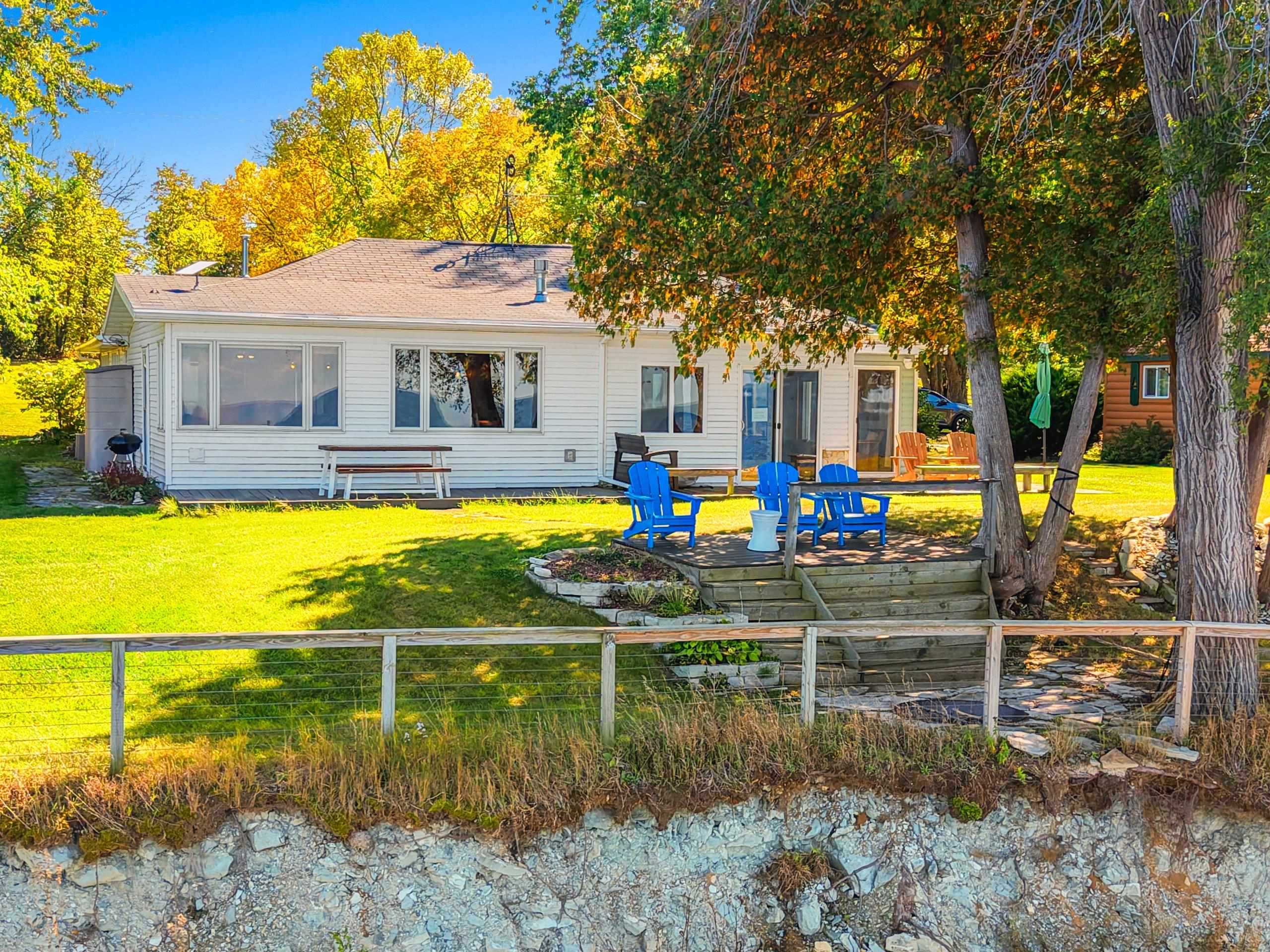 Waterfront summer cottage/condo retreat on the Bay! Completely renovated with quality craftsmanship in 2007 under a prior owner, this 2BR/1.5BA ranch-style condo blends charm, views, and quality. Hardwood floors, Pella windows/doors, custom cabinetry, built-ins, and stone gas fireplace. Open-concept living features cathedral ceiling, granite island, and stainless appliances. New washer/dryer. Propane forced air + A/C. Enjoy sunsets from inside or your Trex deck, evenings by the firepit, and 445’ of shared waterfront. Community amenities include pool, basketball courts, & green space. With low $1,500 HOA dues and income potential, this is a perfect get away or vacation rental. Pride of ownership!