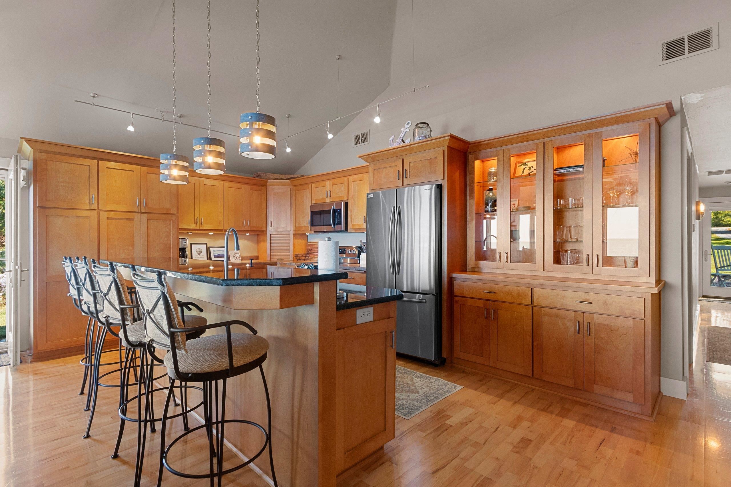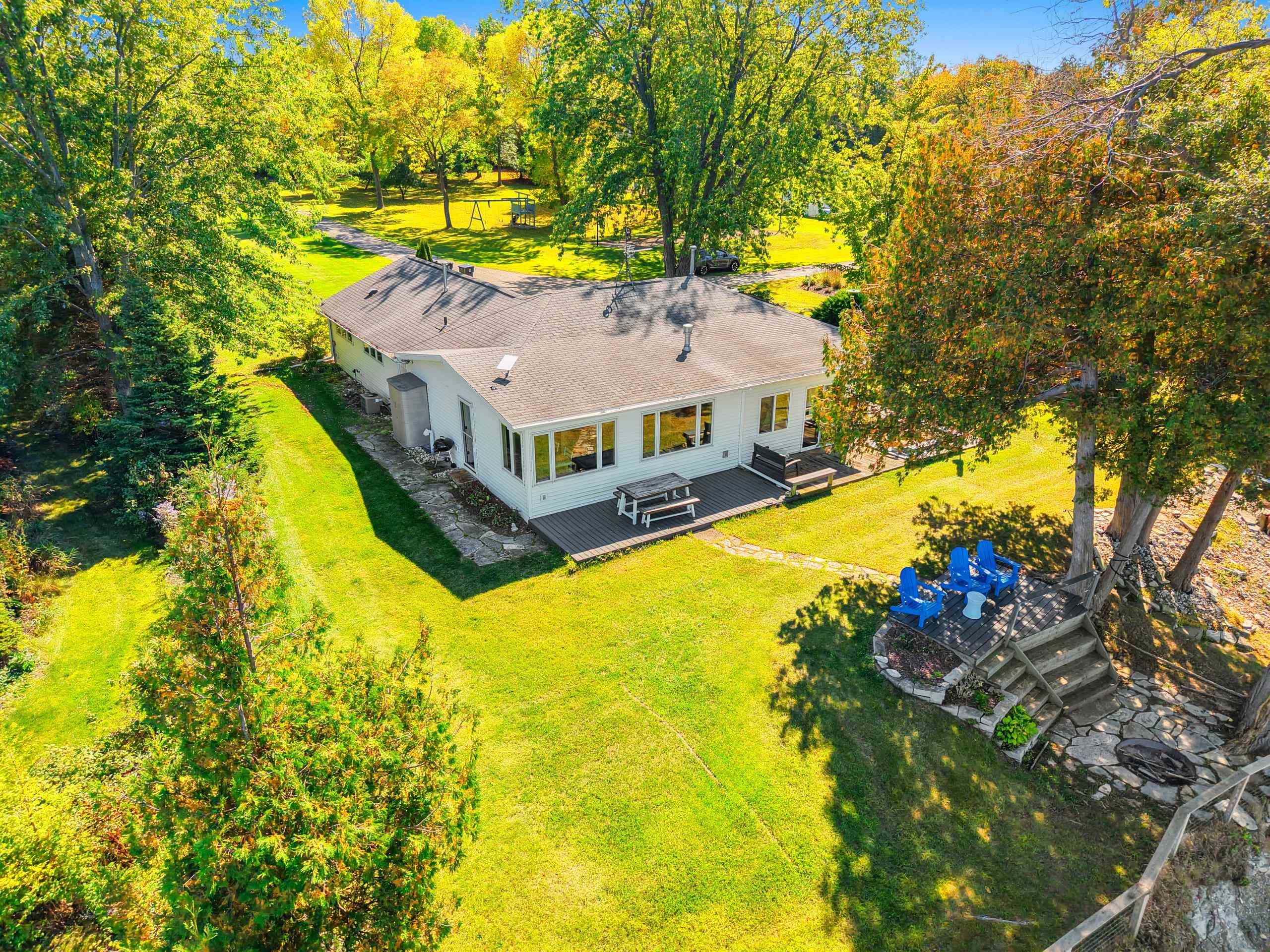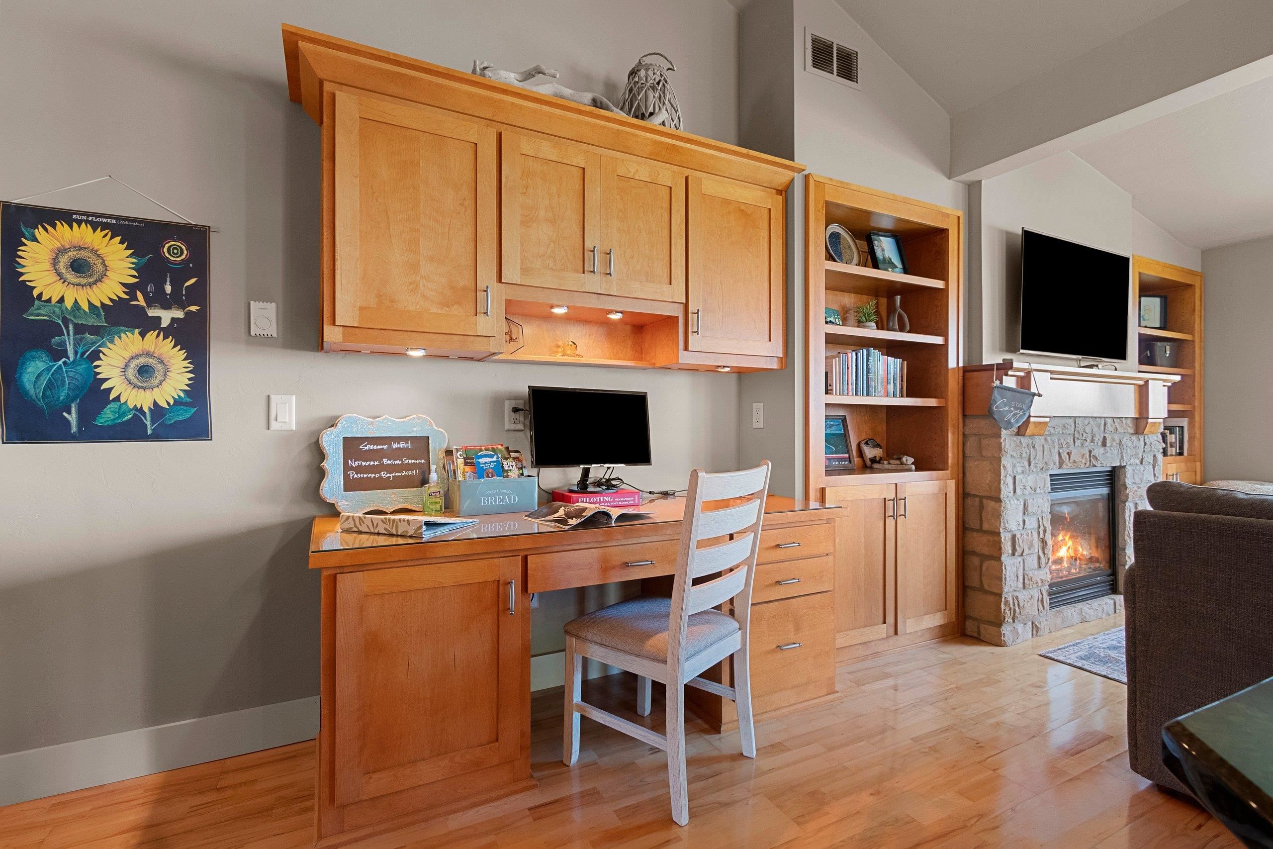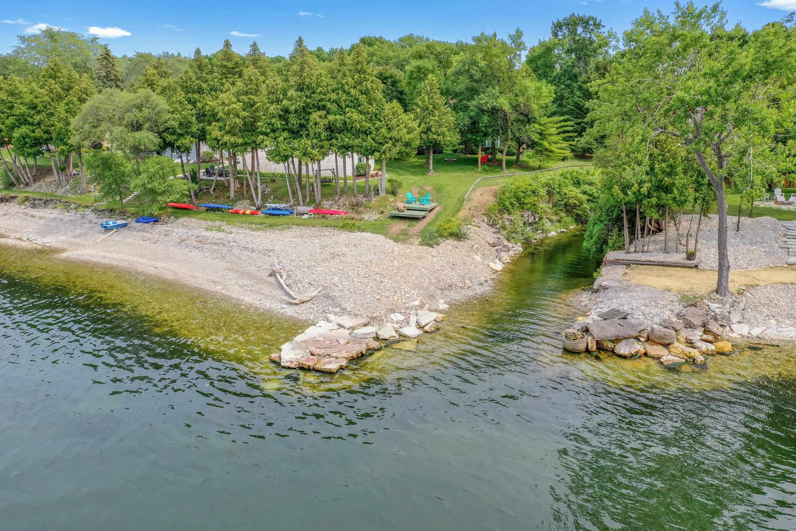 Waterfront summer cottage/condo retreat on the Bay! Completely renovated with quality craftsmanship in 2007 under a prior owner, this 2BR/1.5BA ranch-style condo blends charm, views, and quality. Hardwood floors, Pella windows/doors, custom cabinetry, built-ins, and stone gas fireplace. Open-concept living features cathedral ceiling, granite island, and stainless appliances. New washer/dryer. Propane forced air + A/C. Enjoy sunsets from inside or your Trex deck, evenings by the firepit, and 445’ of shared waterfront. Community amenities include pool, basketball courts, & green space. With low $1,500 HOA dues and income potential, this is a perfect get away or vacation rental. Pride of ownership!
