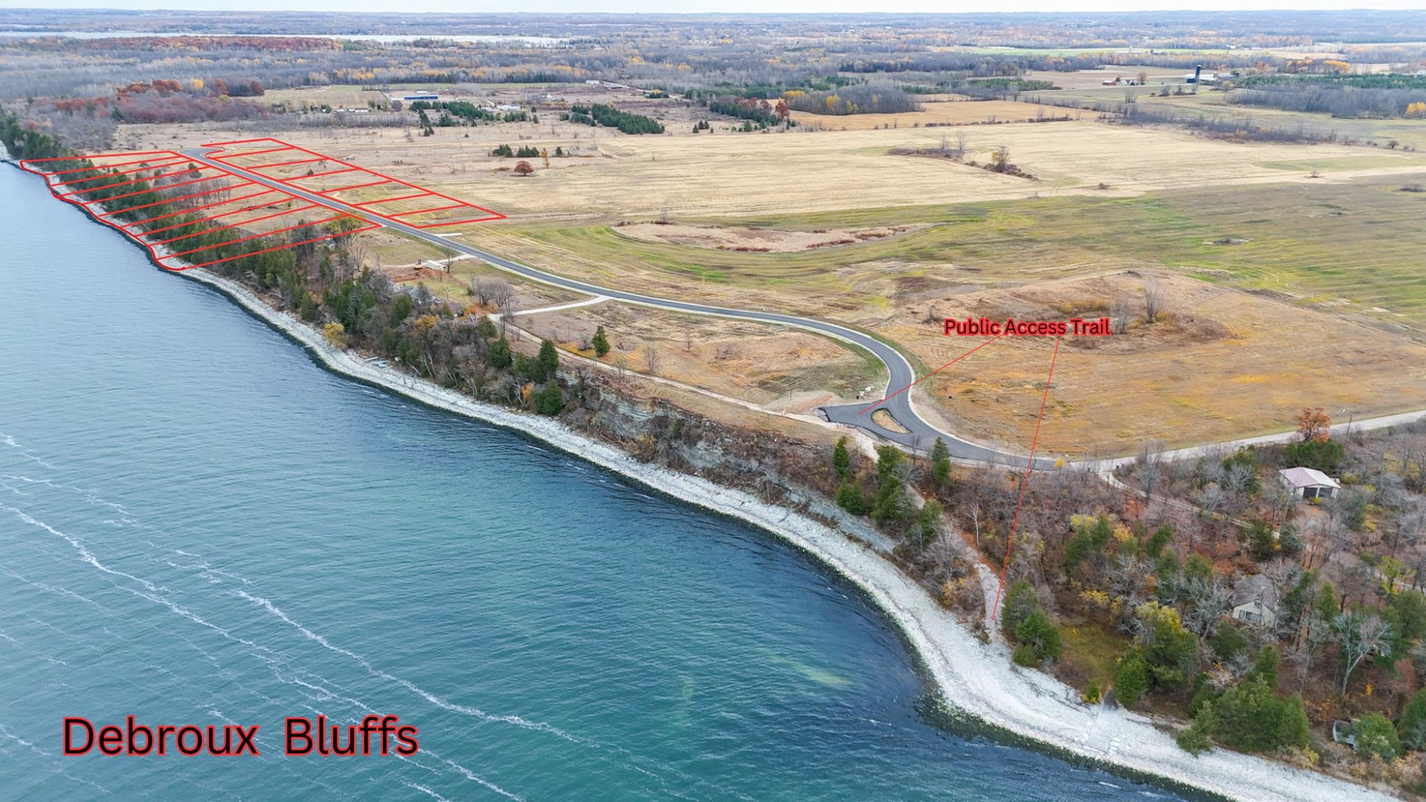 Discover a one-of-a-kind property perched high on the bluff with 135' of frontage in one of Door Co’s most desirable subdivisions. Located in DeBroux Bluffs, this generously sized lot features dramatic topography, mature trees, and sweeping views of the Bay of Green Bay—perfectly positioned for stunning sunsets. Just 10 minutes from Sturgeon Bay, this peaceful setting offers the ideal canvas for your dream retreat, surrounded by natural beauty, wildlife, and some of the area’s best fishing. Residents enjoy access to a brand-new public water entry at the subdivision entrance, perfect for kayaking, paddle boarding, or simply soaking in the views. Most lots in the neighborhood successfully perk for mound systems. A truly special opportunity to own in the heart of Door County’s bluff country.