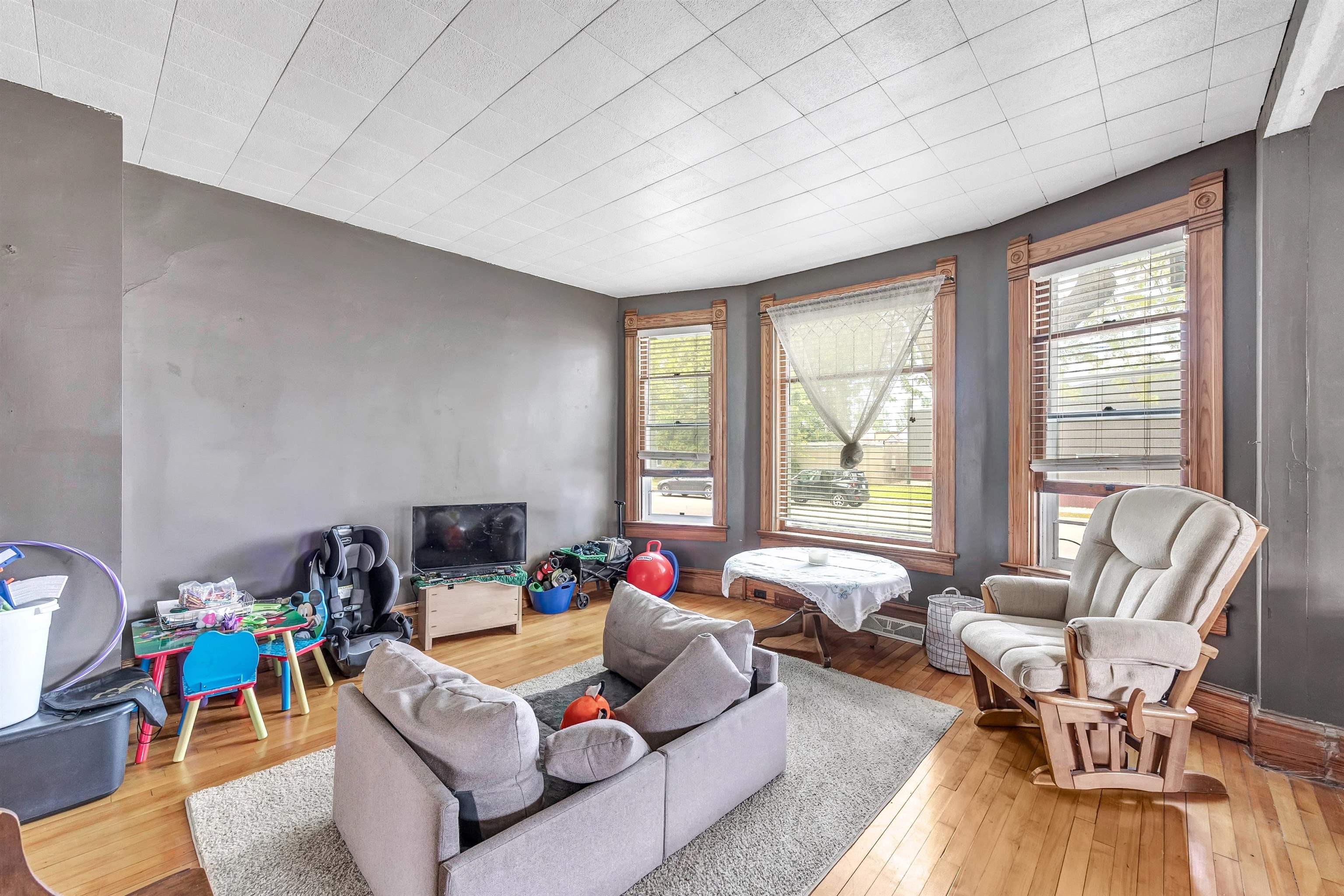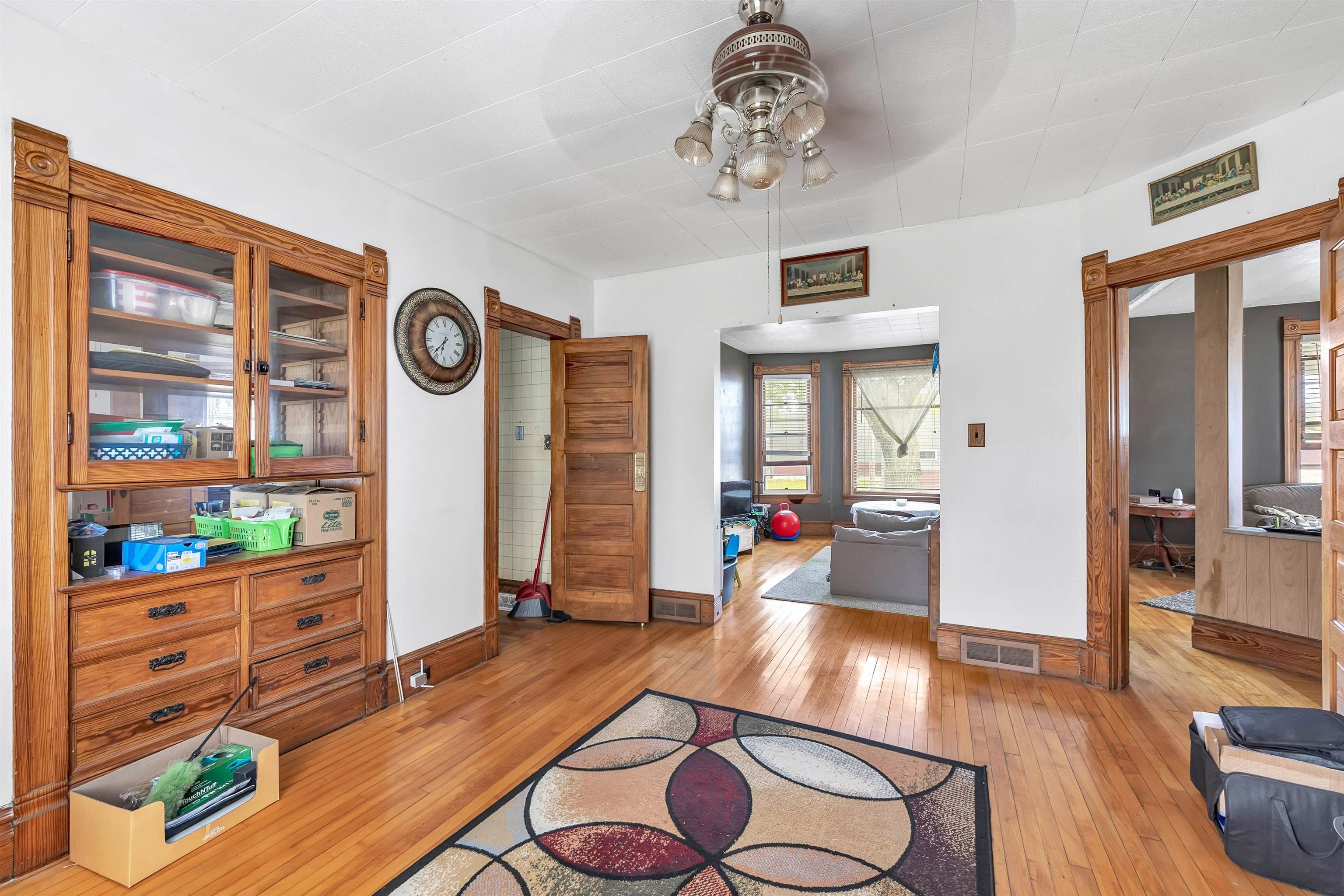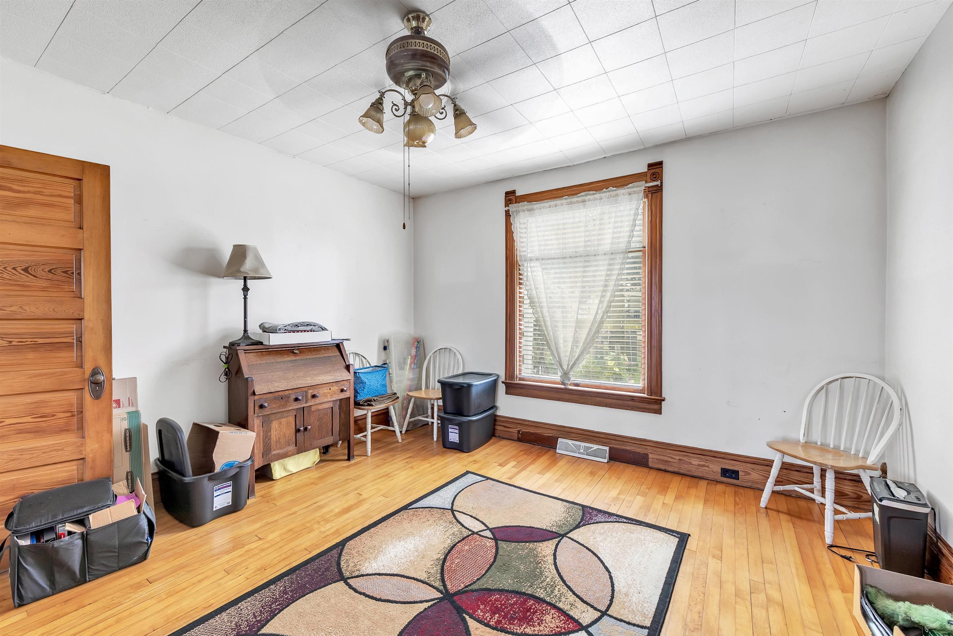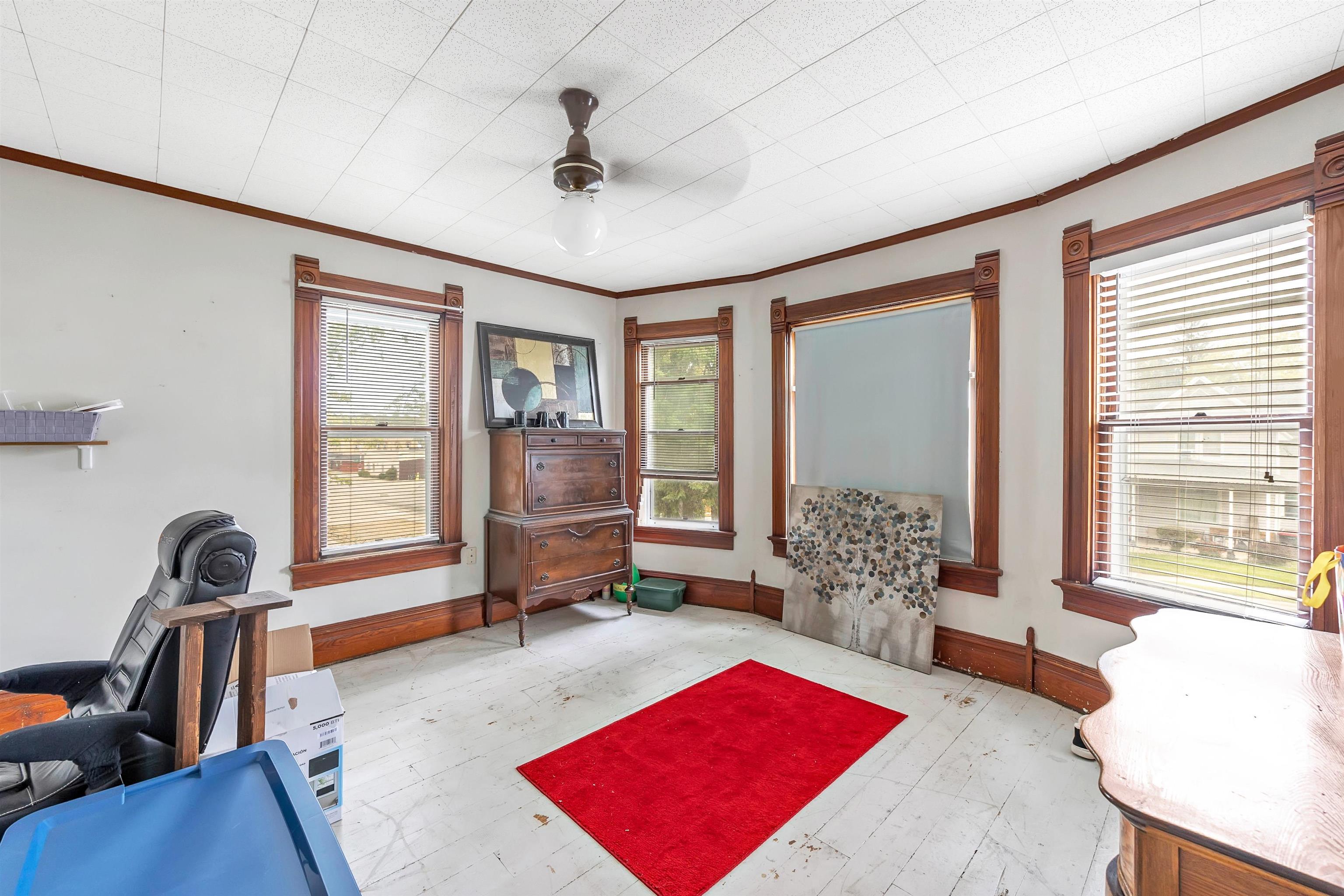 4 bed, 1.5 bath two-story home with wraparound porch and detached 2-stall garage. Spacious main level offers large living and dining rooms with original woodwork and tall ceilings. Kitchen has plenty of cabinet space and room to update to your style. Upper level features 4 bedrooms with natural light and a full bath. Yard provides outdoor space. Convenient location near downtown Gillett, parks, and local amenities.