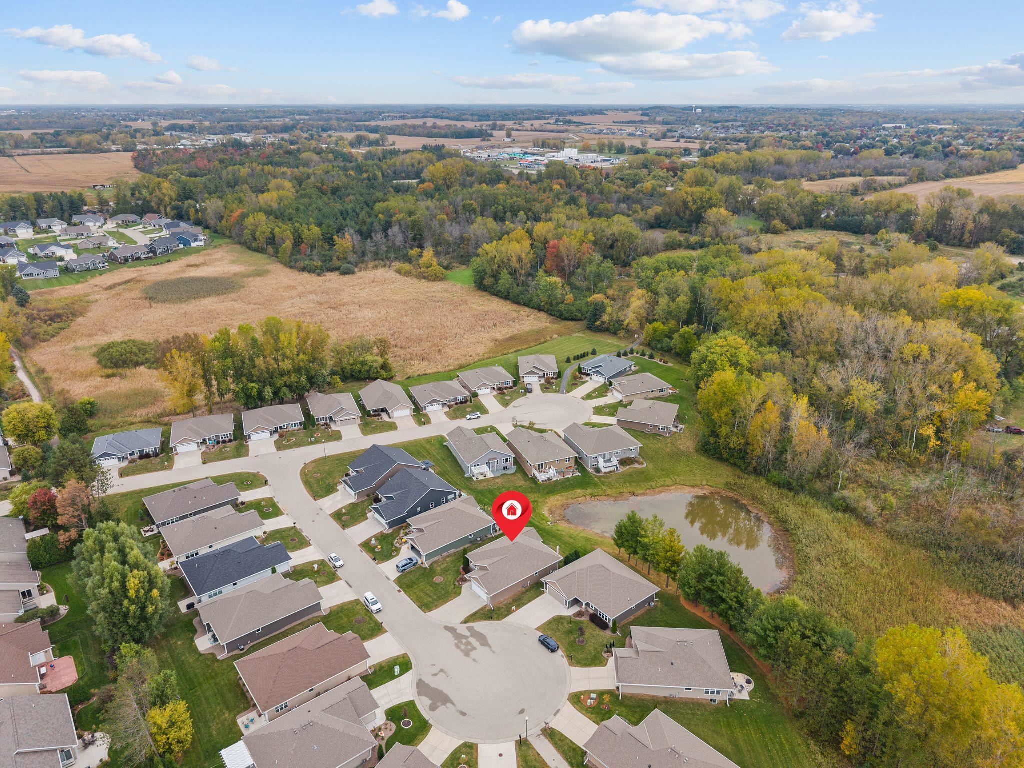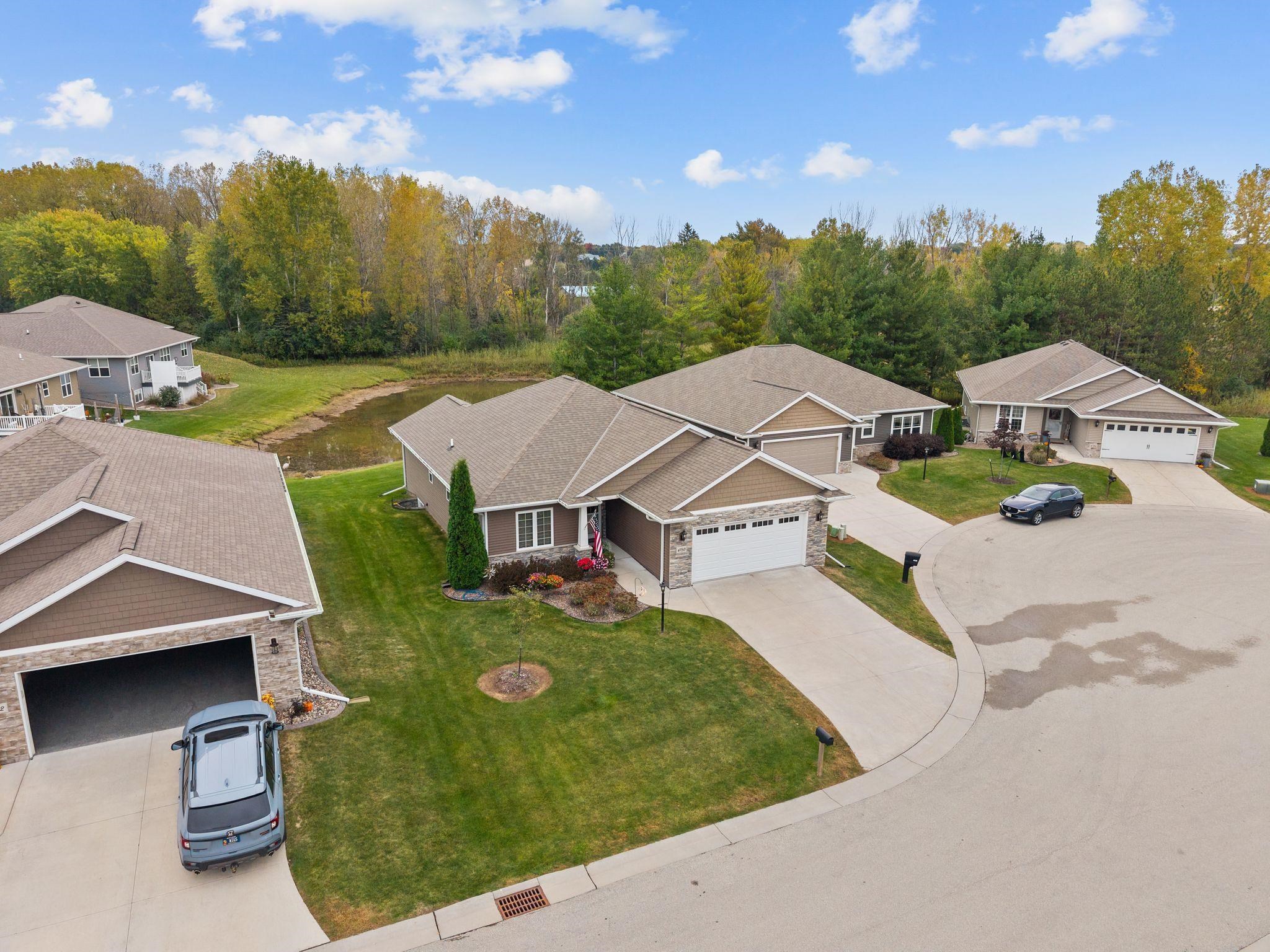 Live easy. Live beautifully. Make every day feel like a getaway! Fall in love with this beautiful standalone zero-entry condo tucked away on a quiet cul-de-sac. Enjoy the spacious open-concept main living area featuring large windows that fill the home with natural light and offer stunning views of the pond. The kitchen is a chef's delight with a center island, granite countertops, smart stove/oven and a walk-in pantry. Convenience abounds with a first floor laundry and primary suite designed for comfort. The LL expands your living space with a living room, third bedroom and a full bath - perfect for guests or entertaining. Ideally situated, this property is close to many amenities making it a perfect blend of comfort, convenience and low-maintenance living.