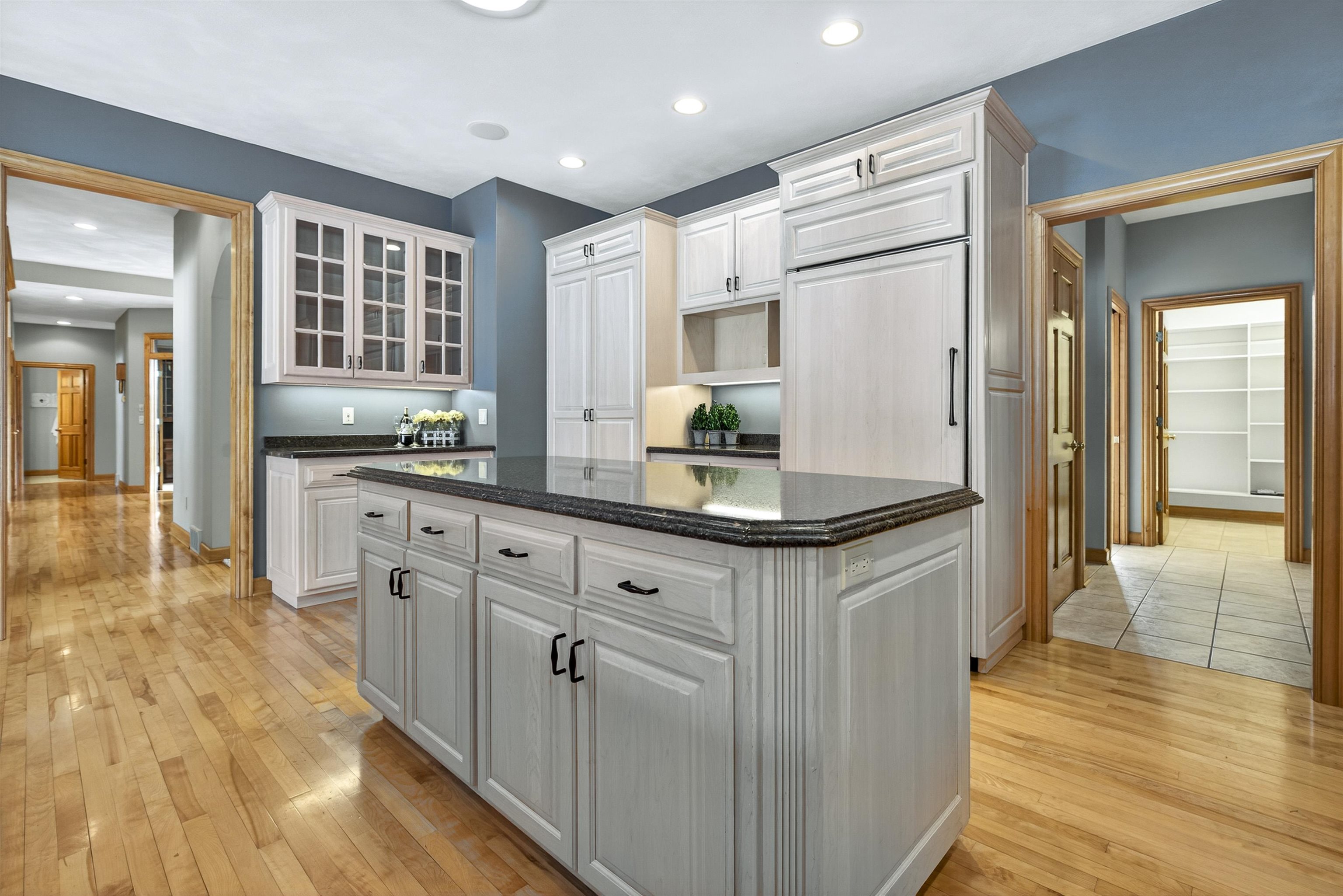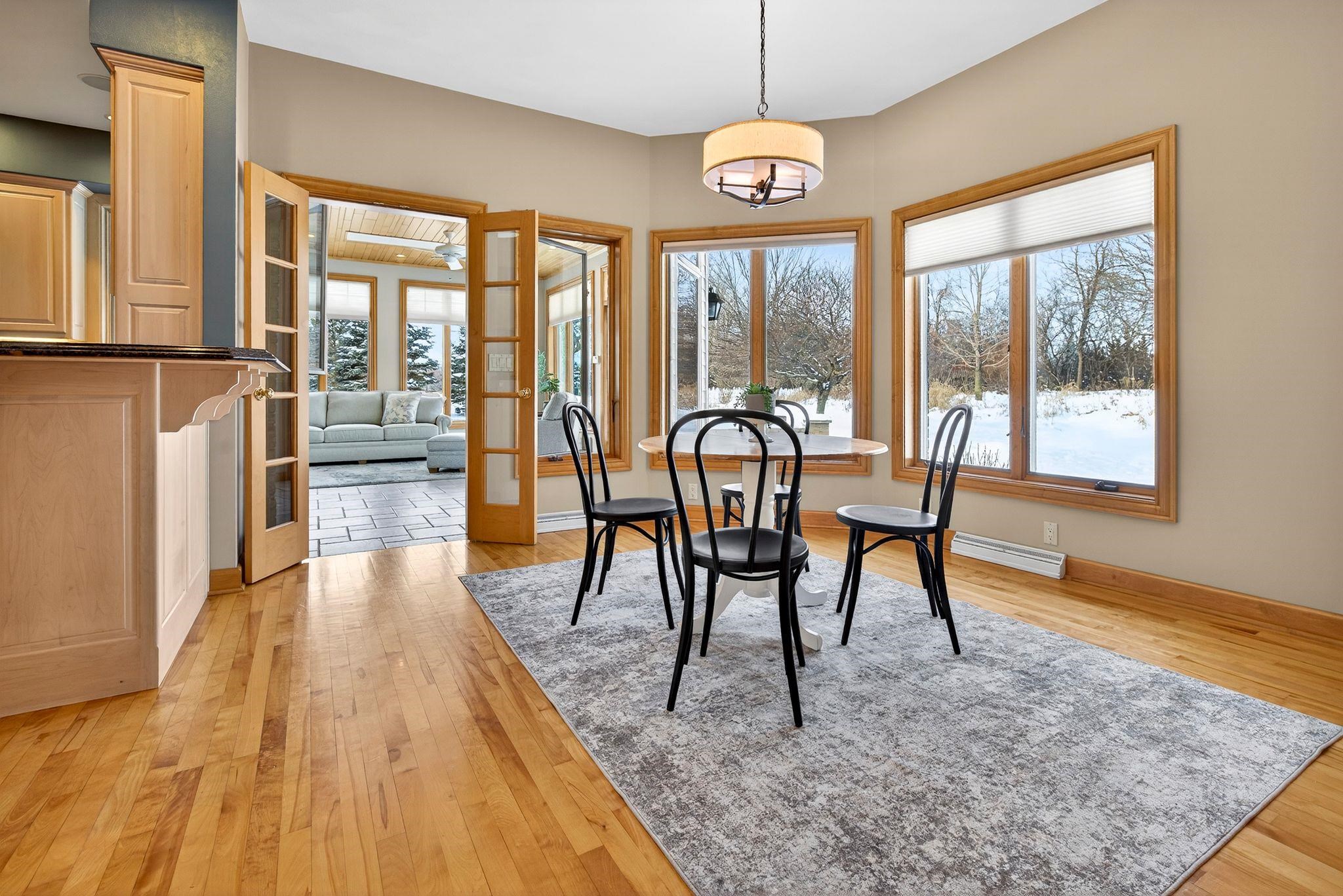 All-brick executive ranch on 1+ acre bordering Buboltz Nature Preserve is a rare find. As you enter, floor-to-ceiling windows draw your attention to the stunning views. Enjoy a bright sunroom that leads to a spacious paver patio perfect for relaxing and watching sunsets. The updated primary bath features a large walk-in shower. This home offers exceptional storage, including an oversized laundry room with ample cabinetry and a large walk-in pantry. The finished lower level adds a fourth bedroom, full bath, kitchen area, rec space, and a bonus room for play, workouts, or hobbies. A deep three-car garage provides even more storage. Don’t miss this one!