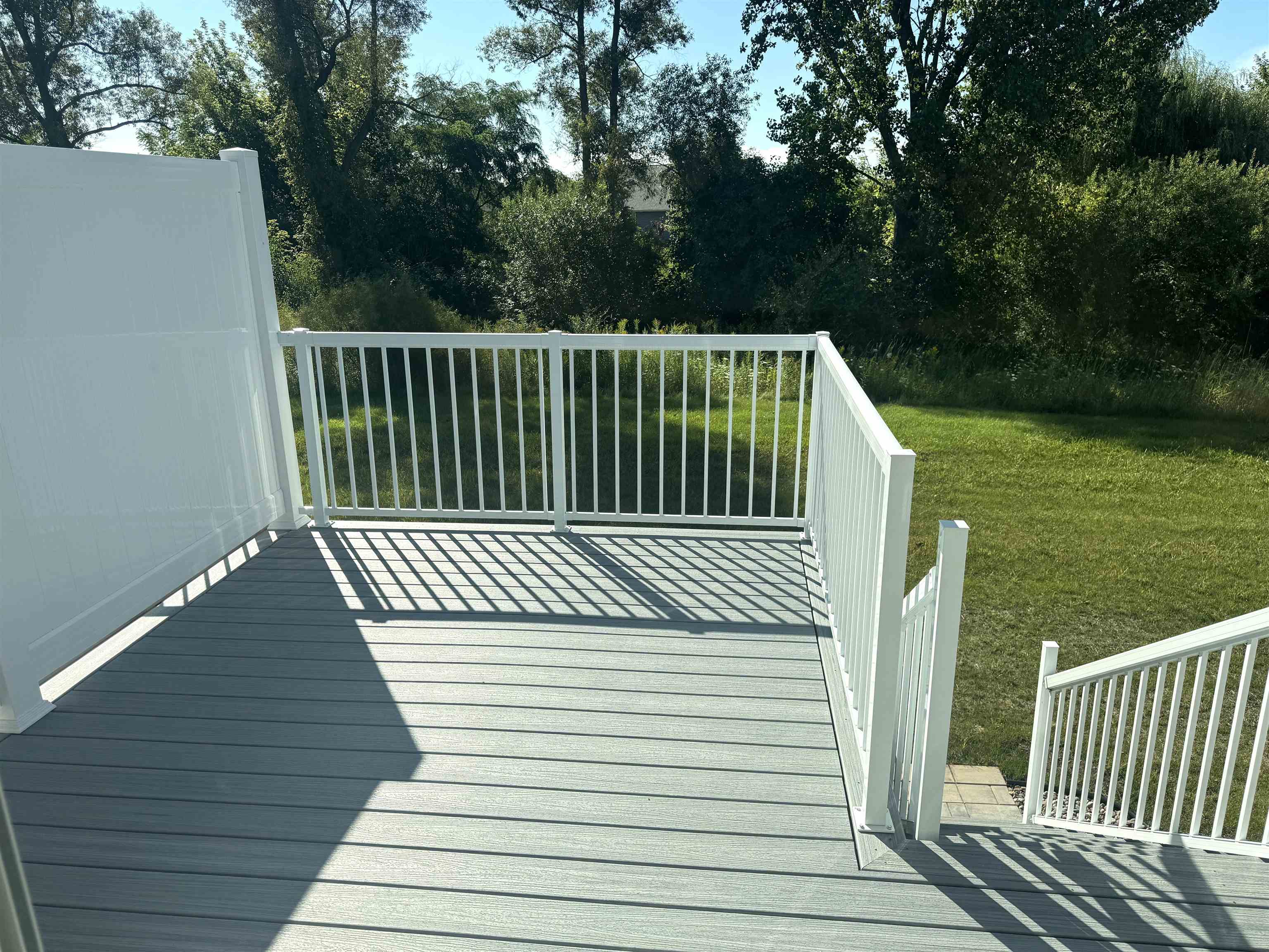 Bright new Condo with white cabinets and trim & huge eat-in kitchen island w Quartz countertop. Beautiful light fixtures & subway tile backsplash adorn the kitchen w high-end finishes. Refrigerator, Stove, Dishwasher, Microwave, Garbage Disposal included. Open floorplan Kitchen to Living Room has durable and easy to clean Luxury Vinyl Planking. LR opens to the outdoors onto large 10’x14’ Trex Deck, big enough for table & chairs. Enjoy the large, landscaped yard and sunsets on your Deck w southern exposure. Primary w attached bath, Quartz countertop, and walk-in closet. Pantry. Laundry w Drop Station, closet and Stacked W/D included! Finished LL, two large bedrooms, family room and full bath. 2 car attached garage. Low Fees $150/mo., snow removal and lawn care.