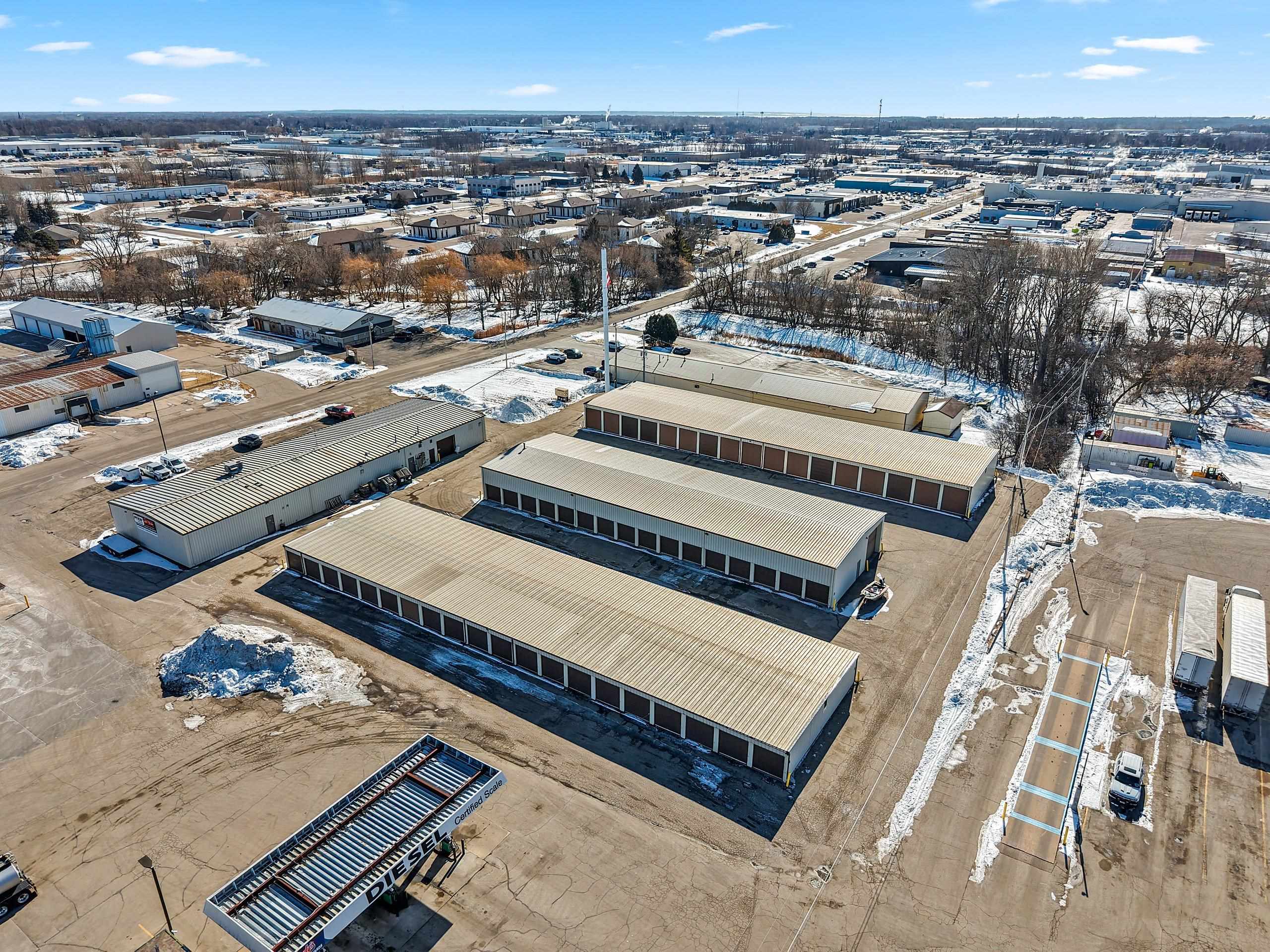 Stable investment opportunity - Consists of 84 storage units, 13,200 SF of flex industrial space/heated shop space, and an income producing cell tower. The property has a great rental history with long term tenant base, versatile set up with room to add value immediately. Located in the heart of Grand Chute near I-41, Residential housing and Retail.