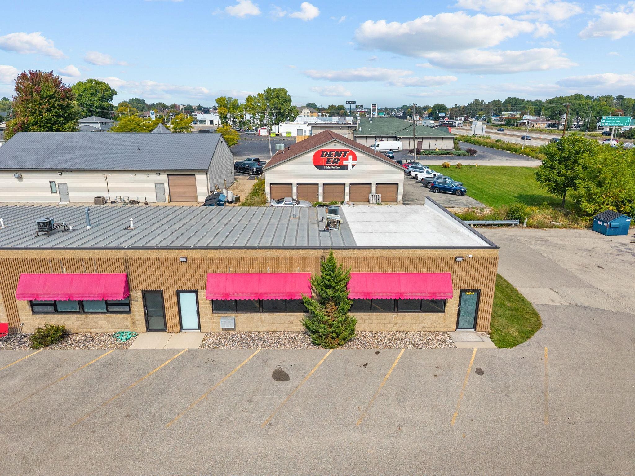 FOR LEASE End Cap Commercial Unit: Approx 1,800 SF Flex Space with Interstate 41 Visibility! Flex commercial space with easy access. This 1,800 sq ft flex-use unit is available NOW and offers the perfect blend of small office, warehouse, or light industrial use. 10 ft Overhead Door, 1,800 sq ft – flexible layout for a variety of business types. High Visibility from Interstate 41 – excellent exposure for your business. Additional Highway-Facing Signage Available – spot on east side of building facing I-41 Just 3 Minutes from Hwy 41 & College Ave Exit – easy access for clients and deliveries Desired Lease Details: Base Rent: $1,500/month Lease Type: NNN (Triple Net) CAM Expenses: Tenant pays a prorated portion of total shared expenses Utilities: Tenant pays gas and electric