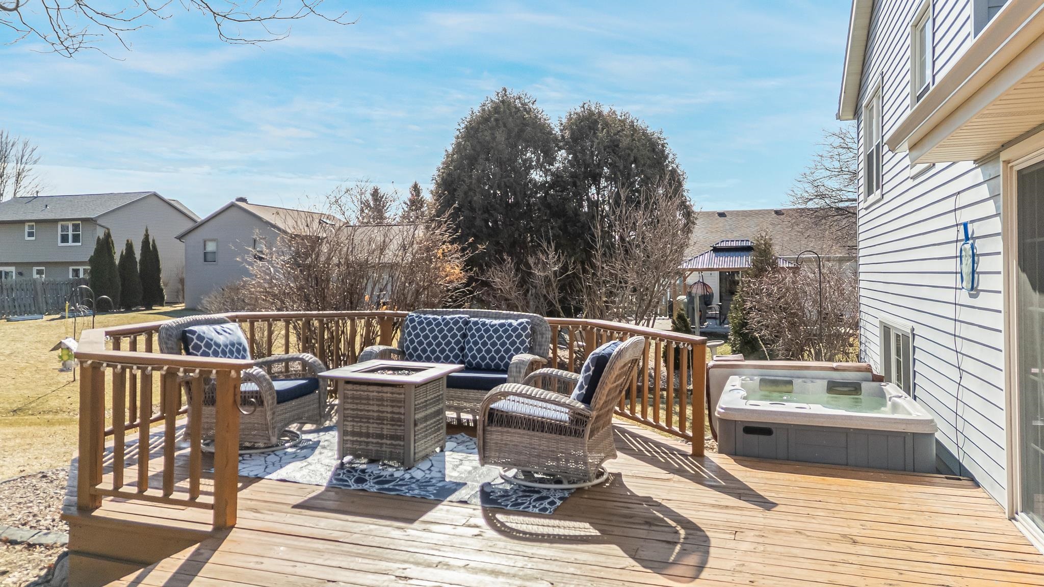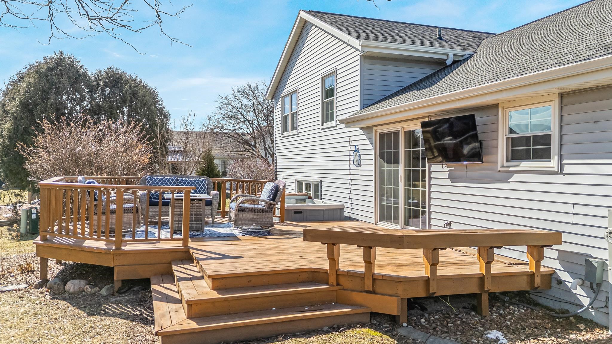 Move-in and enjoy this updated 4-bedroom, 2.5-bath home in Grand Chute offering space, style, and comfort throughout! With a 3-car garage and multiple living areas, this home is perfectly designed to fit today’s busy lifestyle. The kitchen features crisp white cabinetry, granite countertops, a center island and patio doors that lead to a spacious yard and deck complete with a hot tub — the perfect spot to relax or entertain. The main living room and kitchen area have vaulted ceilings. Recent updates include the roof, furnace, A/C, windows, dishwasher, oven/range, and newly finished basement space — plus more. Room dimensions and square footage are approximate; buyer to verify if material. Please allow 48 hours for Seller's response to an offer.