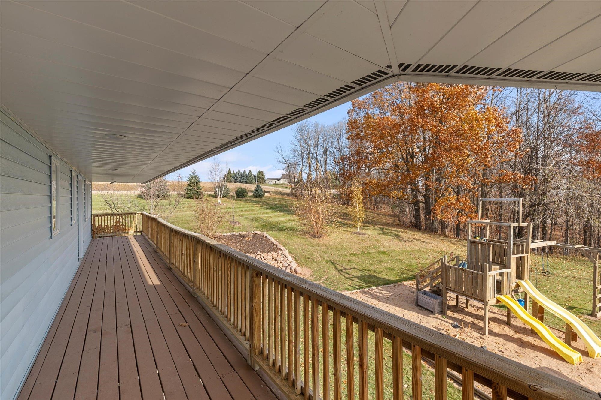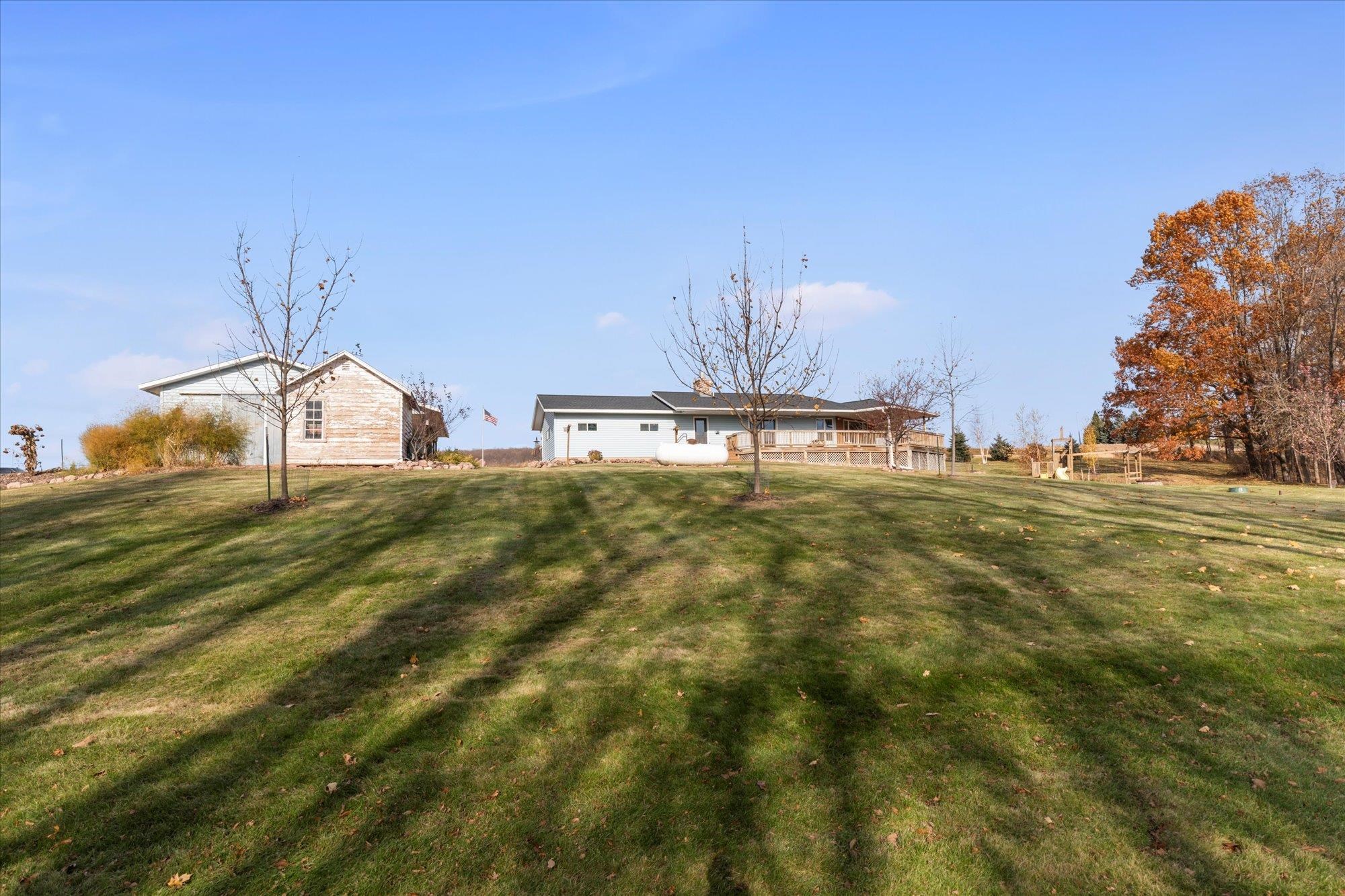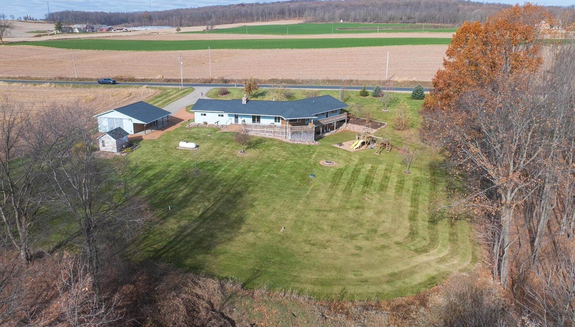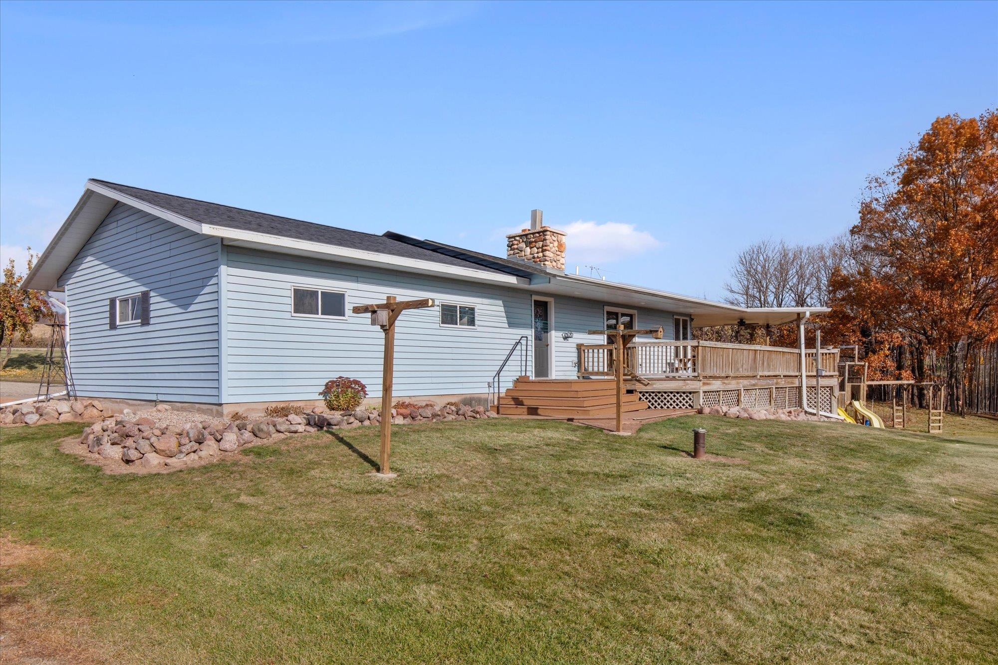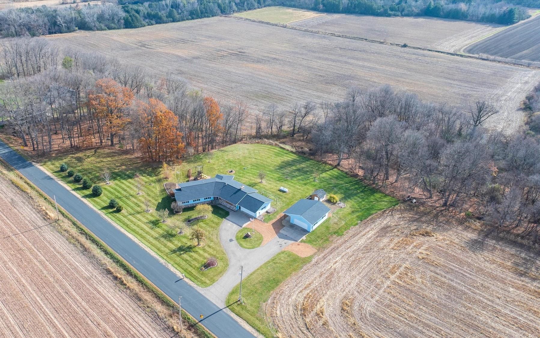 Spacious ranch nestled on 3 scenic acres in the Town of Grant, just outside Marion! Offering 2,234 sqft above grade plus a walk-out LL with 1,448 sq ft, this property shines inside & out. Main floor features 4 bedrooms, 2.5 baths, laundry/mudroom, kitchen/dinette with island, appliances & patio doors to your expansive deck. The primary suite offers a walk-in closet & full bath. Many updates including a new roof, floor coverings & paint throughout. LL features a (15x12) 2nd kitchen, theater room, family & rec room, full bath & 5th bedroom. Enjoy valley views, fruit trees, lilacs, huge deck, 2.5-car attached & heated detached garage. This one has it all — space, updates, and a stunning country setting. Showings begin 11/15/2025. 48hrs for acceptance.