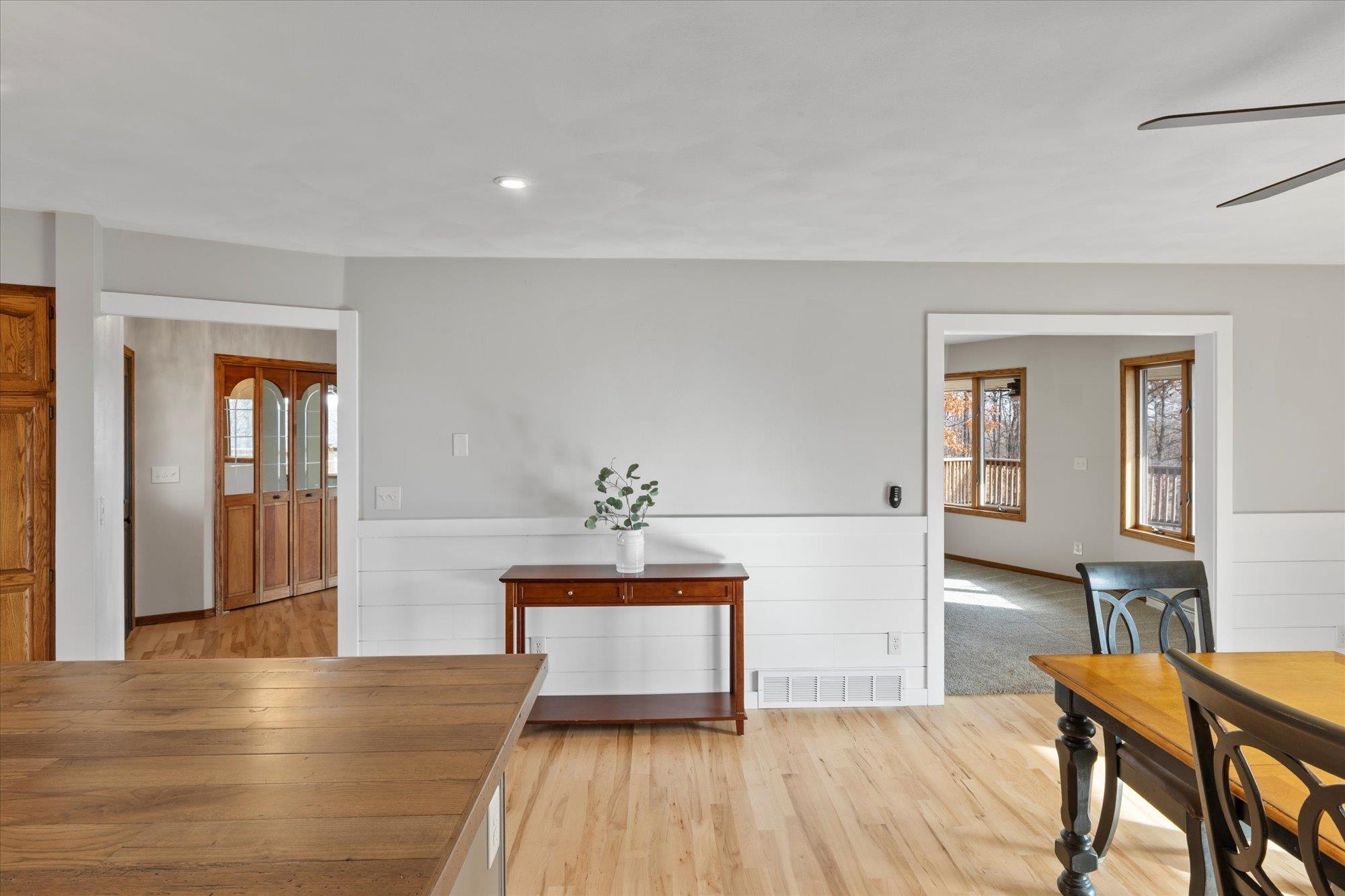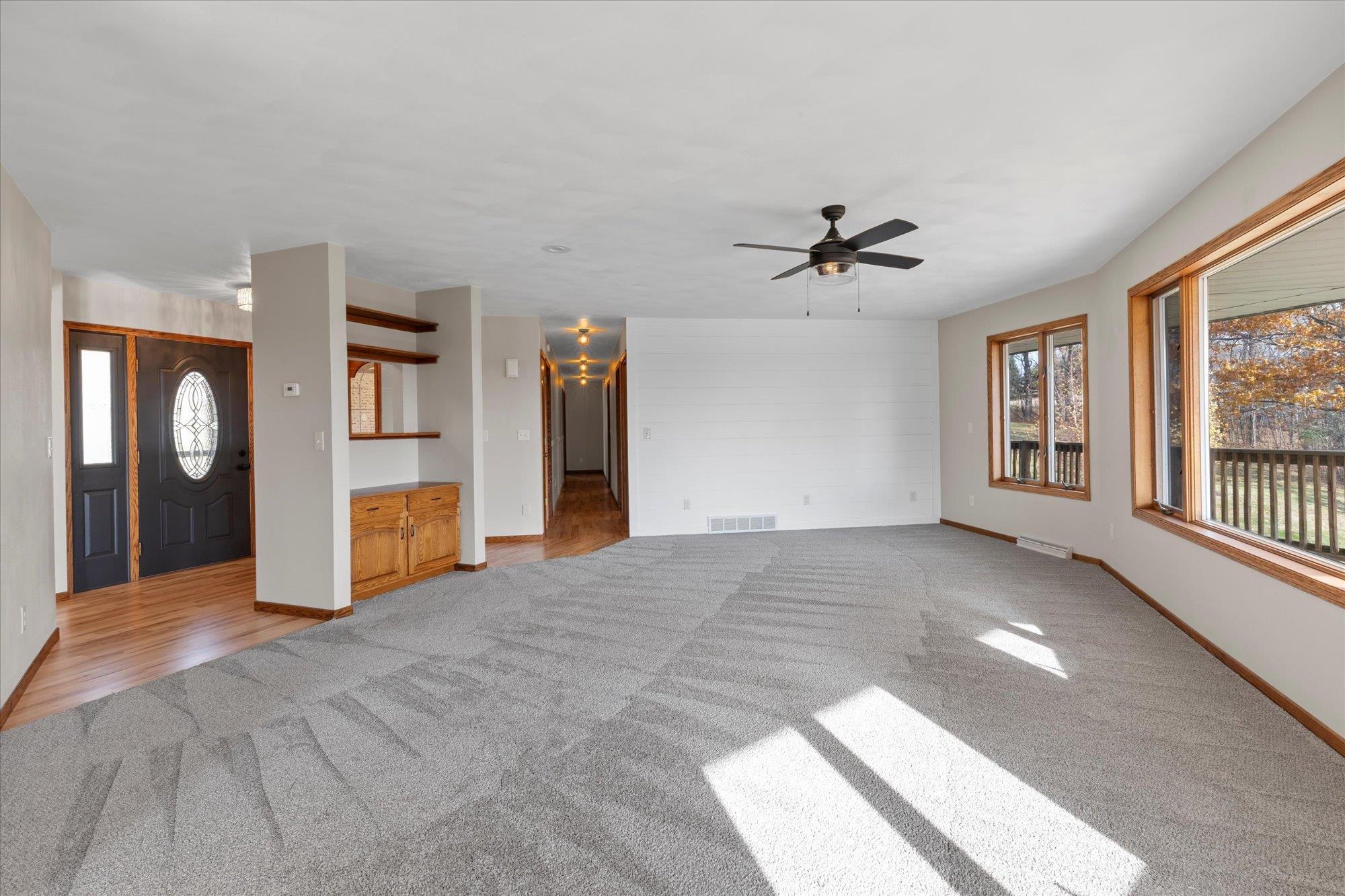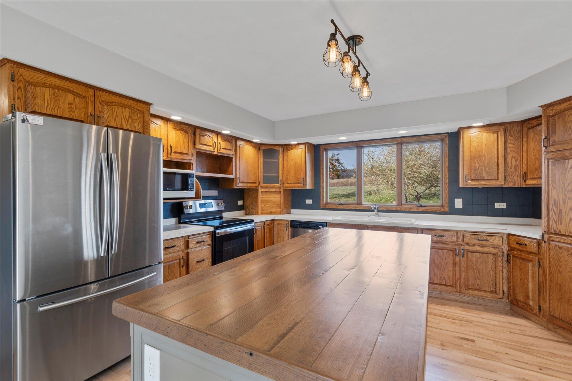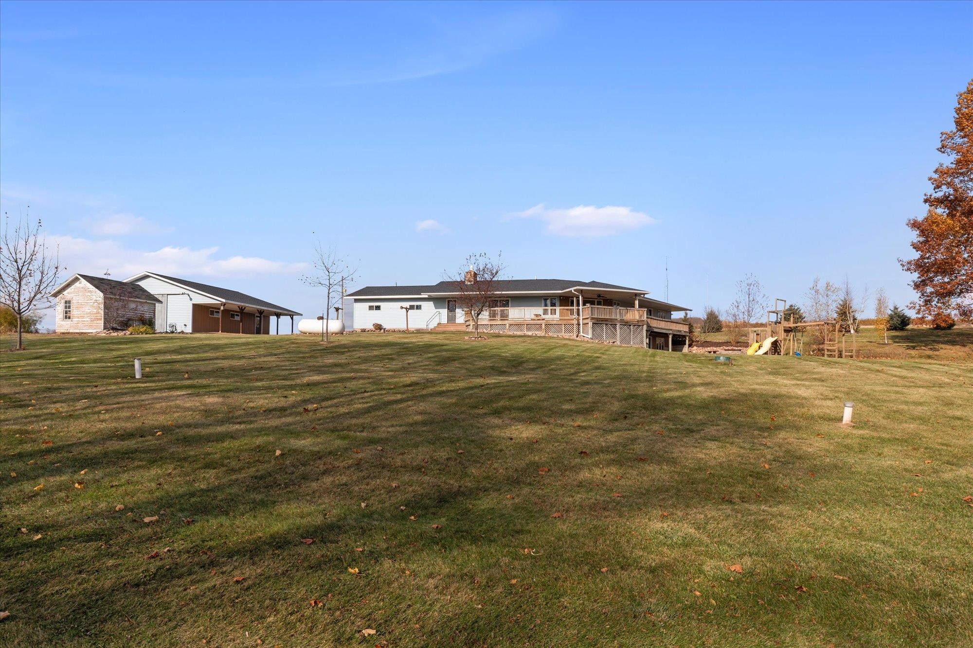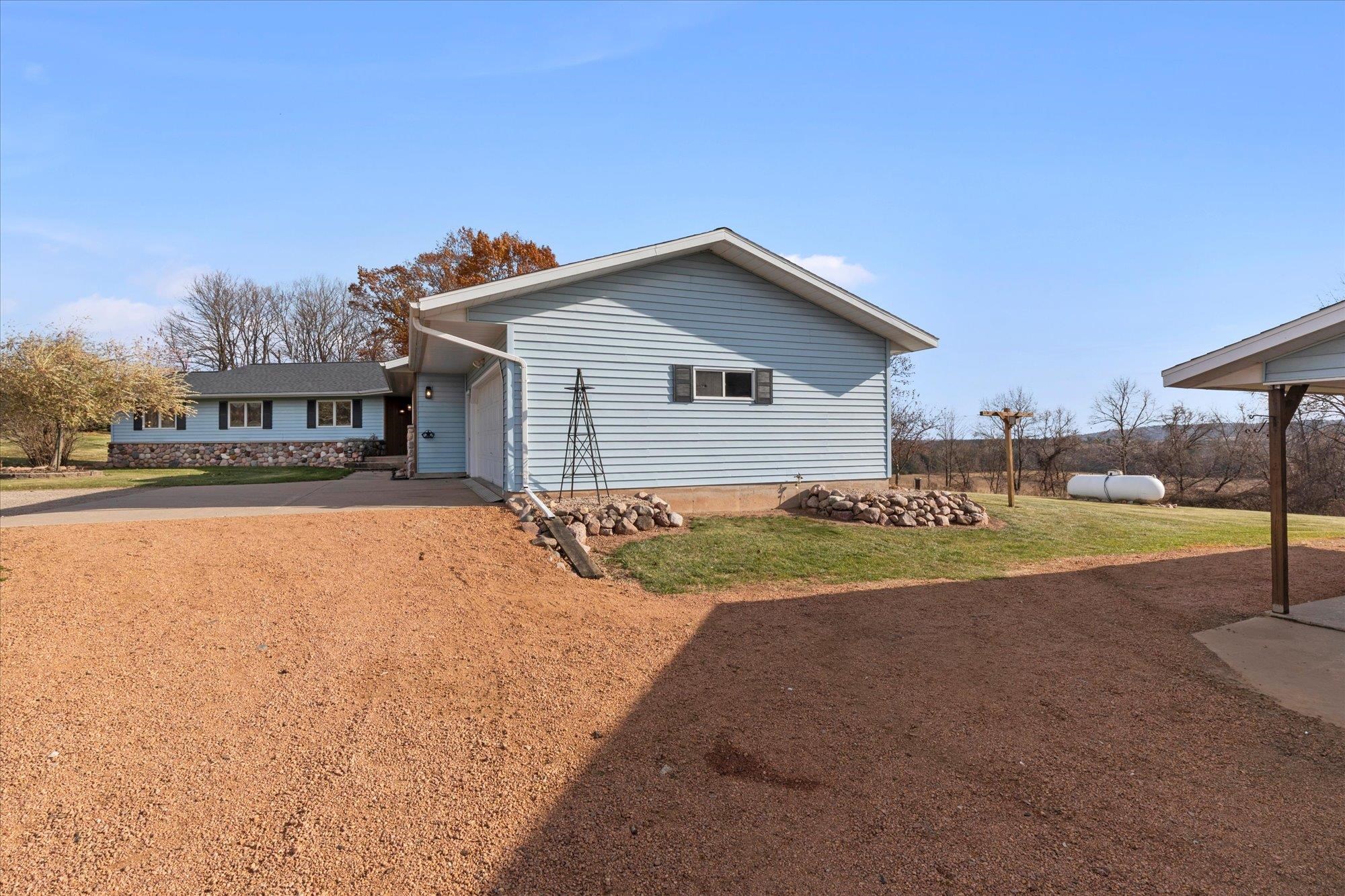 Spacious ranch nestled on 3 scenic acres in the Town of Grant, just outside Marion! Offering 2,234 sqft above grade plus a walk-out LL with 1,448 sq ft, this property shines inside & out. Main floor features 4 bedrooms, 2.5 baths, laundry/mudroom, kitchen/dinette with island, appliances & patio doors to your expansive deck. The primary suite offers a walk-in closet & full bath. Many updates including a new roof, floor coverings & paint throughout. LL features a (15x12) 2nd kitchen, theater room, family & rec room, full bath & 5th bedroom. Enjoy valley views, fruit trees, lilacs, huge deck, 2.5-car attached & heated detached garage. This one has it all — space, updates, and a stunning country setting. Showings begin 11/15/2025. 48hrs for acceptance.