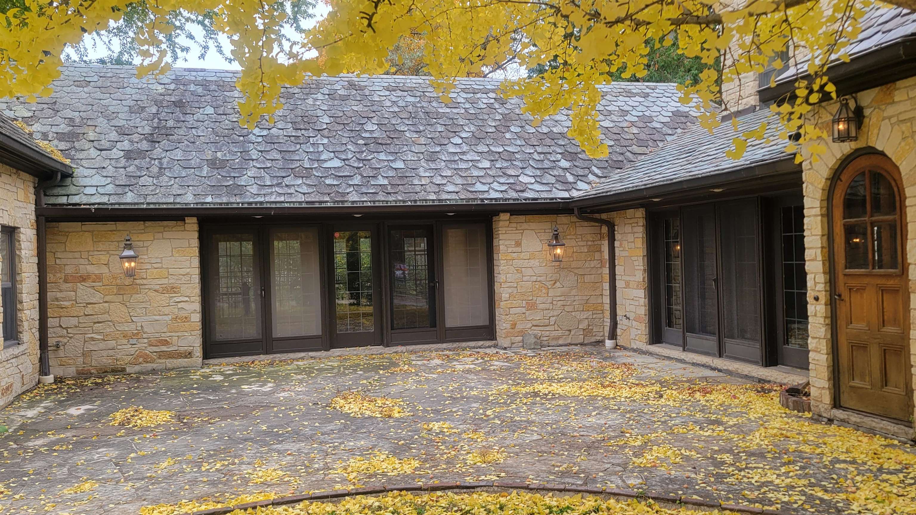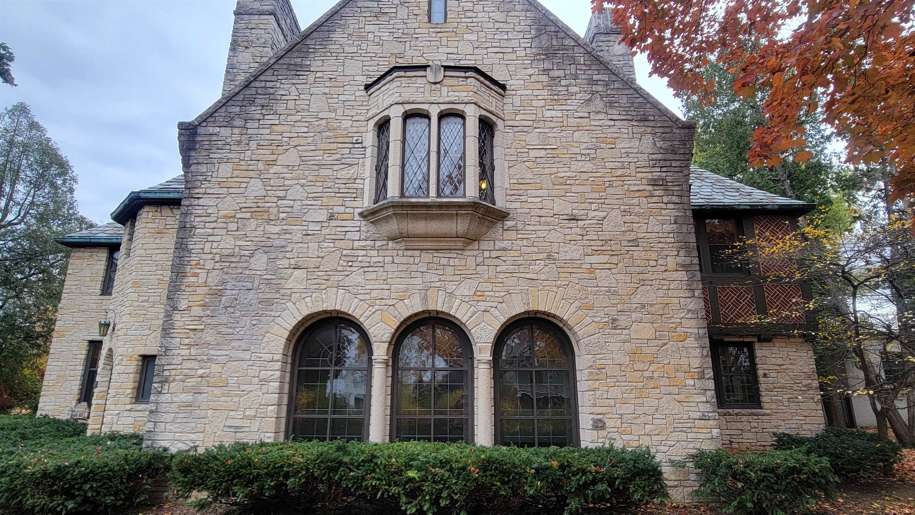 Amazing opportunity to live in one of Green Bay's most impressive Astor Park homes. Nearly 10,000 SQ FT of living area on three floors. Stone exterior. Thick Slate roof tiles. Large 36 ft deep garage attached to home by large breezeway. Solarium at back of home. Primary Suite with fireplace has walk-in closet, private bath, reading room and private entrance to upper balcony. Total 4 fireplaces. Old English bar and Bar room in basement along with solid wood paneled billiards room and game room. There is also an interior spa room with large hot tub. Kitchen was updated in early 200's with hickory cabinets and granite counters. This property is sold in as is, where is condition. Seller is a Lending Institution with no representatives having ever resided at this premises.