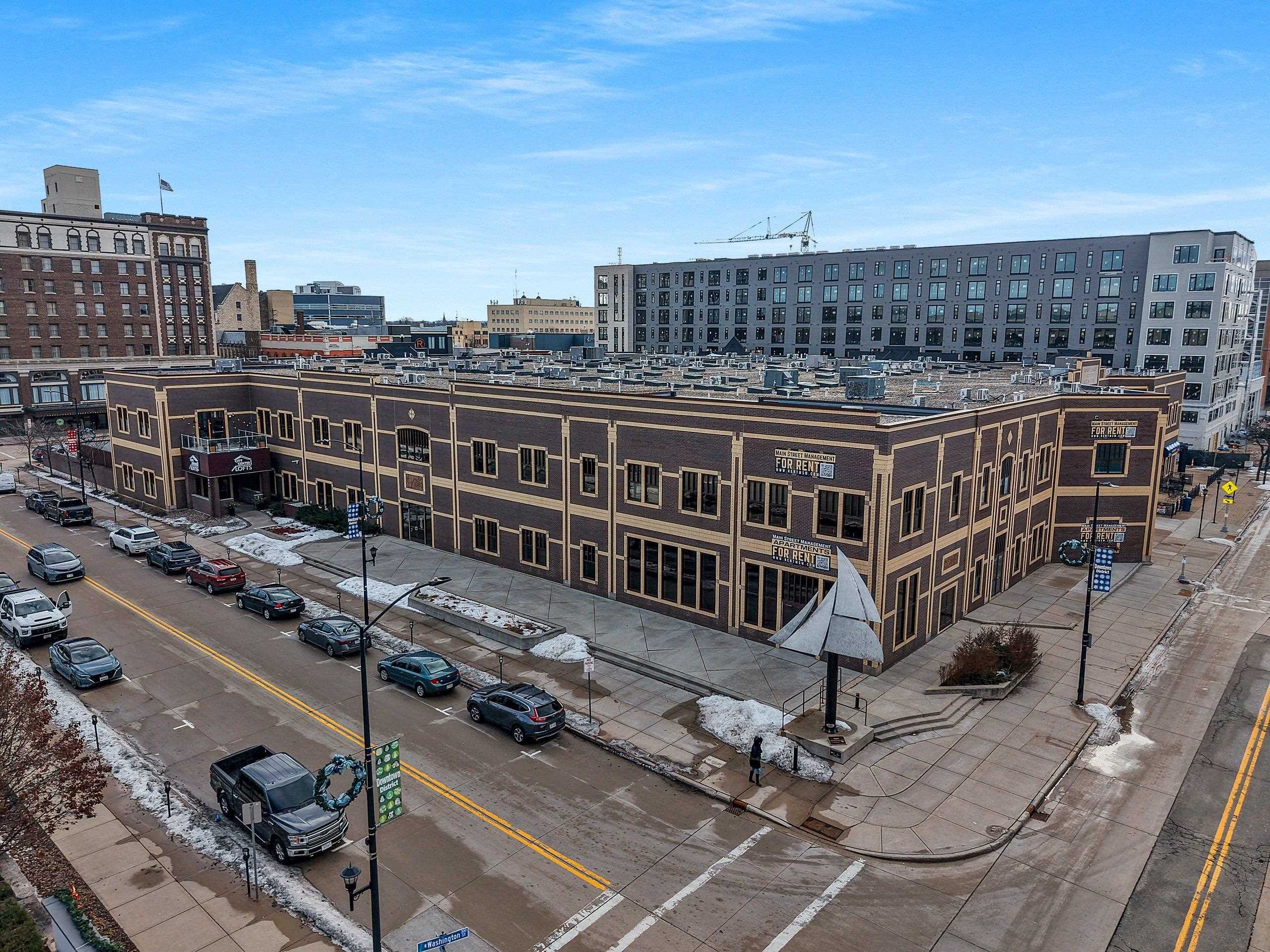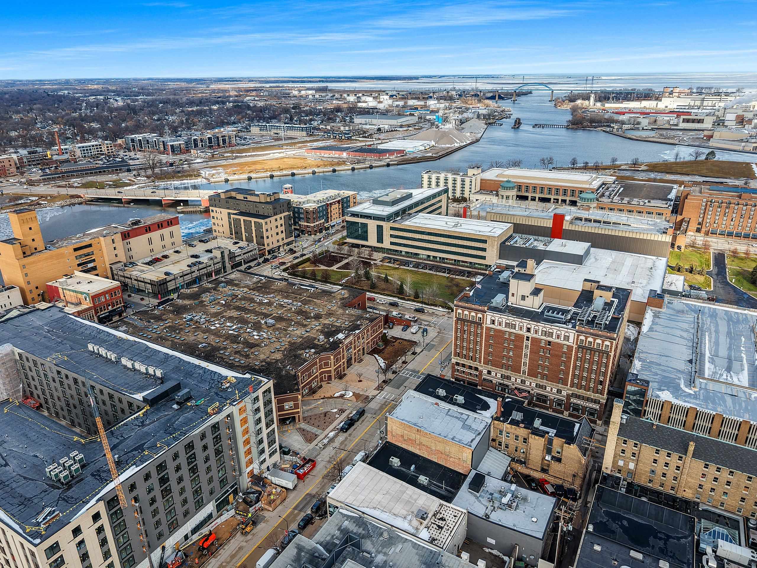 Main Street into down town Green Bay. South on Washington Street to property.