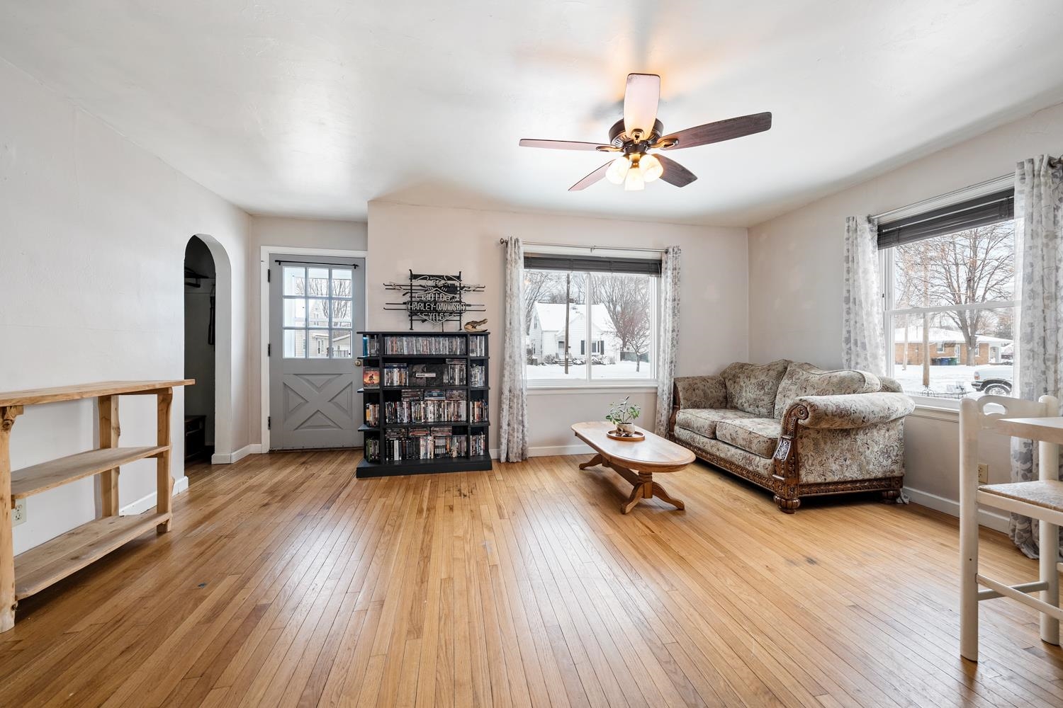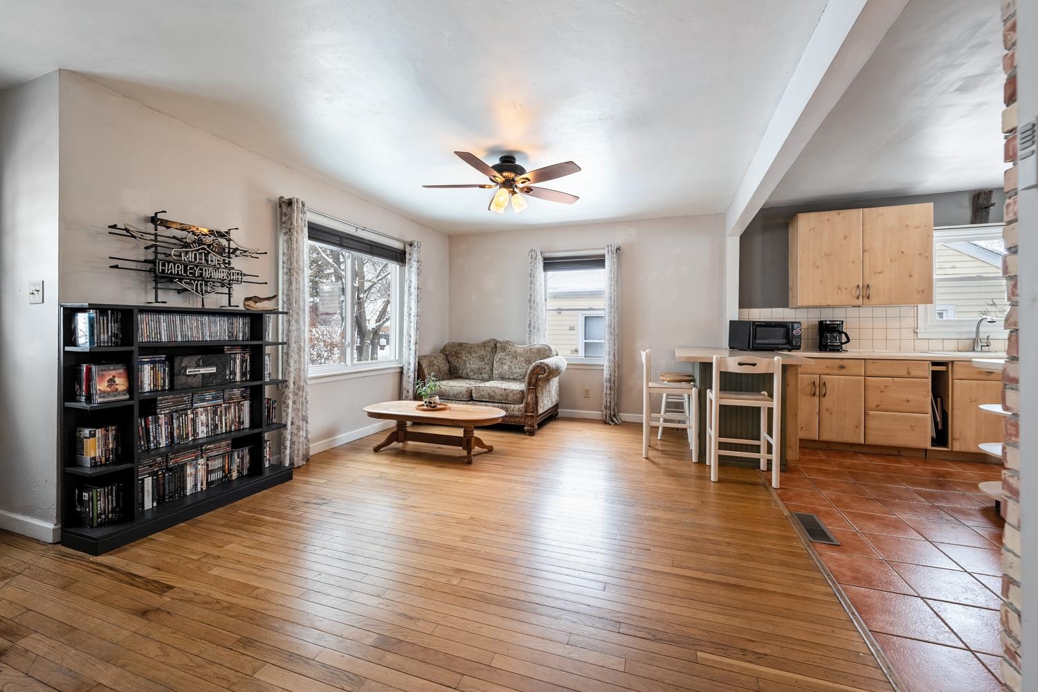 Located on a quiet closed street, this 2BR/1BA ranch greets w/ oak HW floors, arched doorways, original paneled doors & open-concept layout! Kitchen w/ appliances offers hi-top seating, island w/ gas cooktop, wall-oven, tile floor, and exposed brick. Bathroom w/ pedestal sink. Lower level boasts a full egress window for future expansion. Laundry area includes washer & dryer! Front entry enjoys a deck, back door exits to patio & yard w/ 1.5 stall insulated detached garage. Slight smoke smell.
