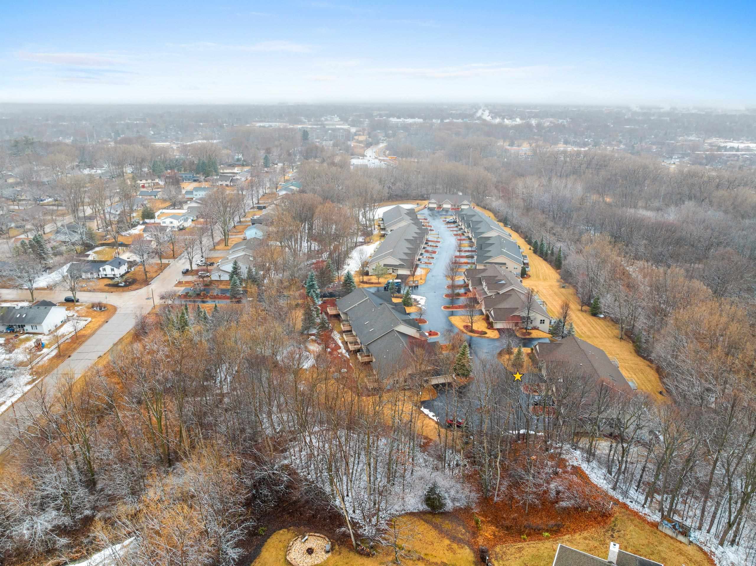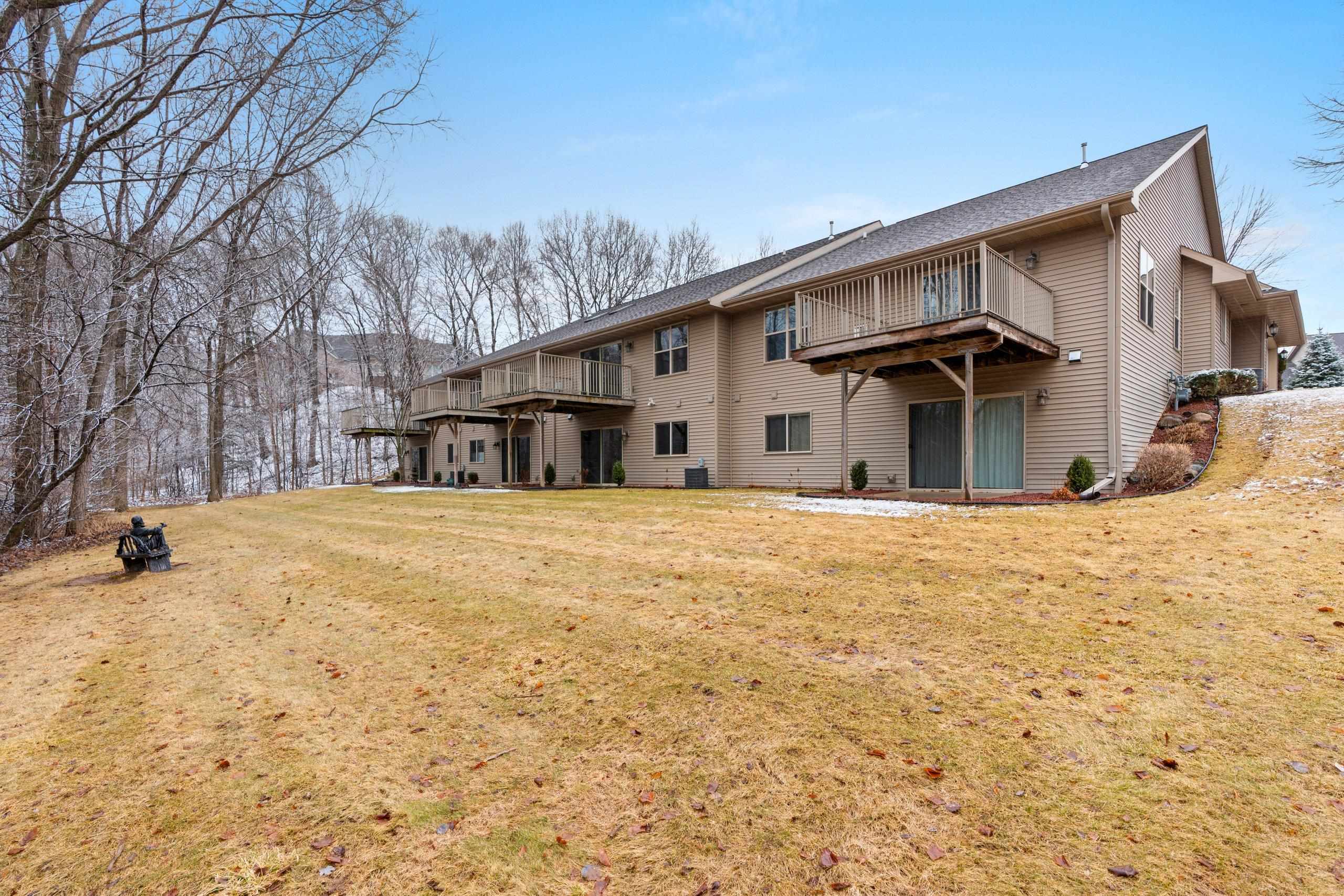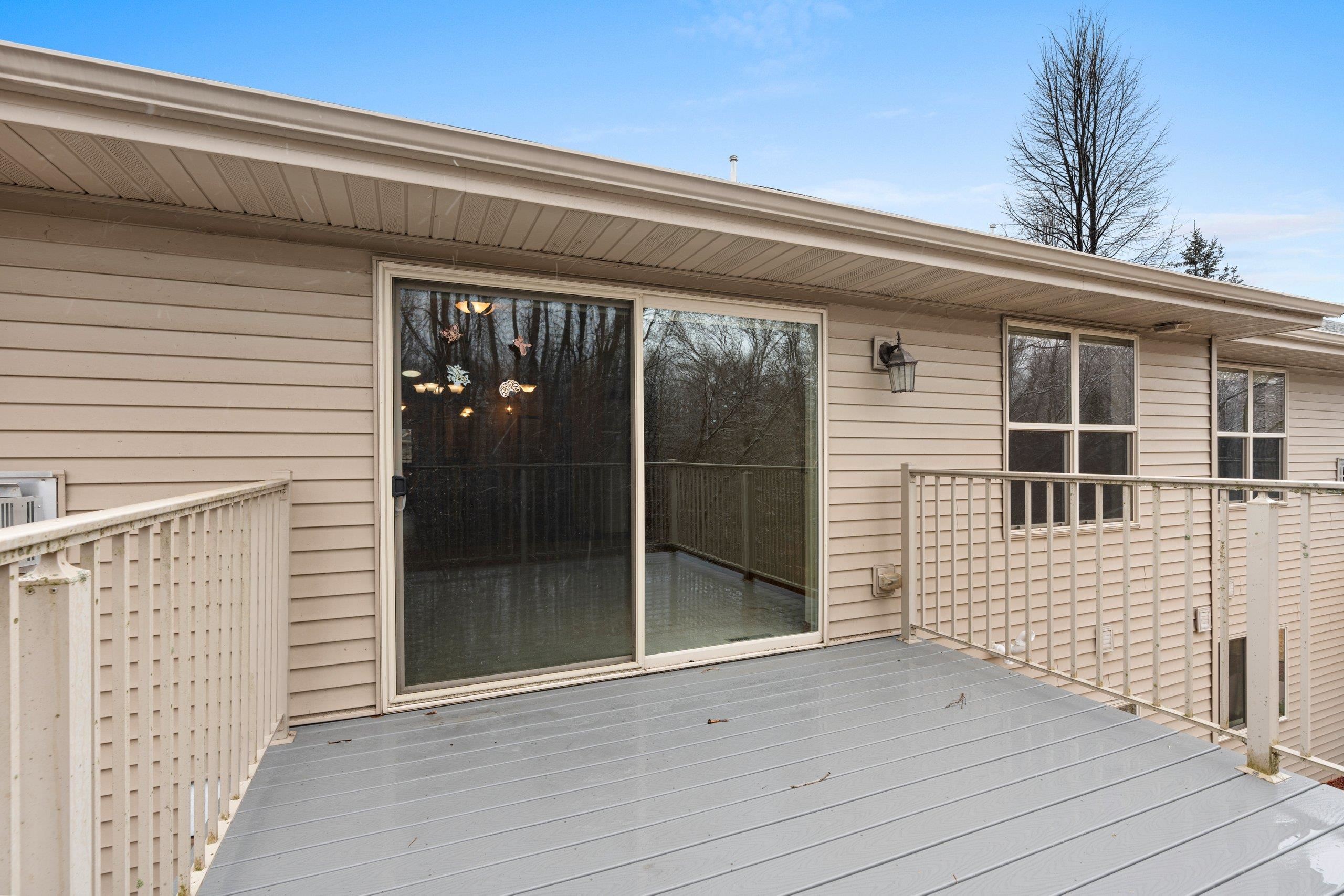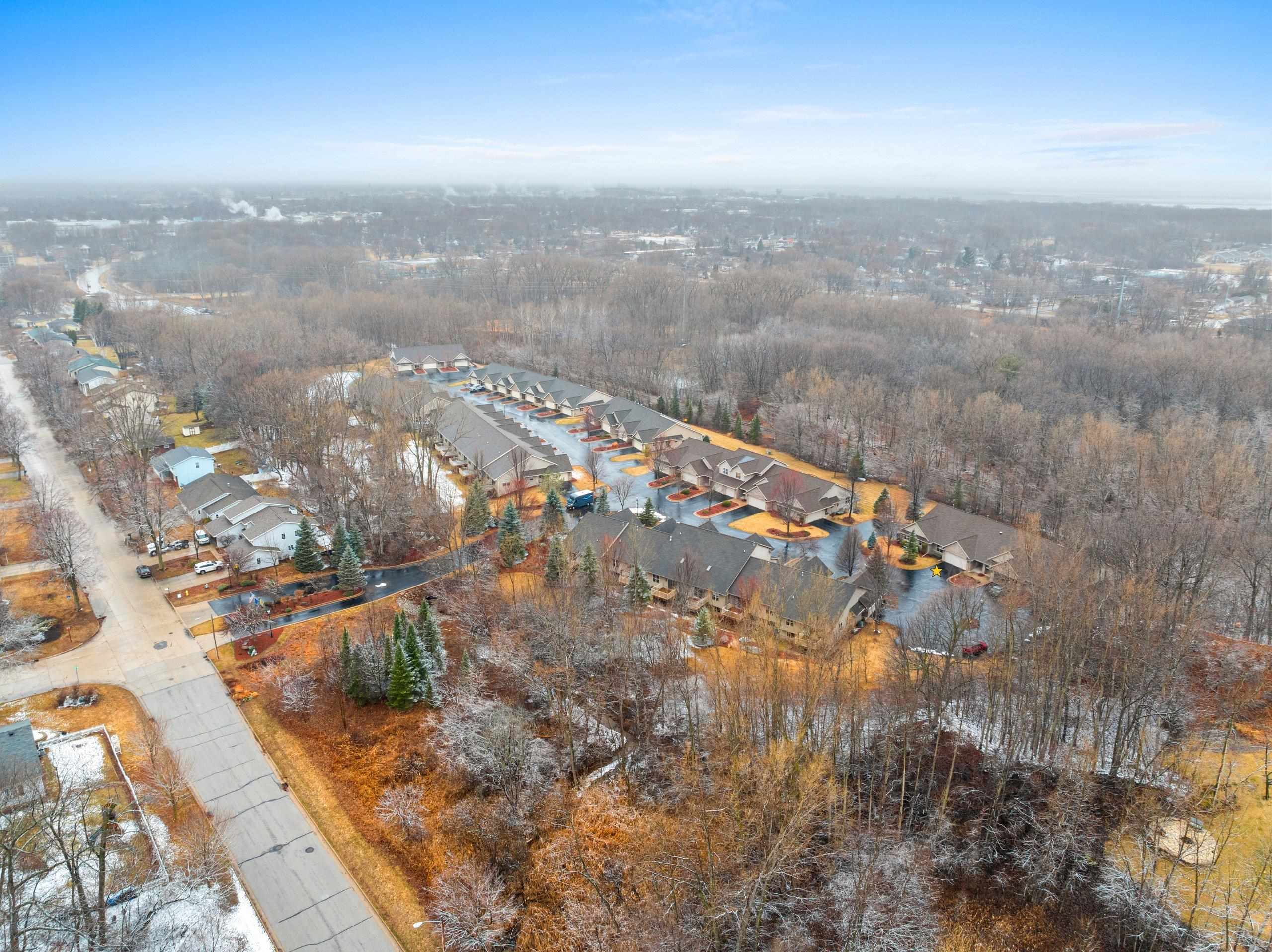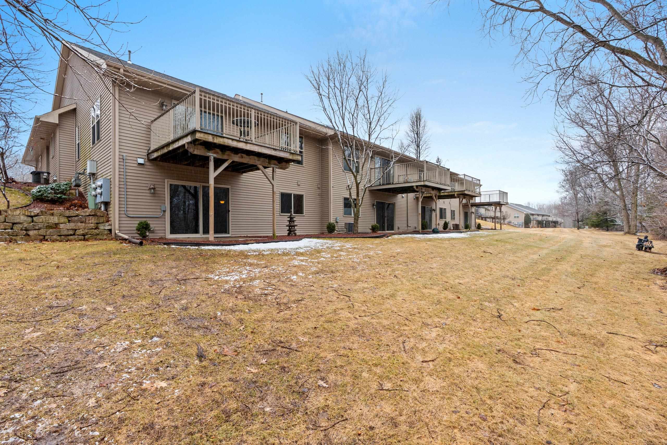 Discover this hard-to-find walk-out lower level condo with serene views of mature trees and Baird Creek Parkway. The open-concept floor plan features a modern kitchen with solid surface counters, maple cabinets, and stainless steel appliances. The walk-out lower level offers custom built-in cabinetry and a versatile space ideal for a bar or game table. Each floor includes a large bedroom and full bath, providing privacy and convenience for all. Additional highlights include first-floor laundry, no step entry from garage, and recent upgrades with a new roof and Trex deck in 2025. Please allow 48 hours binding acceptance.