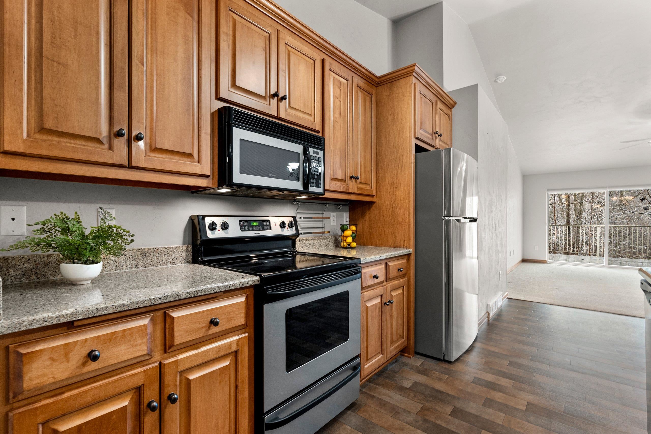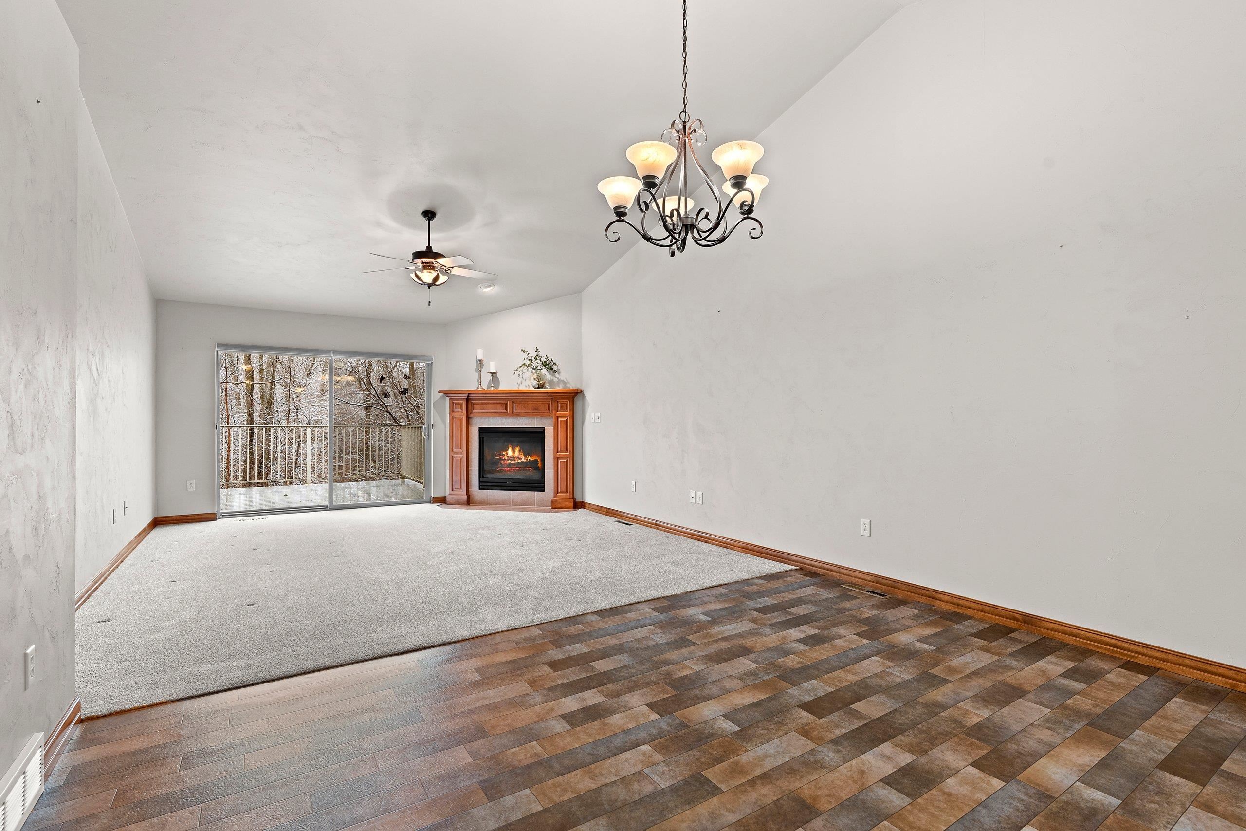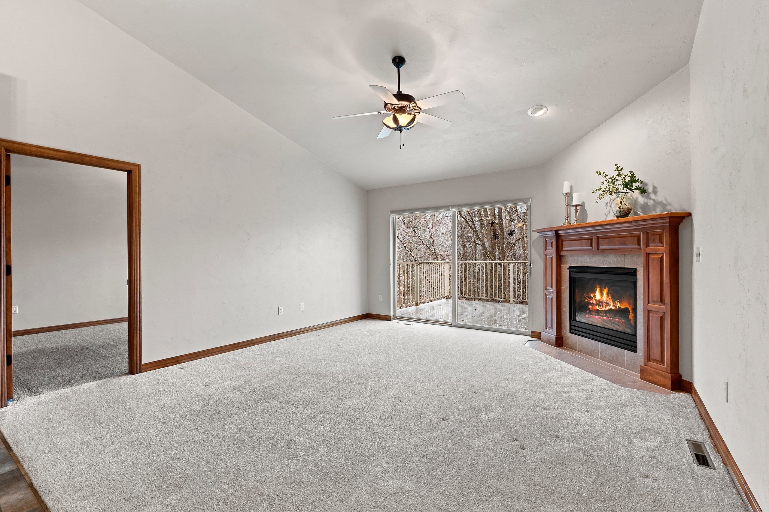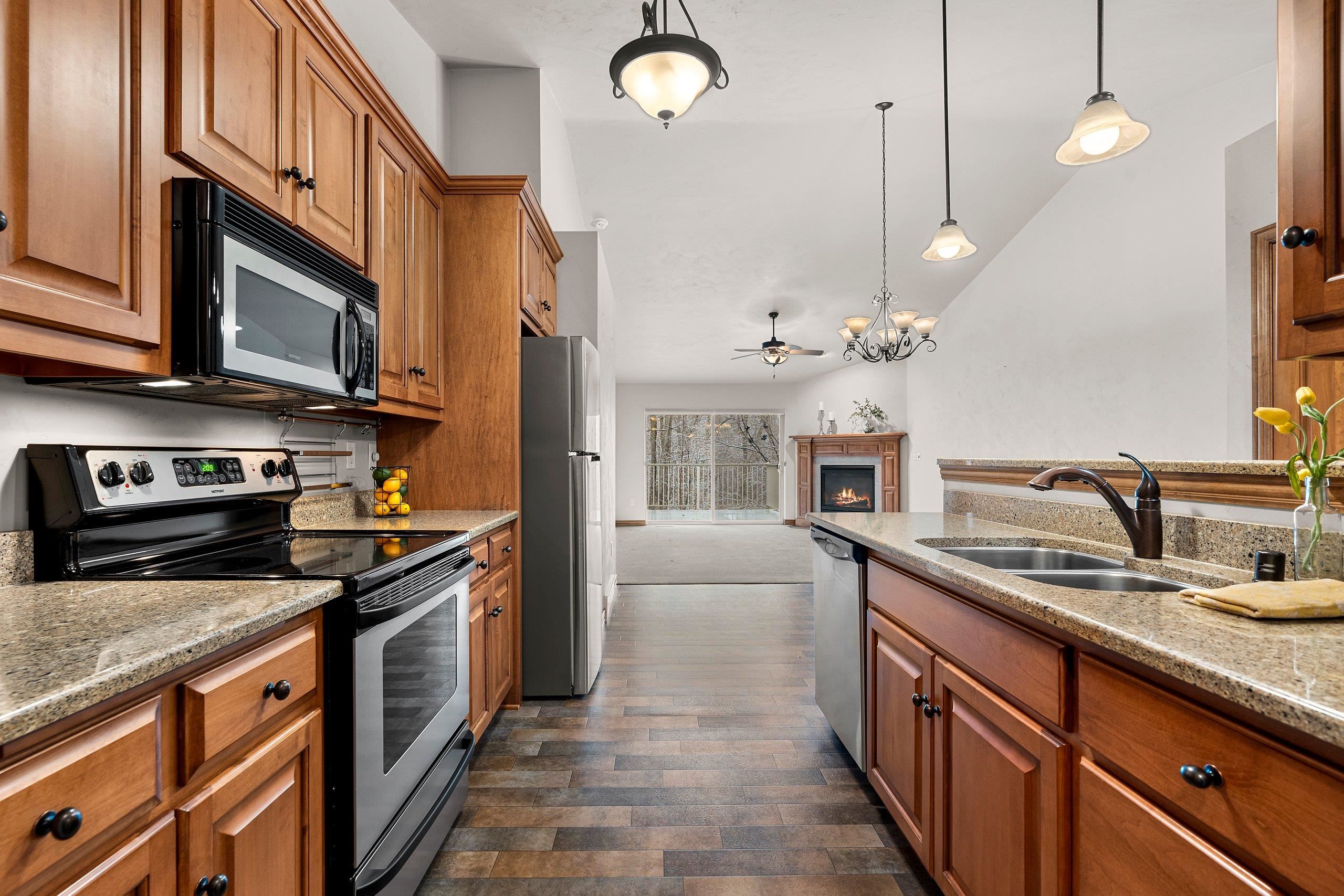 Discover this hard-to-find walk-out lower level condo with serene views of mature trees and Baird Creek Parkway. The open-concept floor plan features a modern kitchen with solid surface counters, maple cabinets, and stainless steel appliances. The walk-out lower level offers custom built-in cabinetry and a versatile space ideal for a bar or game table. Each floor includes a large bedroom and full bath, providing privacy and convenience for all. Additional highlights include first-floor laundry, no step entry from garage, and recent upgrades with a new roof and Trex deck in 2025. Please allow 48 hours binding acceptance.