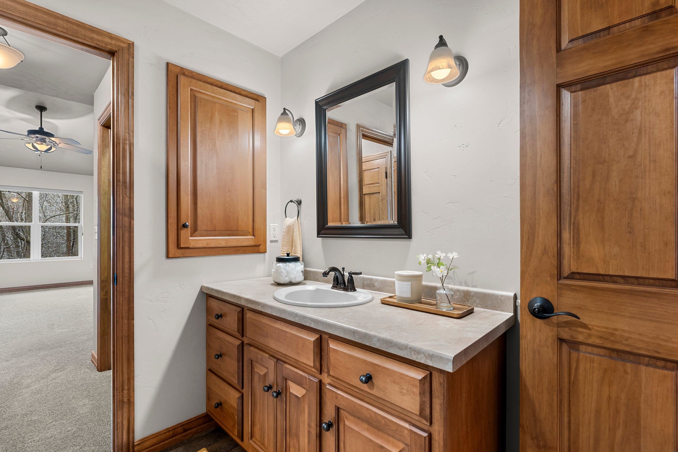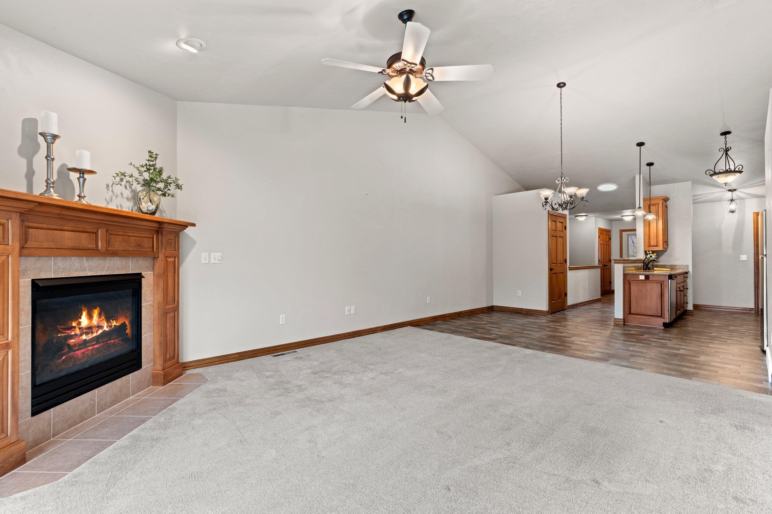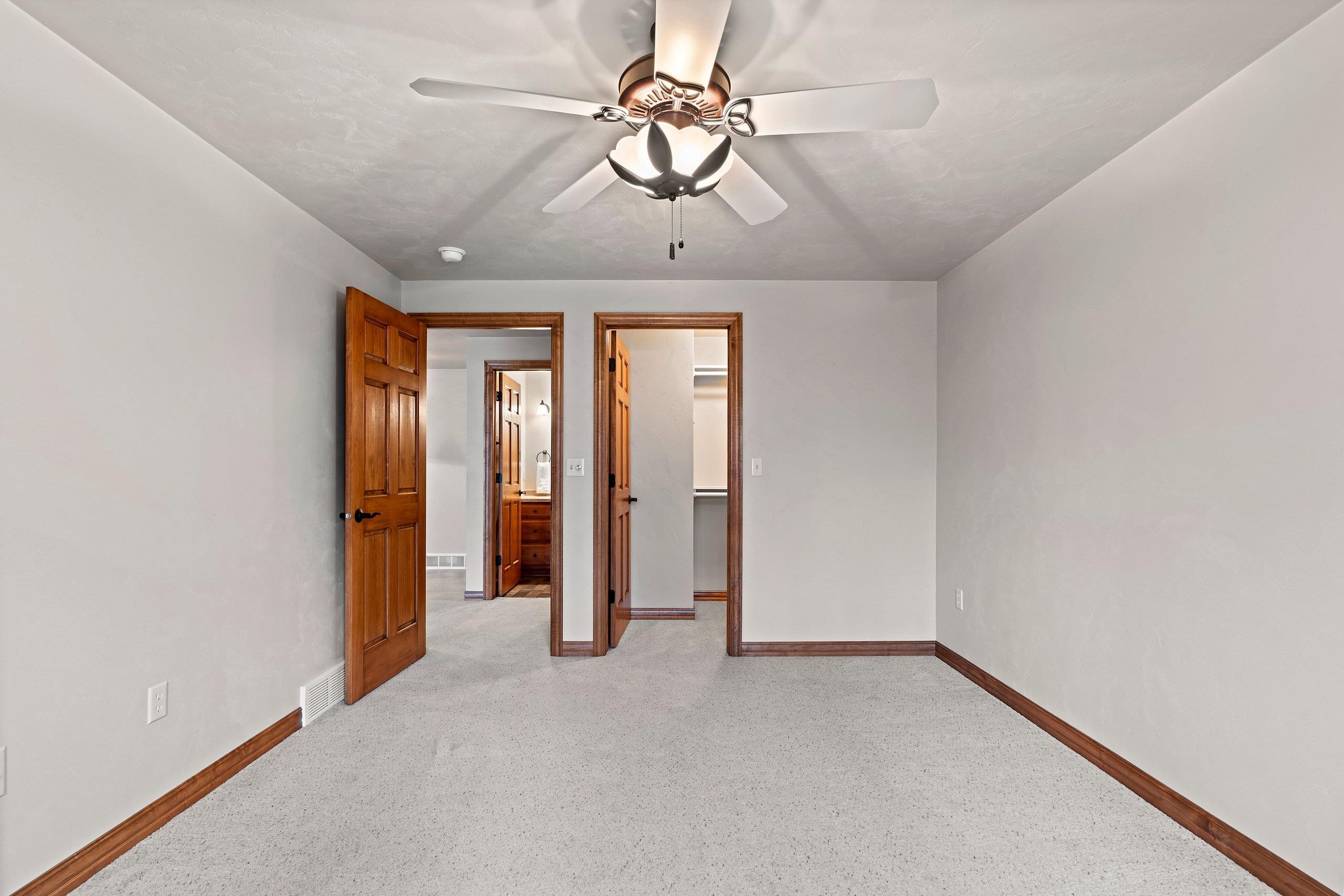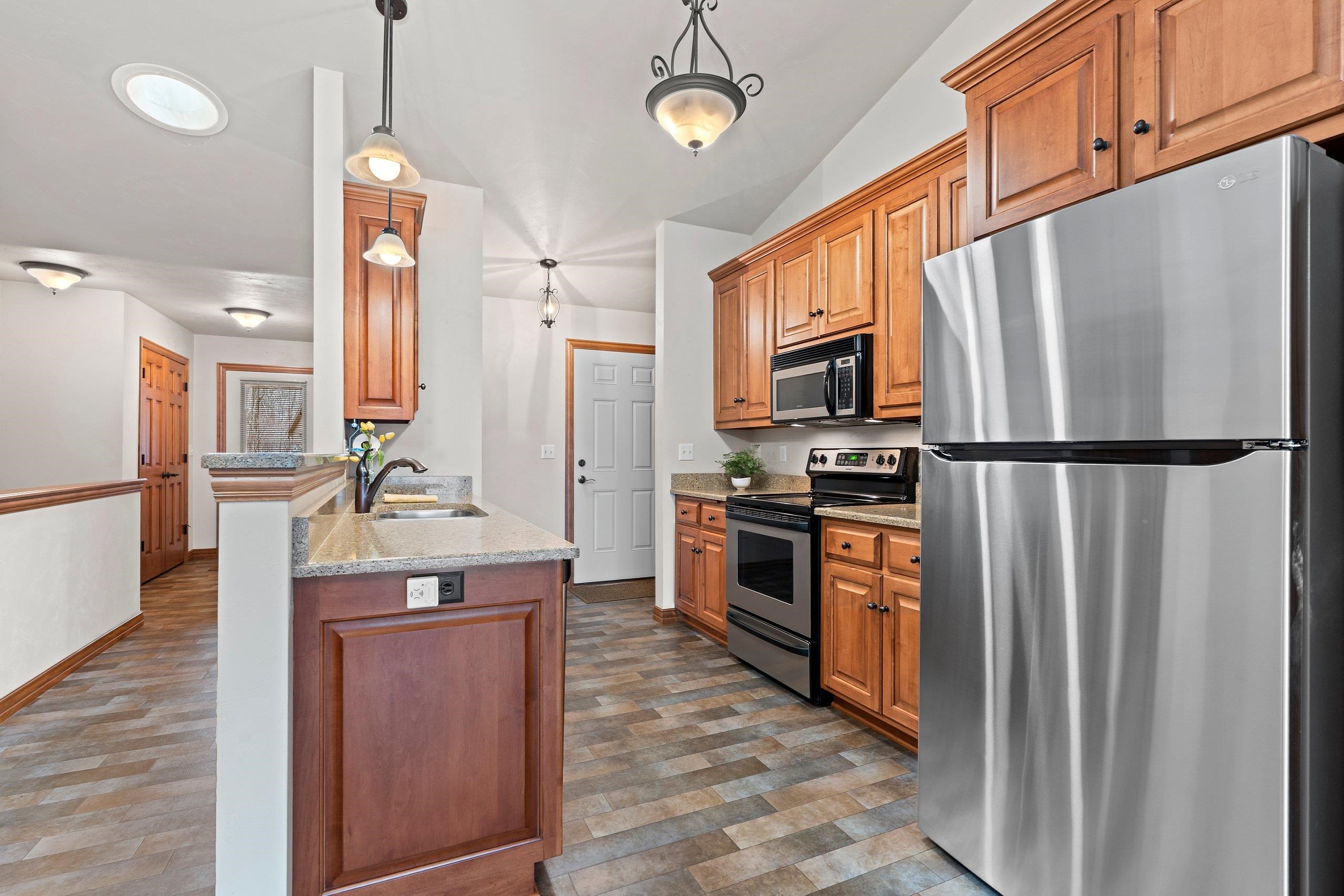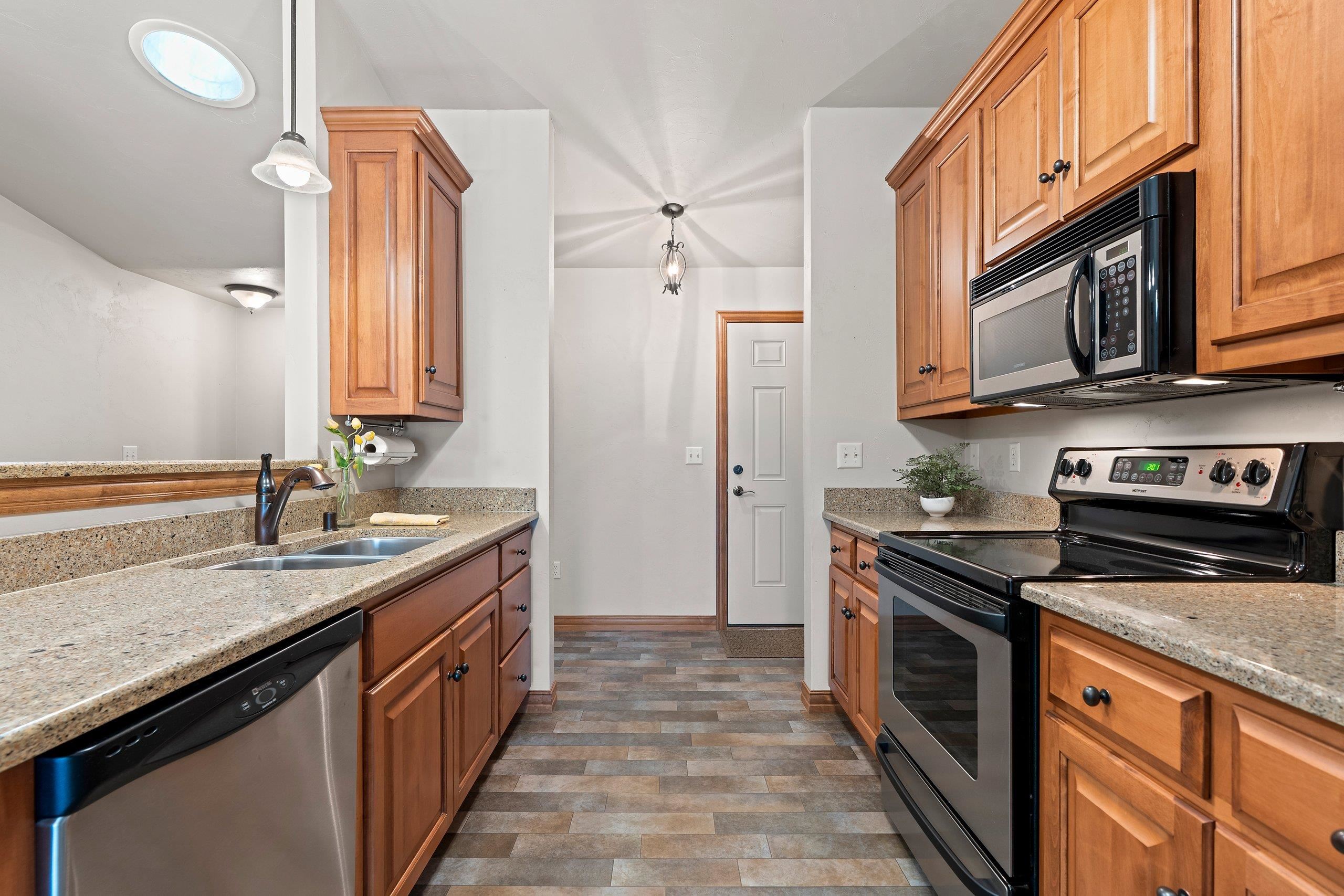 Discover this hard-to-find walk-out lower level condo with serene views of mature trees and Baird Creek Parkway. The open-concept floor plan features a modern kitchen with solid surface counters, maple cabinets, and stainless steel appliances. The walk-out lower level offers custom built-in cabinetry and a versatile space ideal for a bar or game table. Each floor includes a large bedroom and full bath, providing privacy and convenience for all. Additional highlights include first-floor laundry, no step entry from garage, and recent upgrades with a new roof and Trex deck in 2025. Please allow 48 hours binding acceptance.